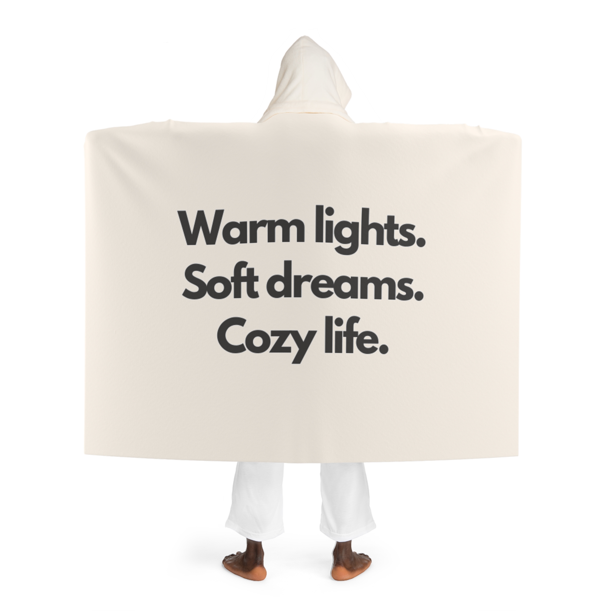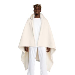 Wrap yourself in a quiet, cozy hush. This hooded sherpa fleece blanket is more like a wearable refuge —thick, plush fleece that settles around your shoulders and a cream sherpa-lined hood that cradles your neck. It drapes long and generous, so you can curl on the couch, move from bed to porch, or hold a book and a mug without worrying about cold drafts. The neutral cream tone reads warm and calm in any room, and the soft, durable polyester keeps its shape and recovers quickly after use. It feels like slowing down, one soft fold at a time.