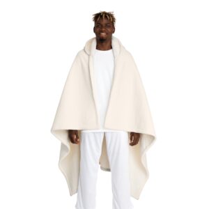 Wrap yourself in slow mornings and quiet evenings with this hooded sherpa fleece blanket. Plush polyester fleece on the outside and a cozy cream sherpa hood create a soothing cocoon that dims the rush and encourages small, restorative rituals. It drapes like a wearable blanket over the shoulders for reading by lamplight, lounging through a weekend movie marathon, or stepping onto a chilly porch for your first coffee. The oversized one-size cut offers generous coverage while the soft texture invites you to linger — more warmth, less fuss.