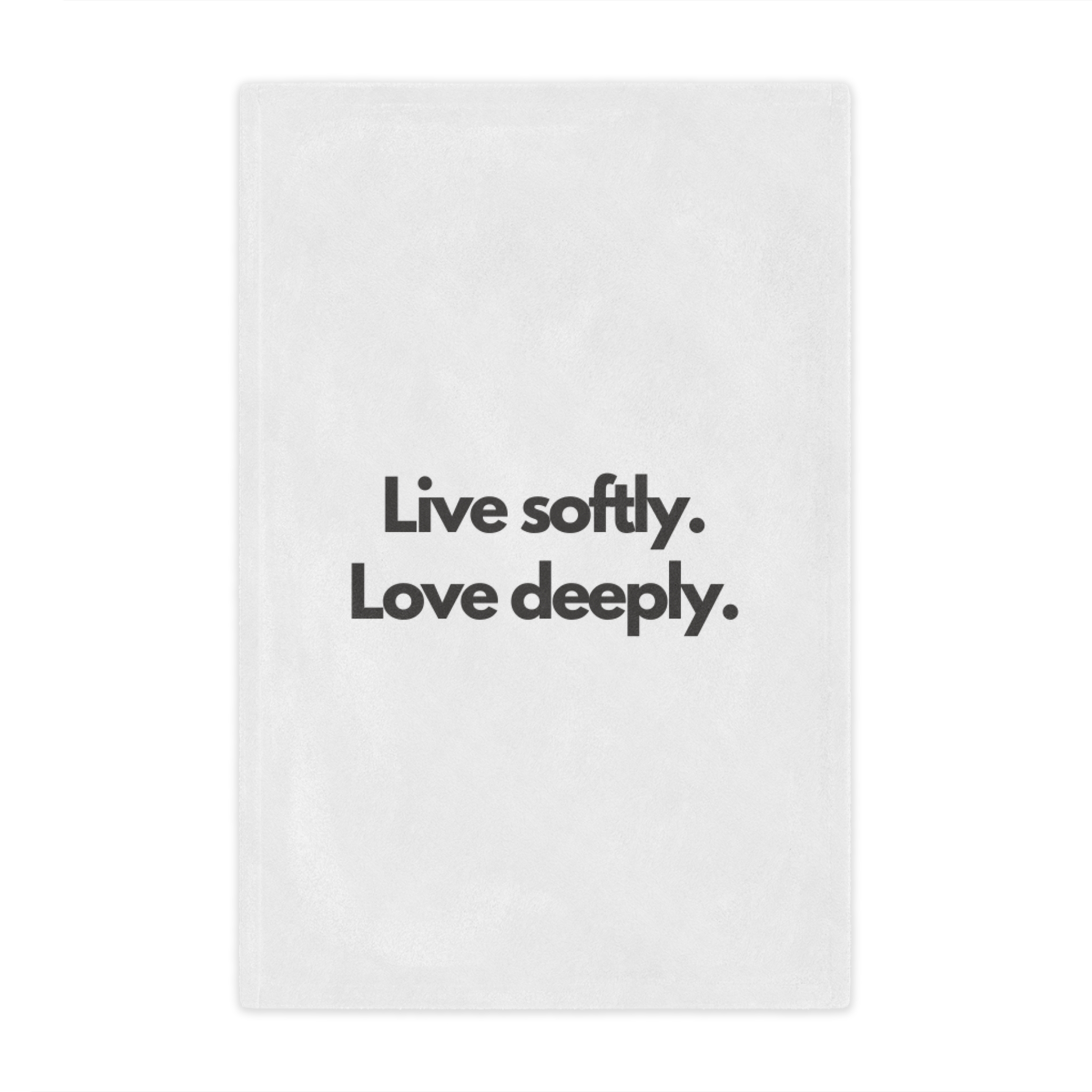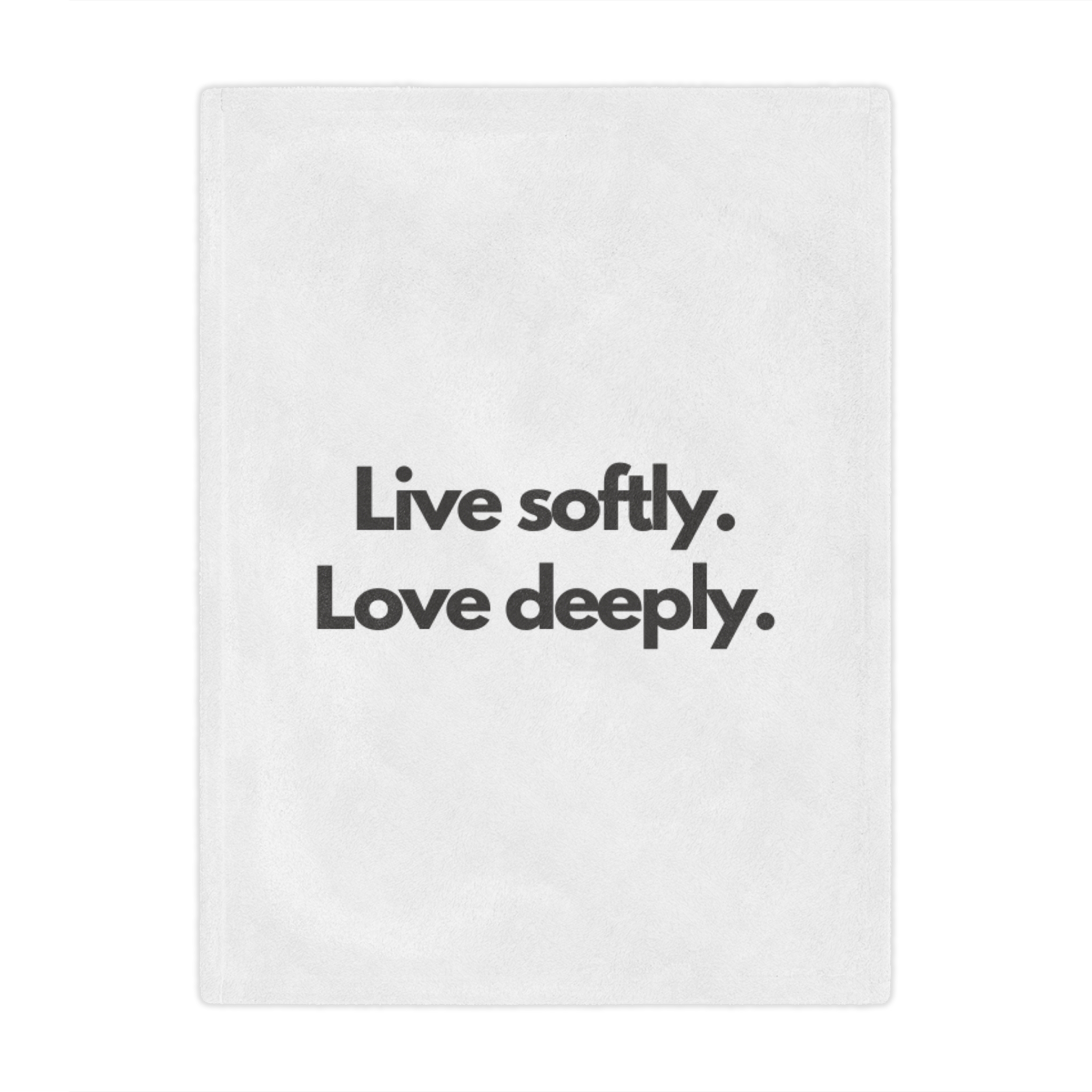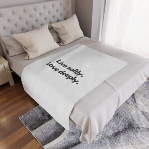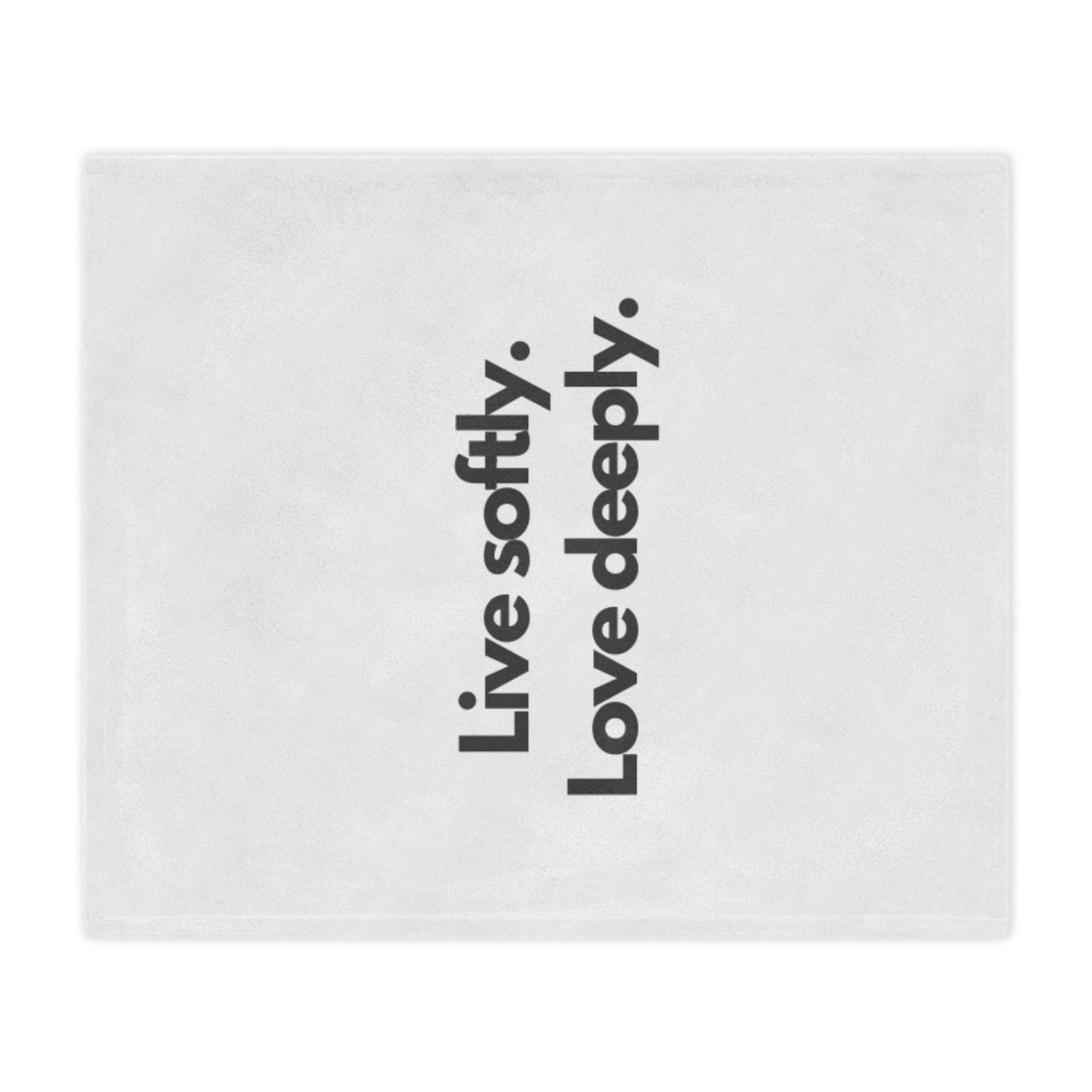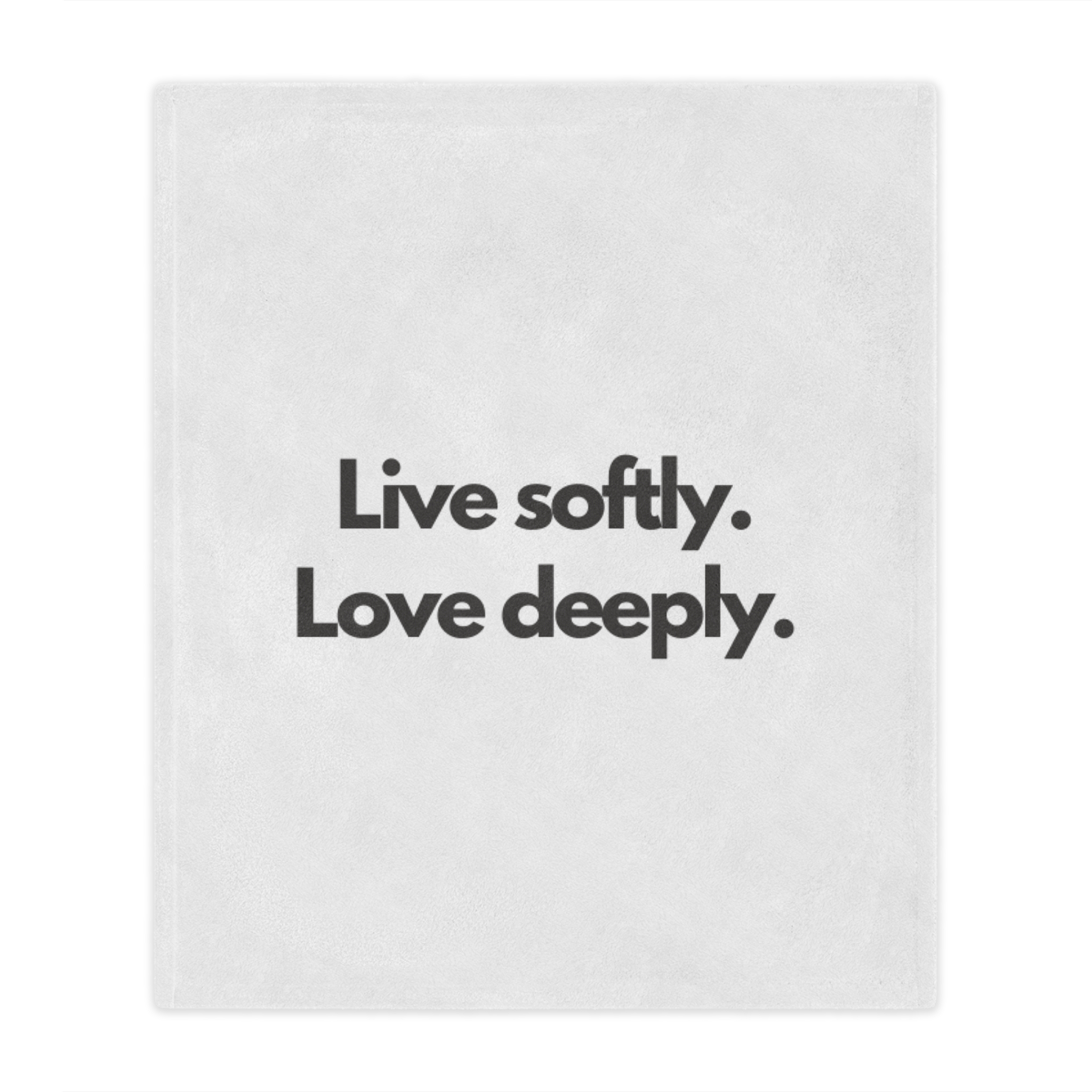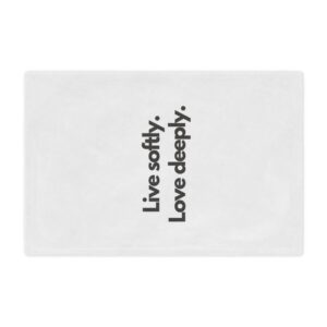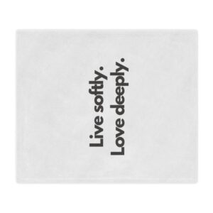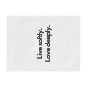Wrap yourself in a gentle reminder to slow down and savor the moment. This plush minky blanket features bold, simple typography—“Live softly. Love deeply.”—on a clean white field. It’s light enough for curling up on the couch with a book and warm enough for quiet nights by the window. The soft, velvety pile invites you to rest, reflect, and reconnect. Slip it over your shoulders during a chilly morning coffee, lay it across a reading chair, or tuck it at the foot of the bed as an everyday comfort that speaks to a calmer, kinder way of living.