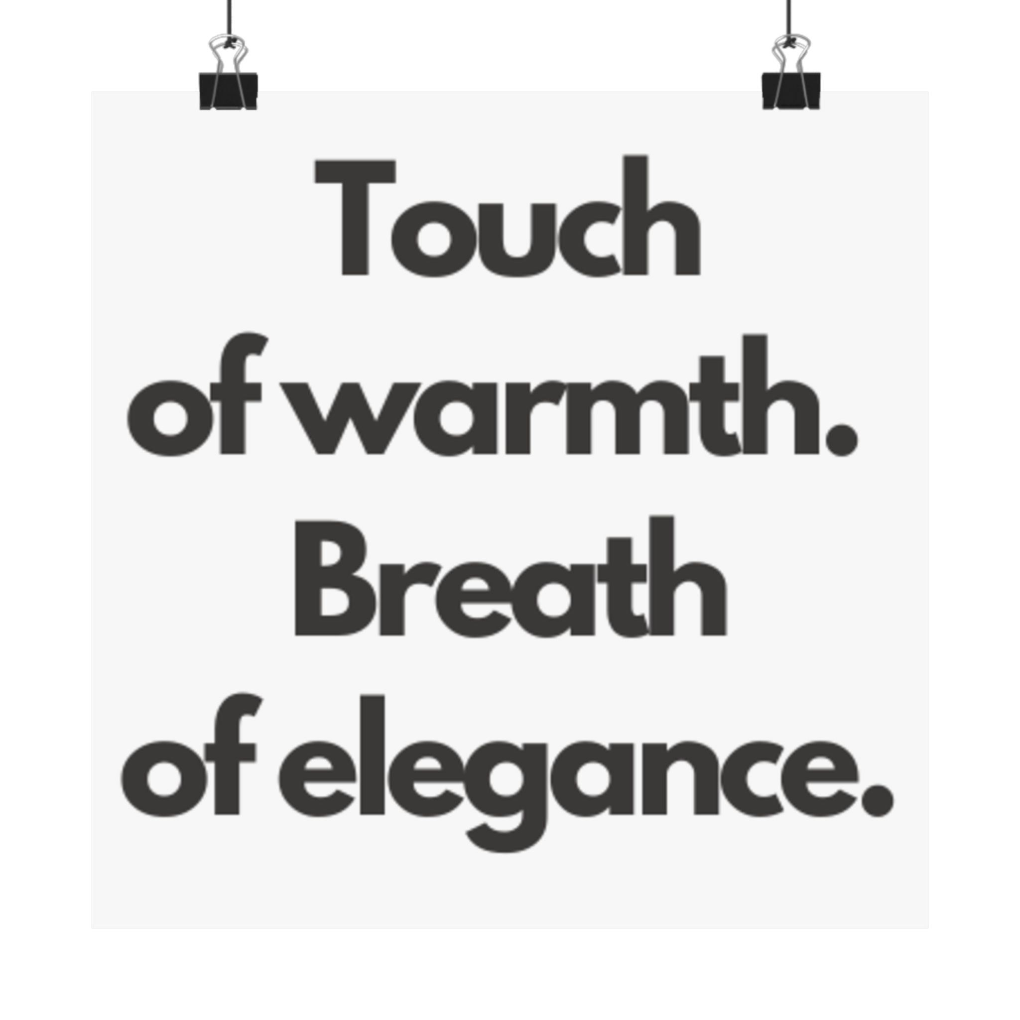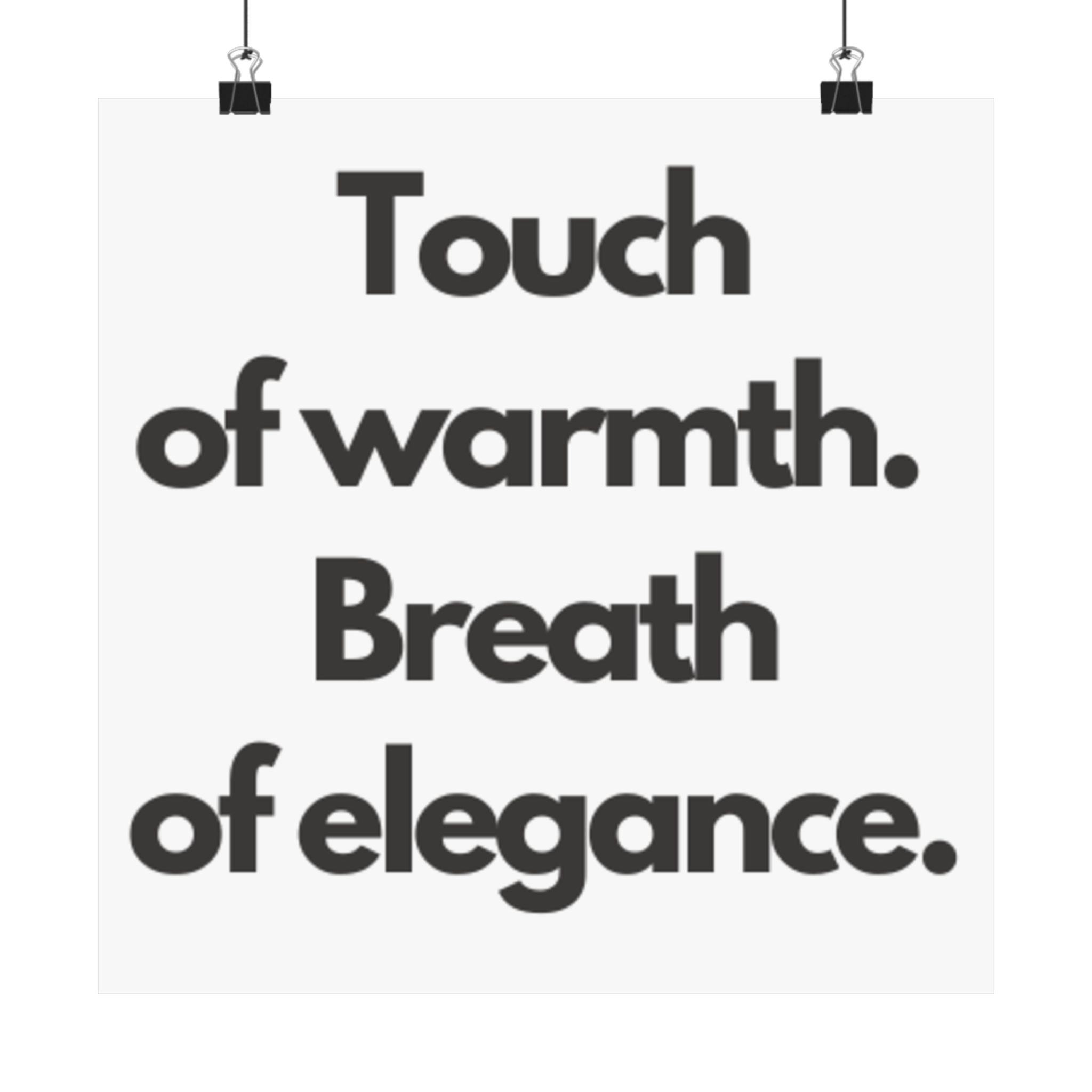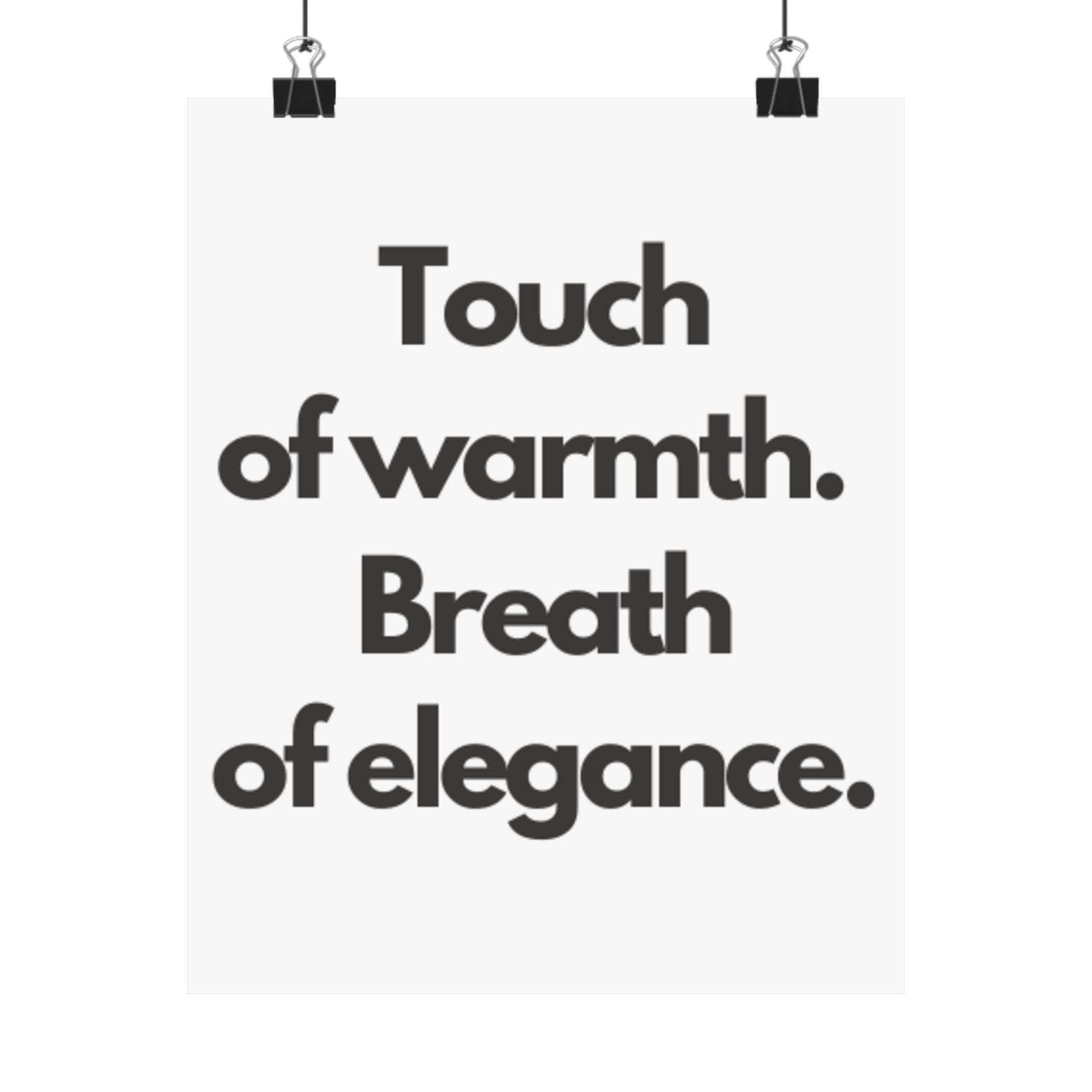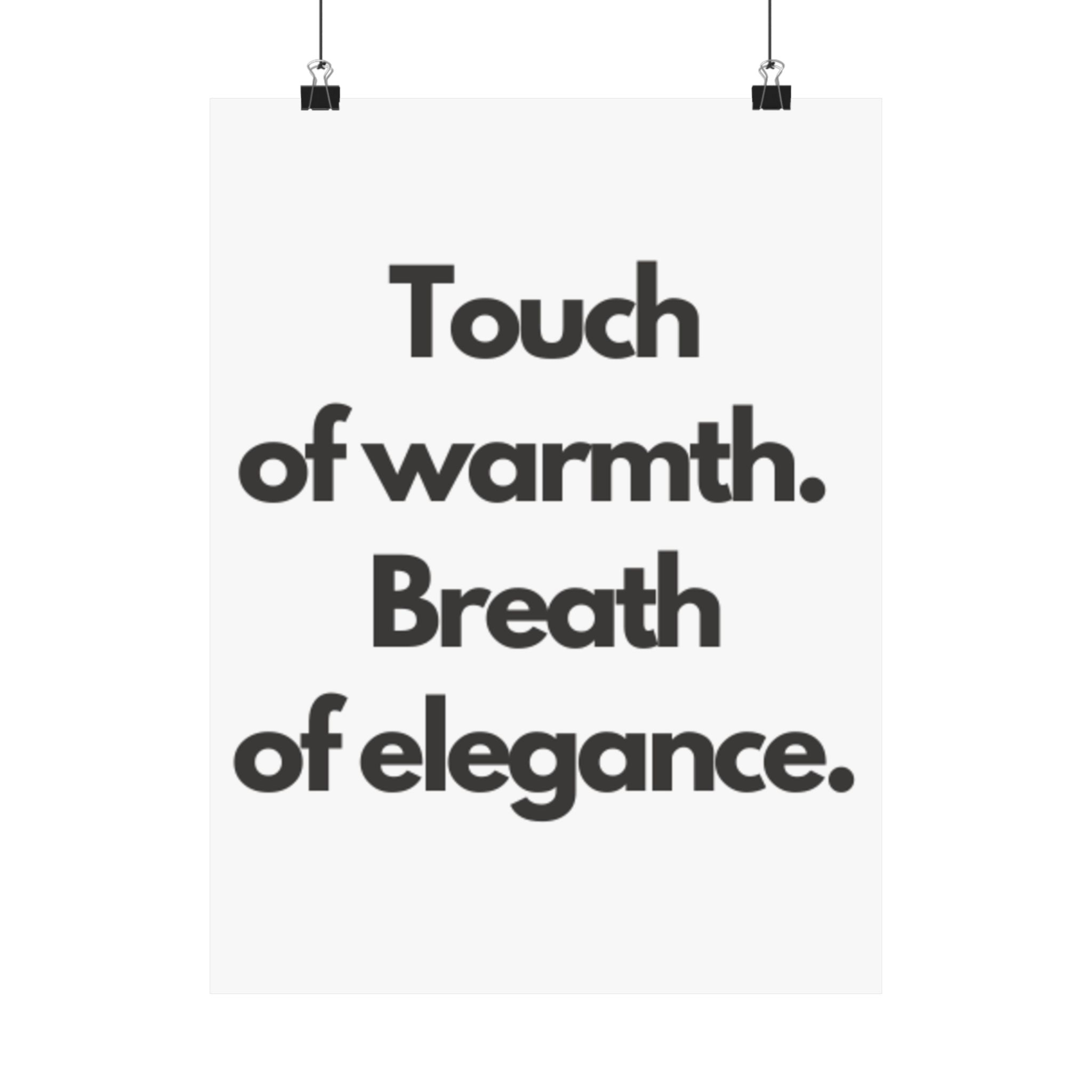 Matte Poster — “Touch of warmth. Breath of elegance.” Minimal Typography Wall Art
