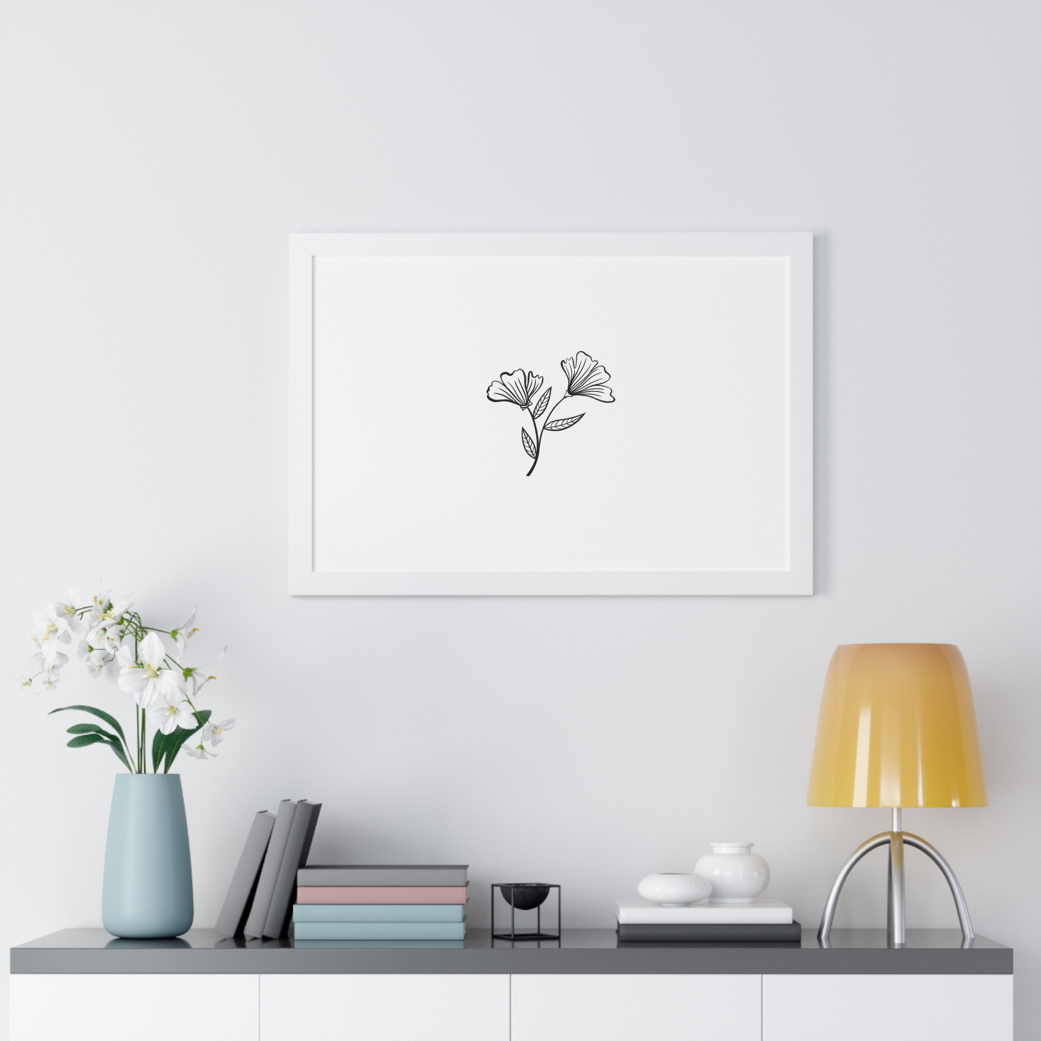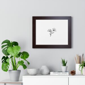 A simple, serene framed horizontal poster that brings quiet elegance to your wall. The delicate black botanical sketch floats on museum-grade matte paper, framed in a slim MDF frame with a protective acrylic cover. Ready to hang with pre-installed hardware, it settles into living rooms, entryways, or bedside nooks and complements minimalist, Scandinavian, and plant-forward interiors. The restrained design invites calm — a small pause in your day that feels like a fresh breath and a moment of stillness.