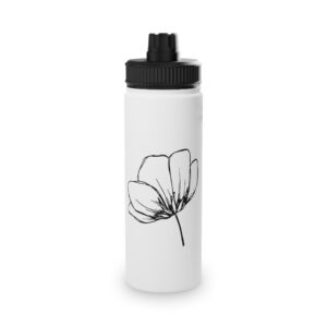 Minimal Black Line Floral Stainless Steel Water Bottle — Sports Lid