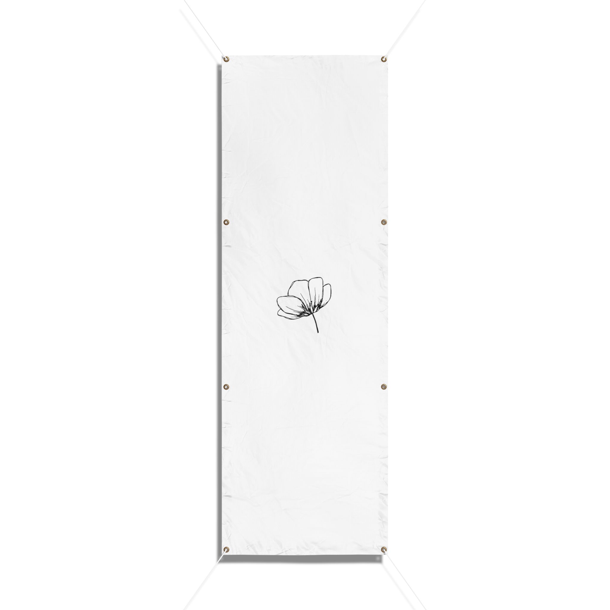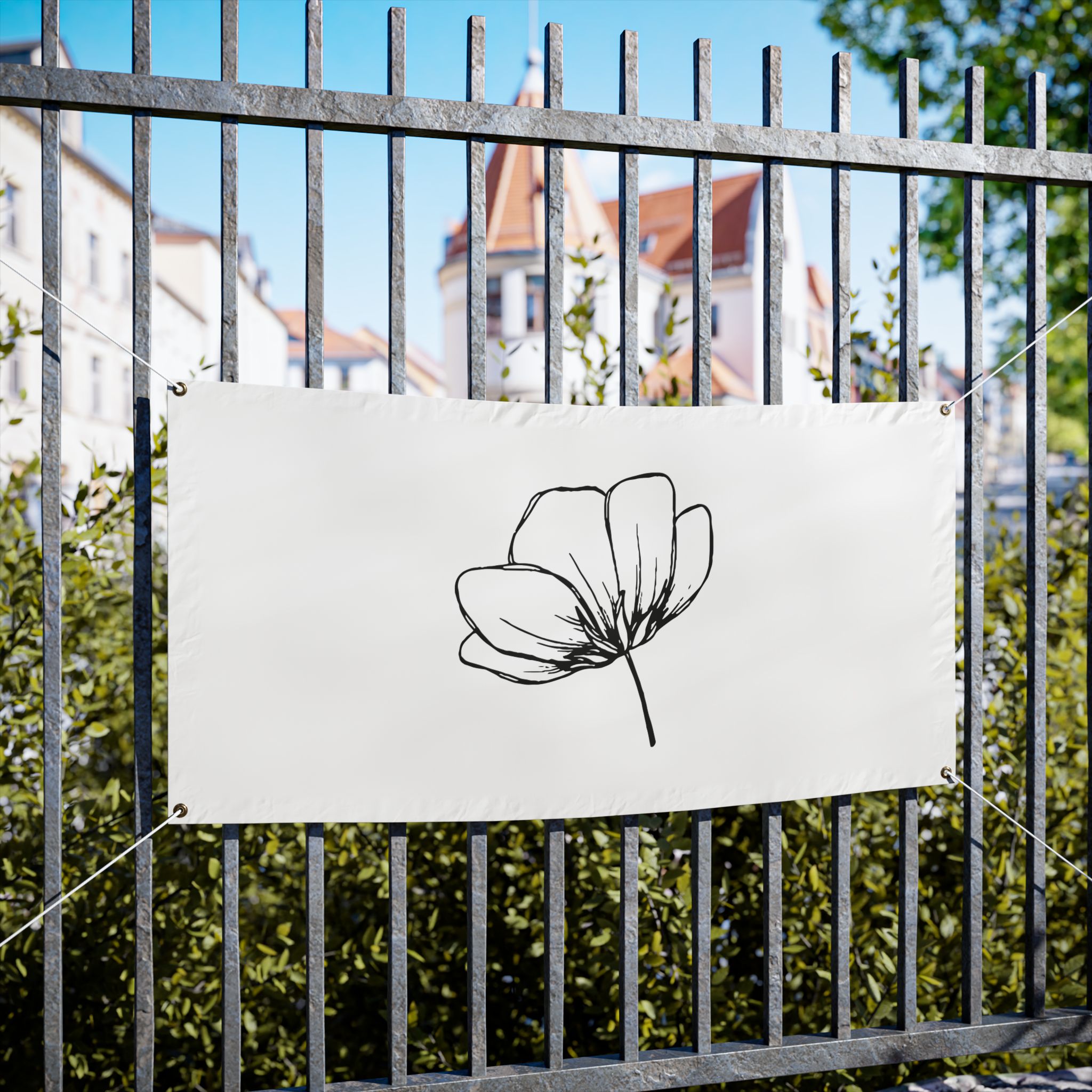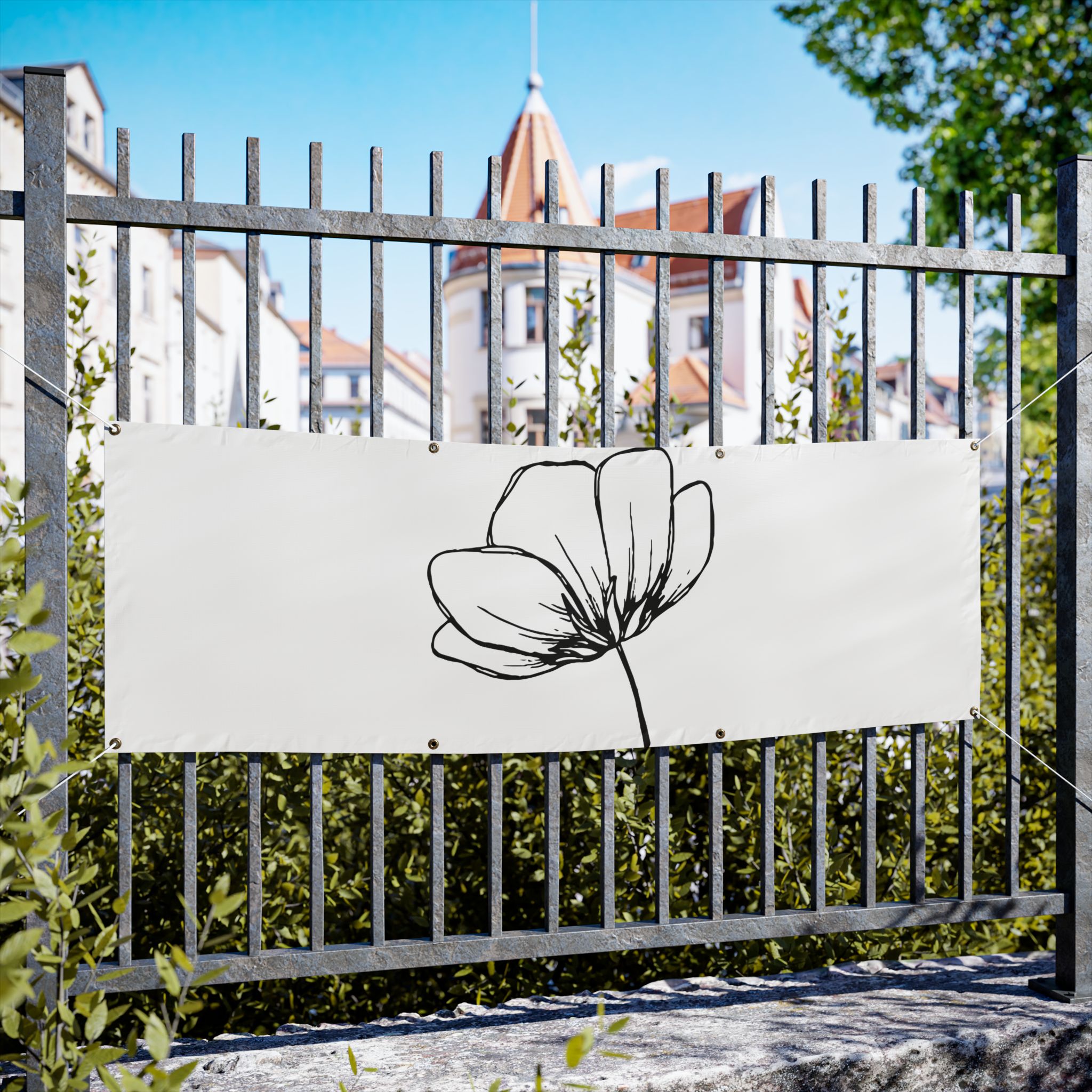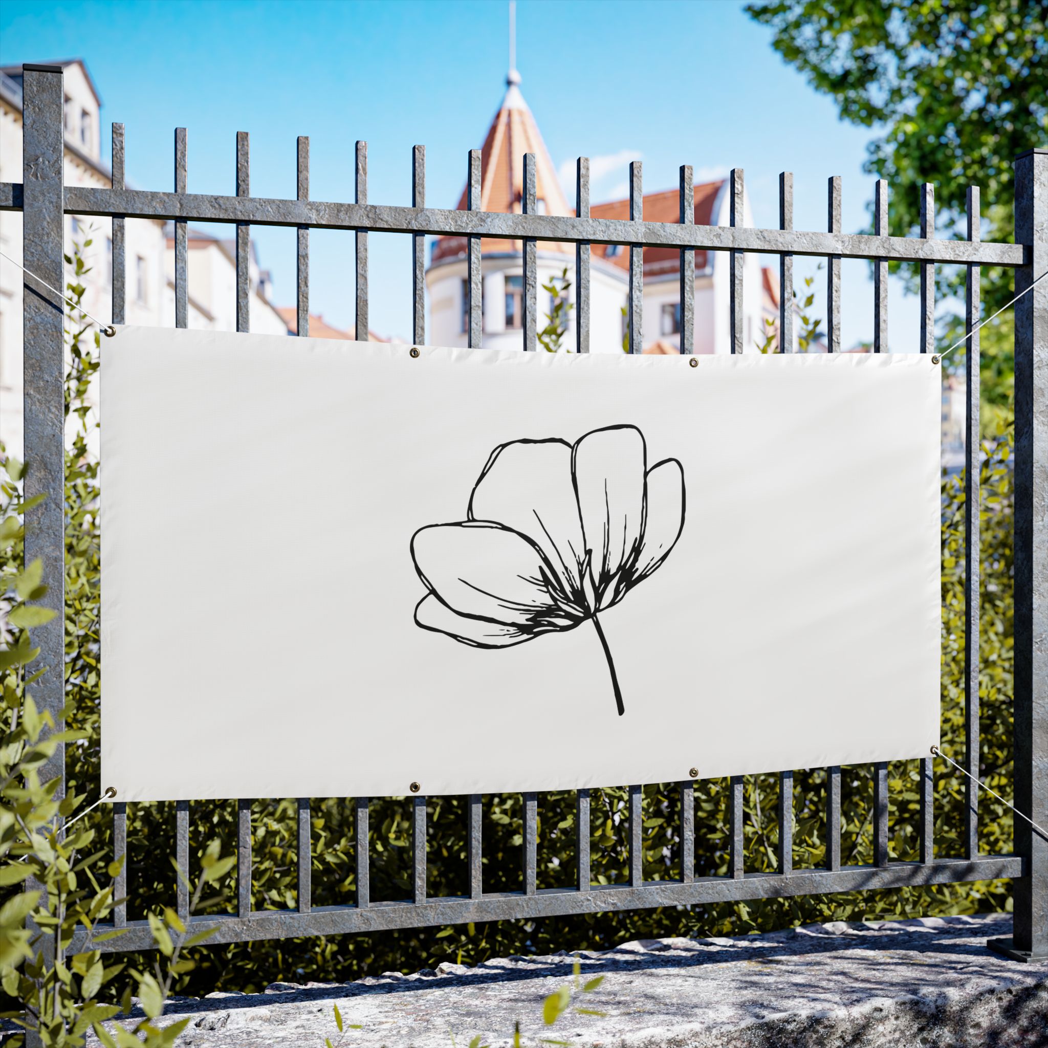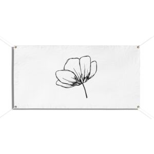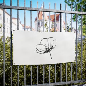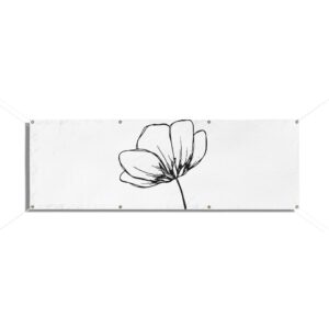A clean, weather-ready vinyl banner that brings quiet elegance to yards, fences, markets, and storefronts. Printed on heavy-duty Titan™ 10 oz scrim vinyl with heat-welded hems and corner grommets, the banner holds up to wind, rain, and sun while keeping colors bright and lines crisp. The minimal single-line floral design reads from a distance and adds a calm, modern touch to outdoor spaces or temporary indoor displays. Choose from horizontal or vertical layouts and three practical sizes to suit a small market stall, garden fence, or event backdrop. Hanging ropes are not included, so you can customize mounting to your space.