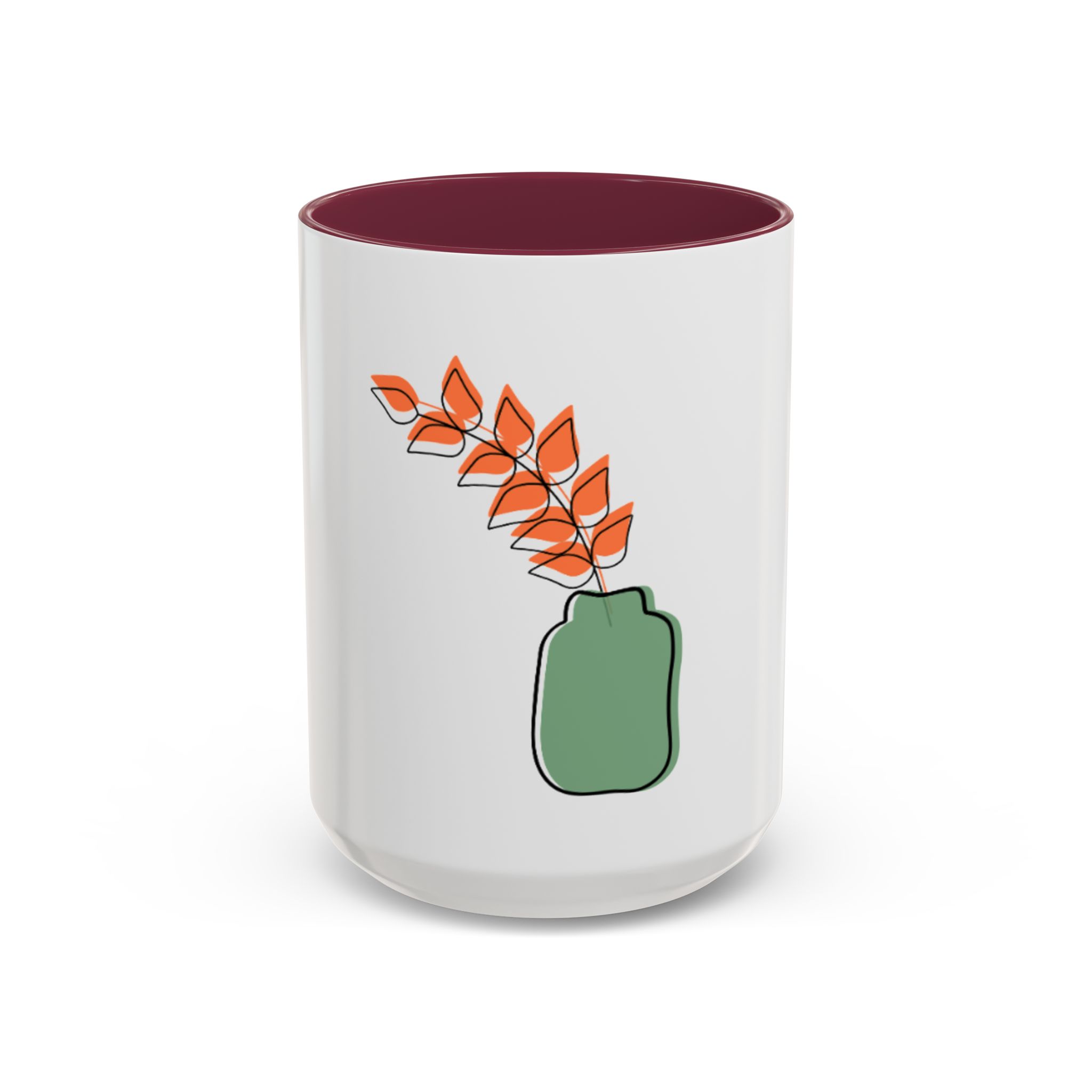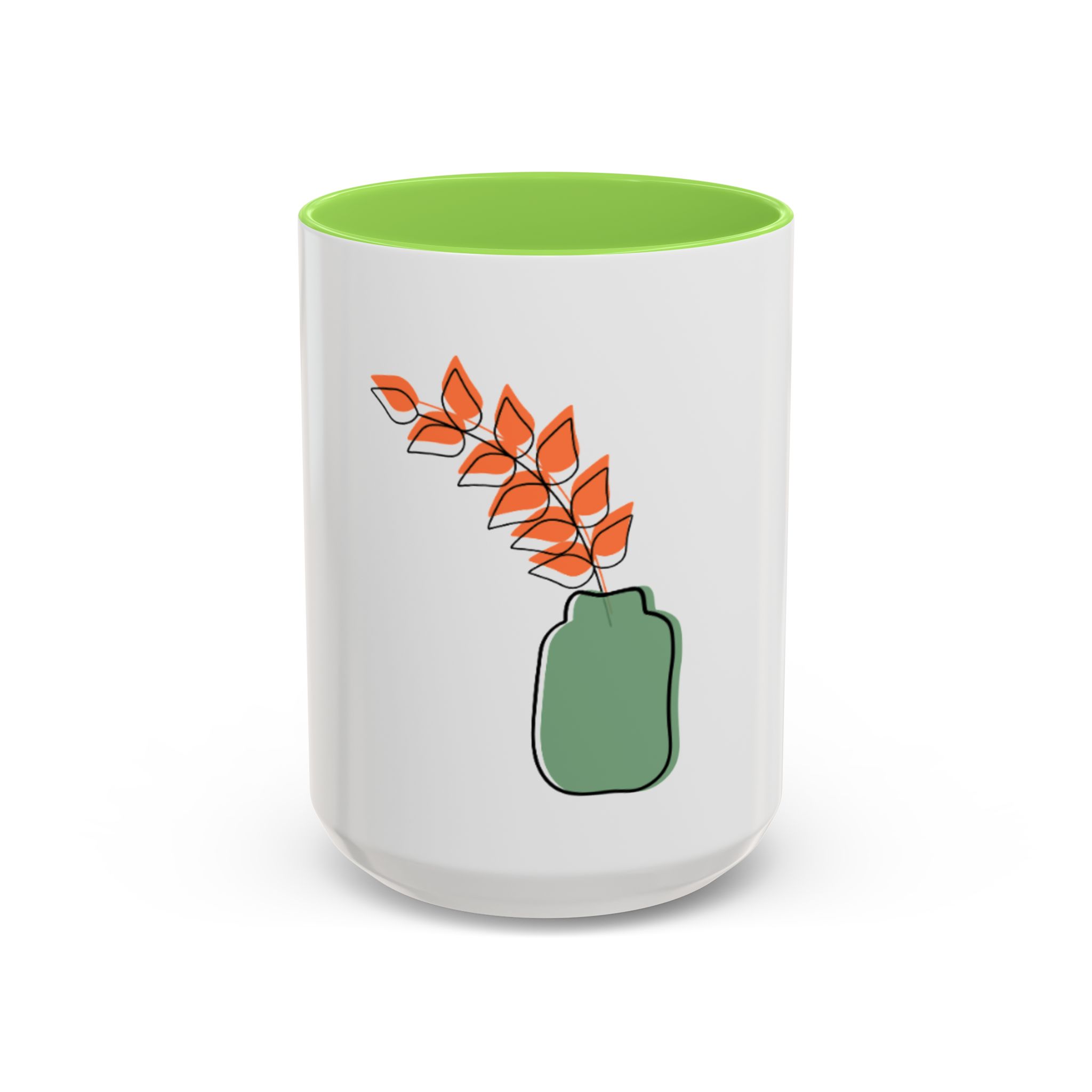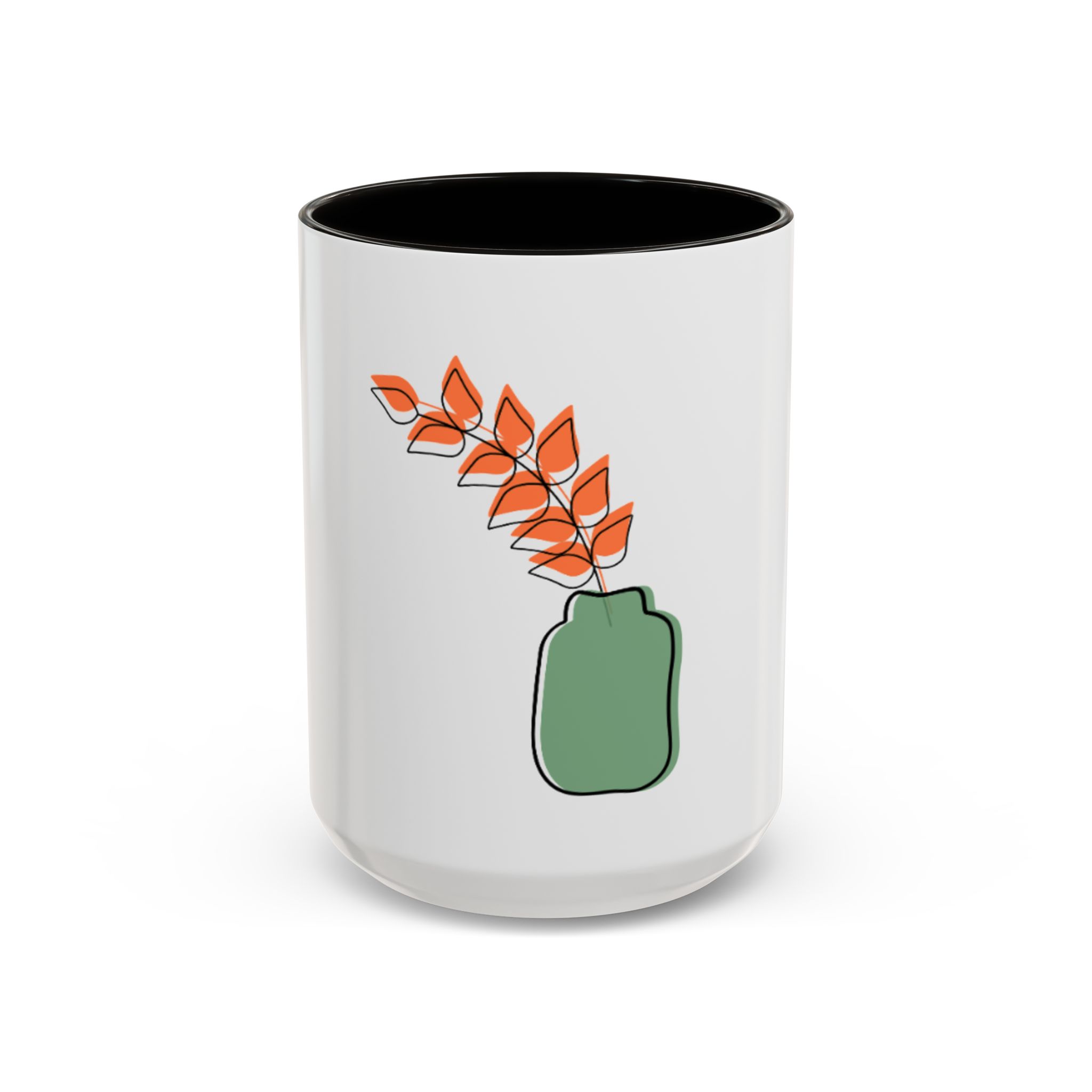 Minimal Botanical Mug — Green Vase with Orange Foliage (11oz & 15oz)