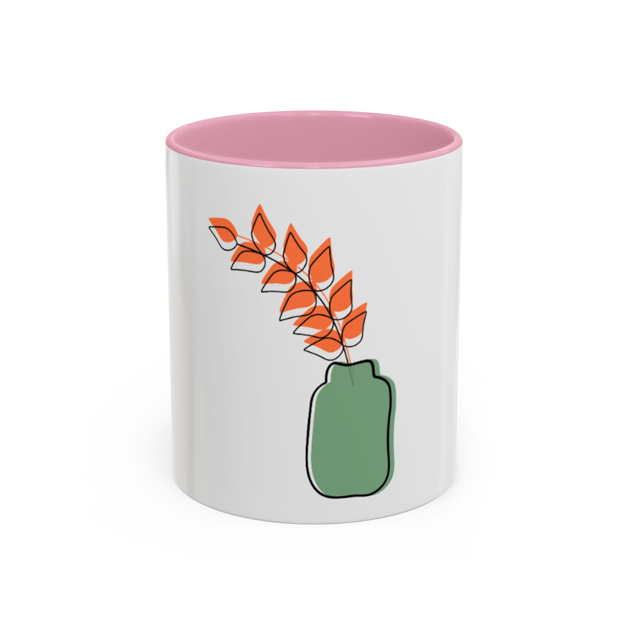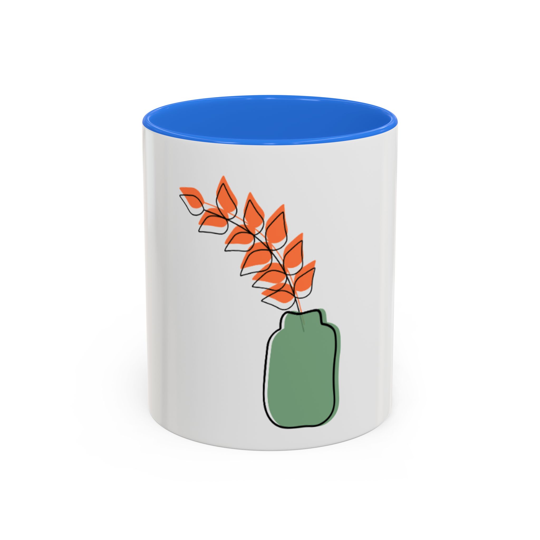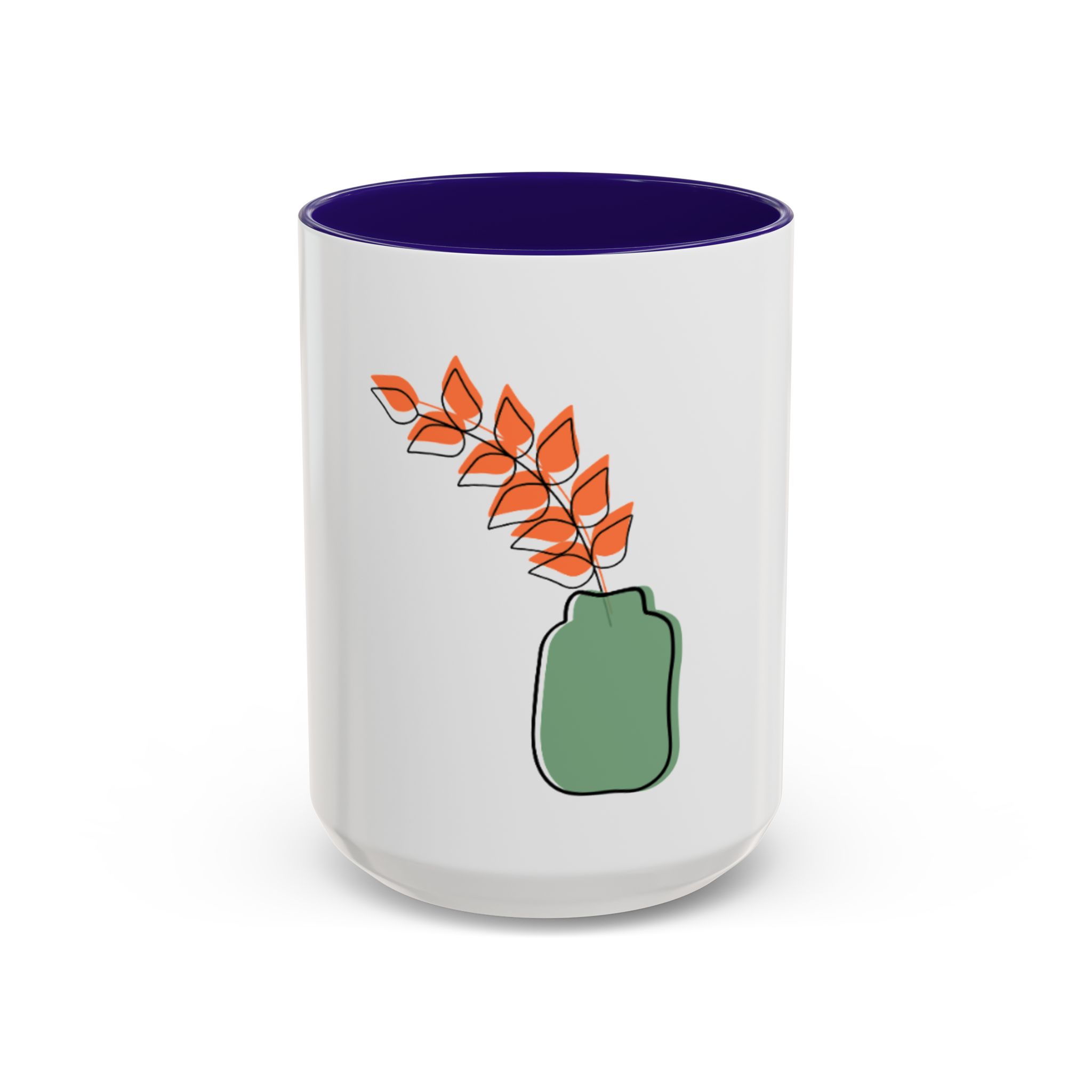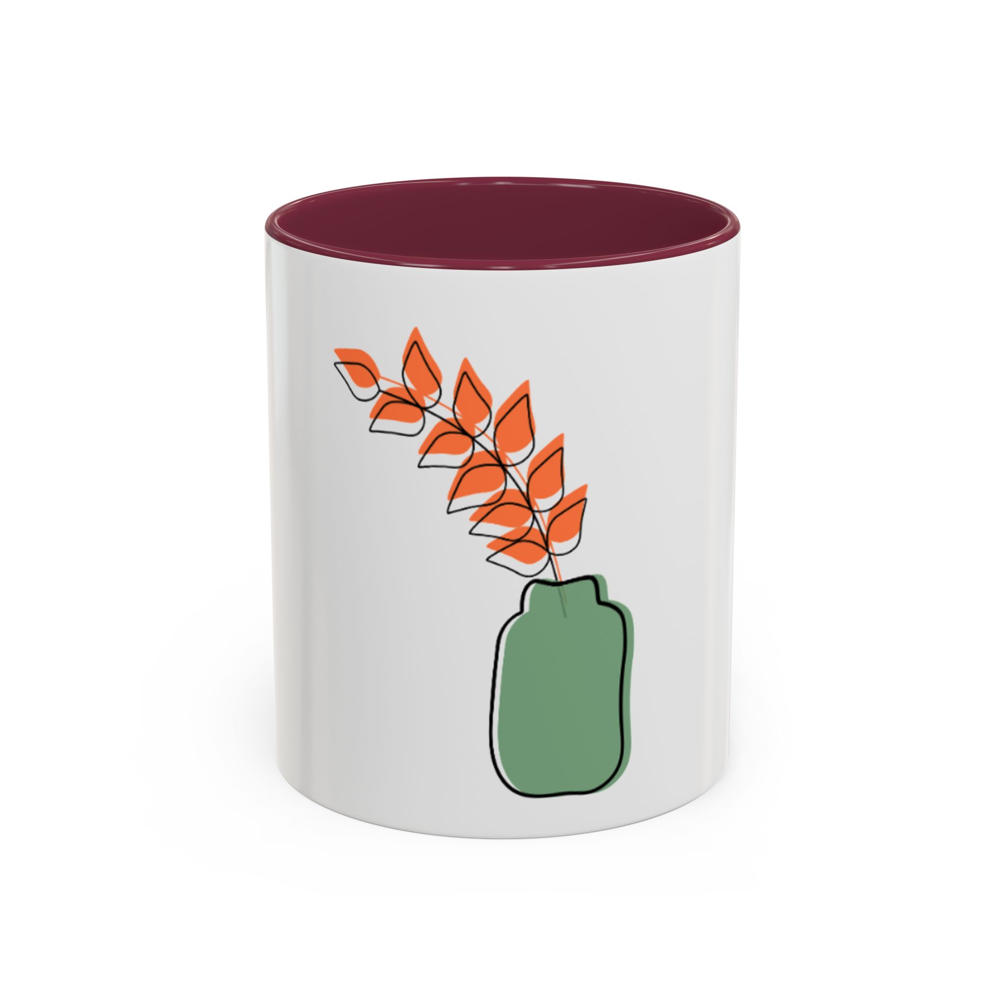 Minimal Botanical Mug — Green Vase with Orange Foliage (11oz & 15oz)