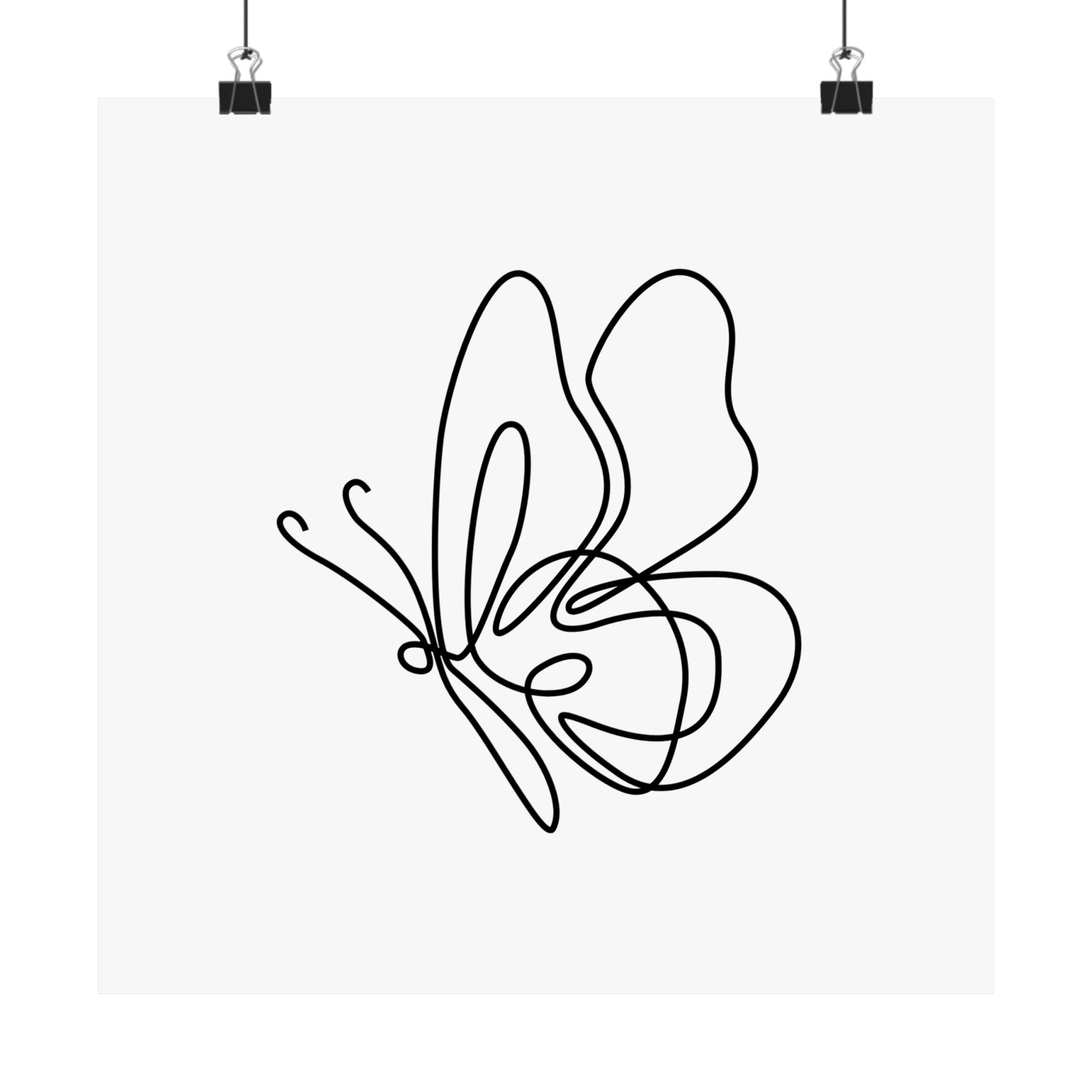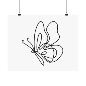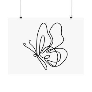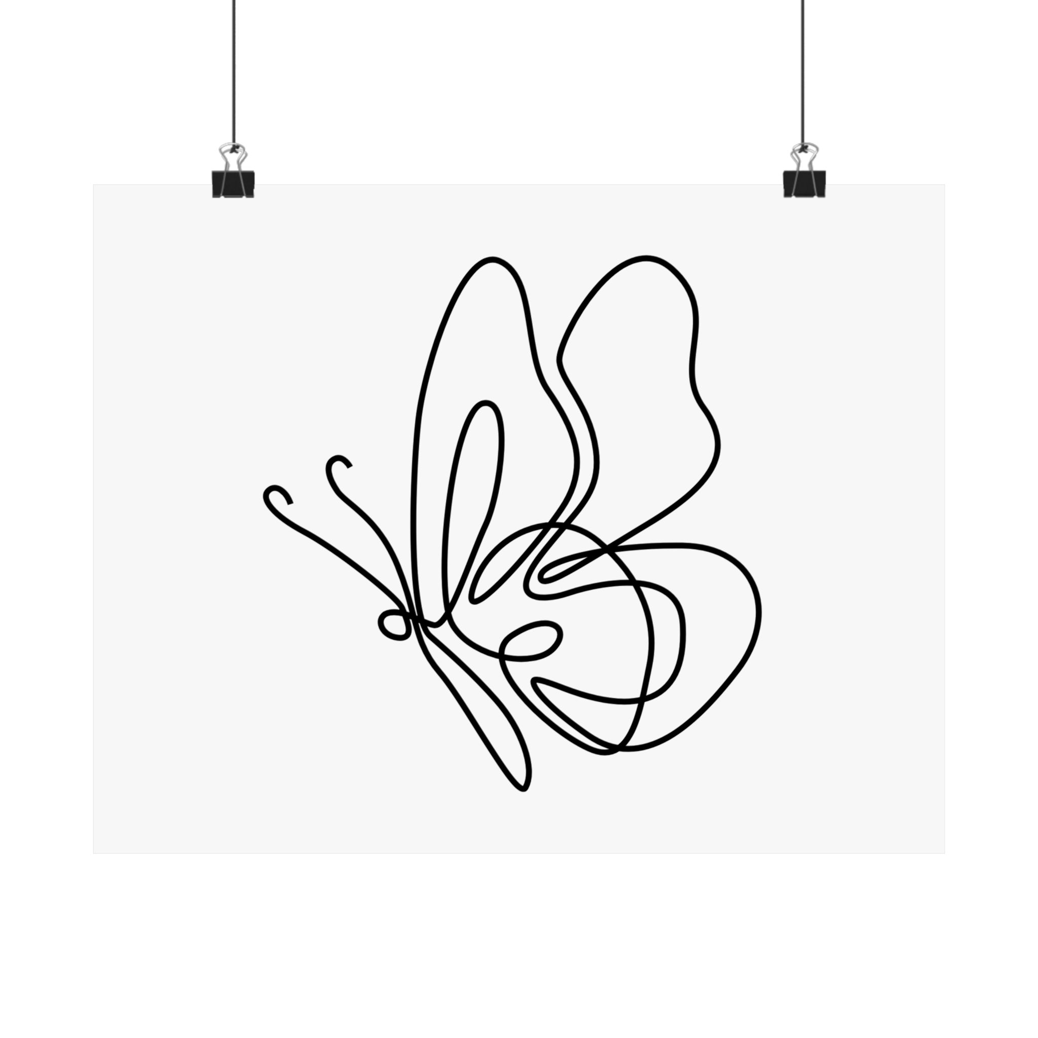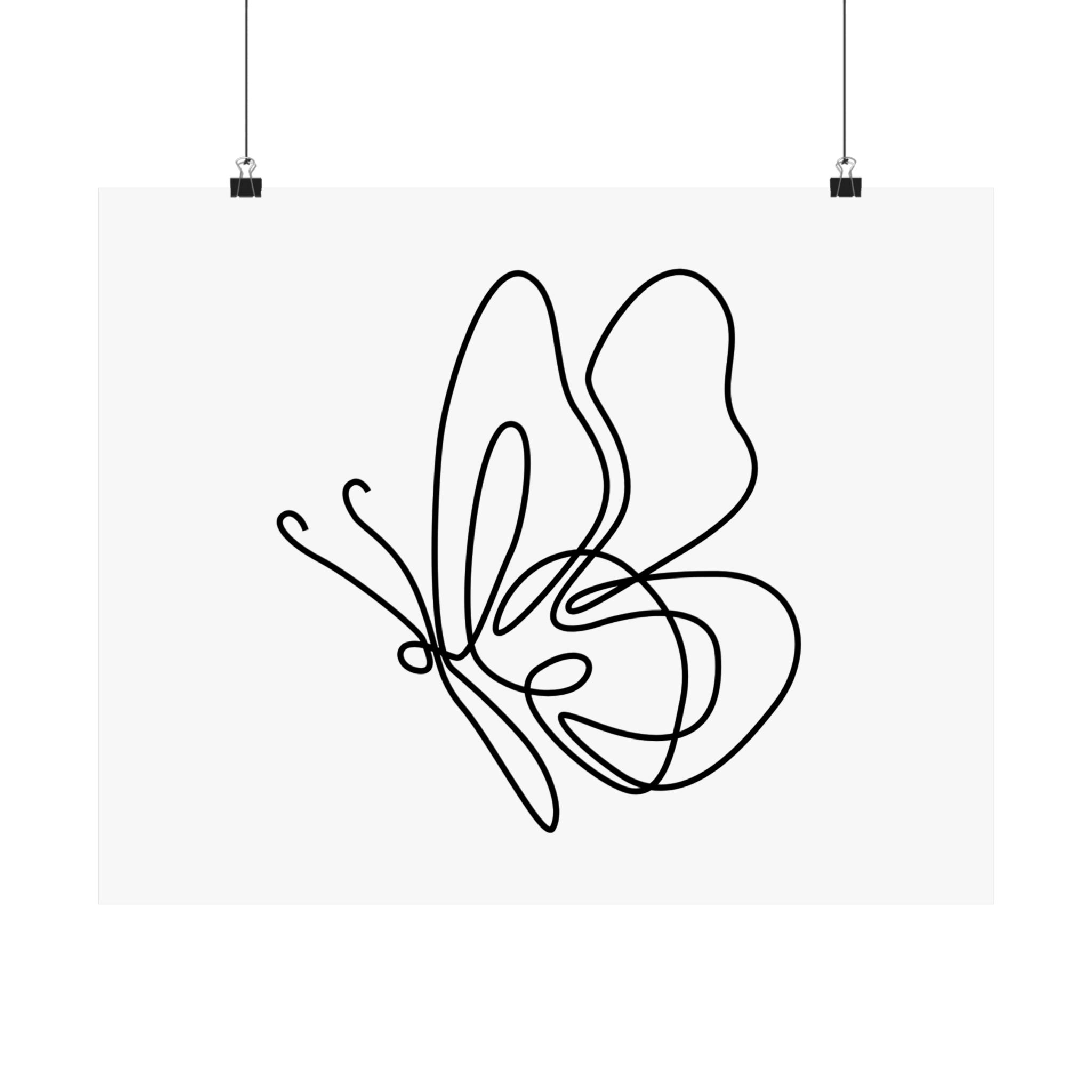 Minimal Line Art Butterfly Poster — Matte Horizontal Wall Art