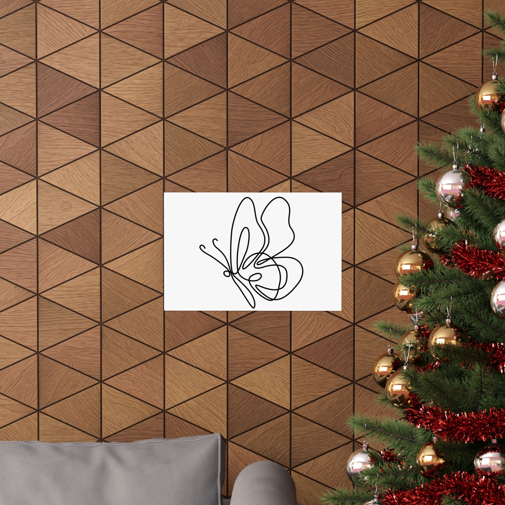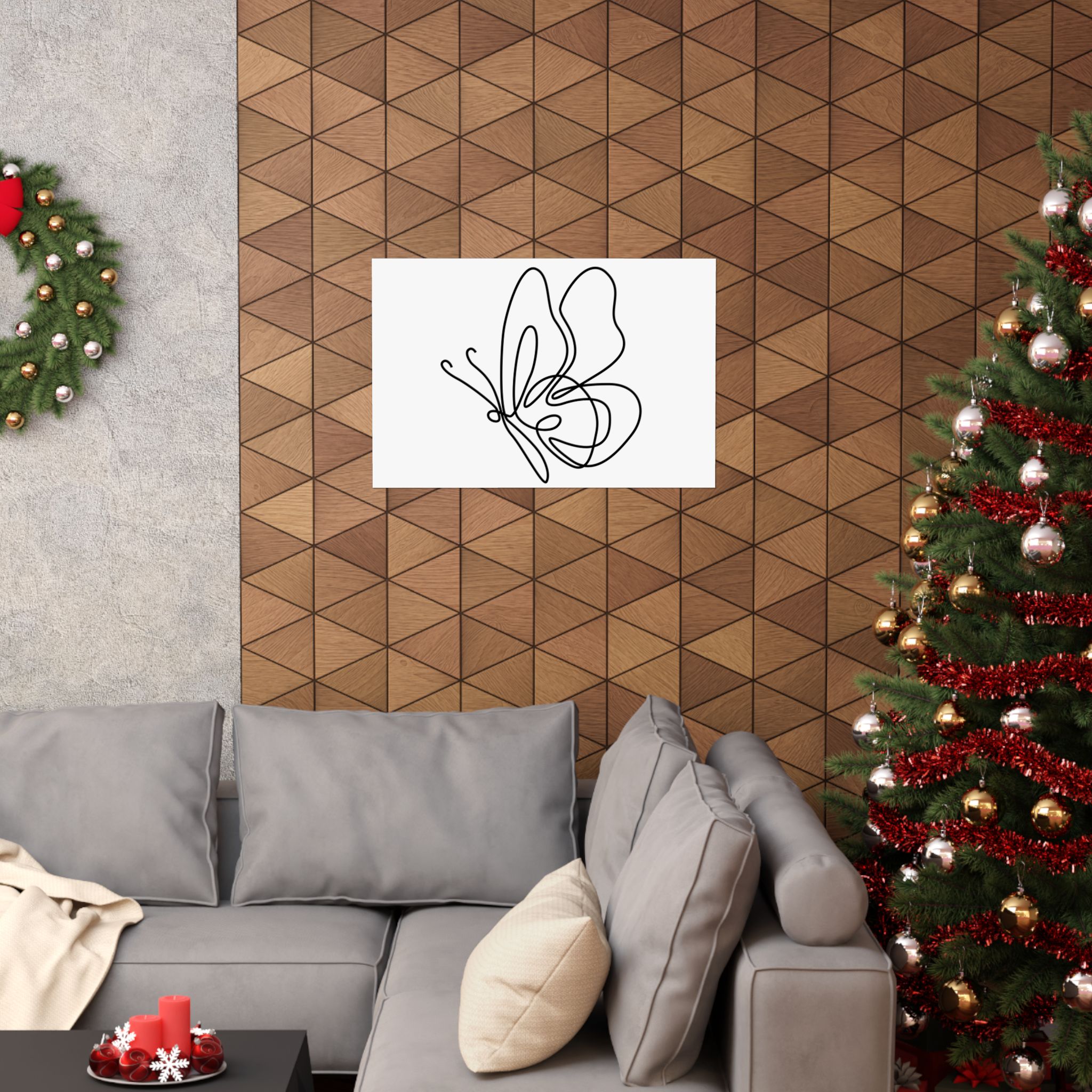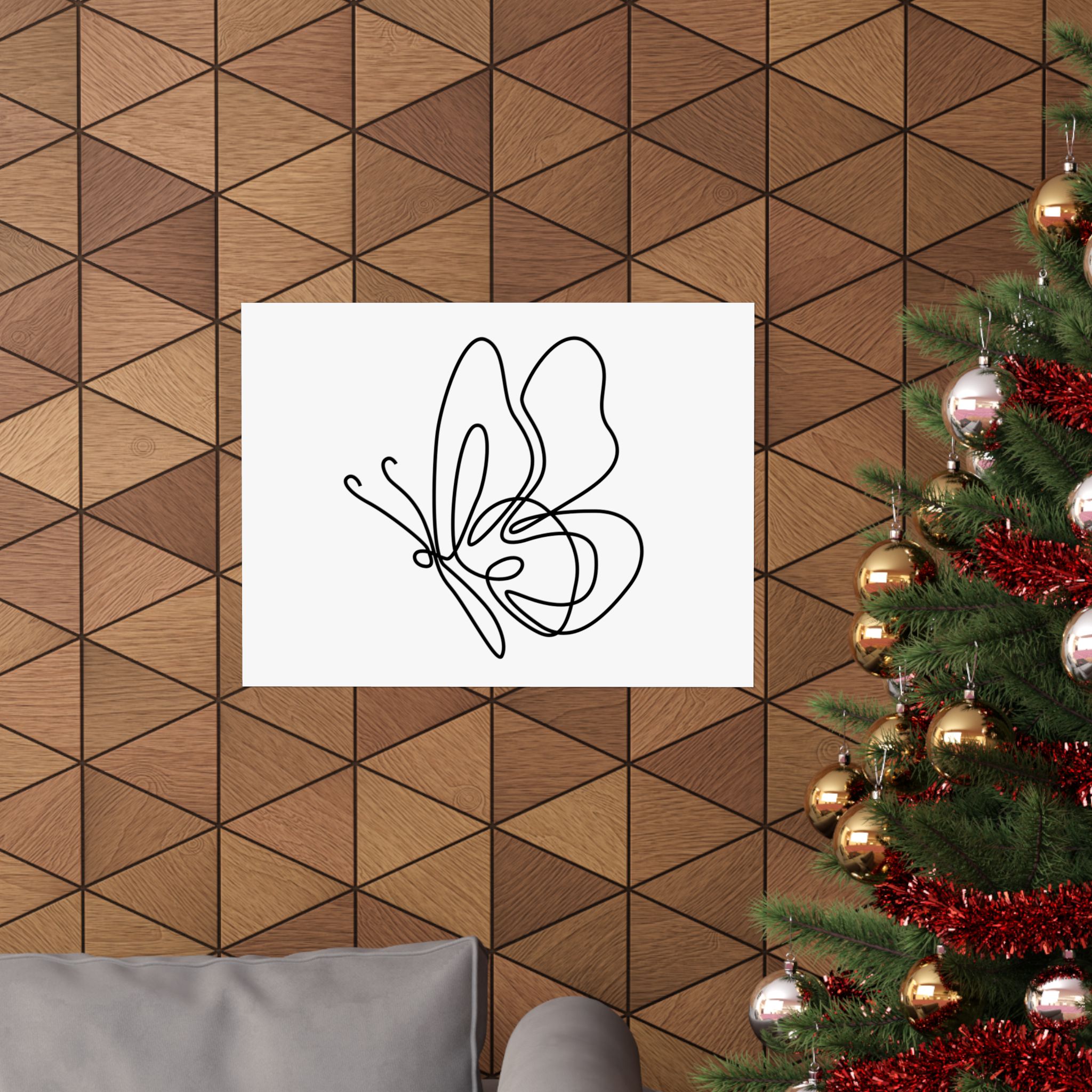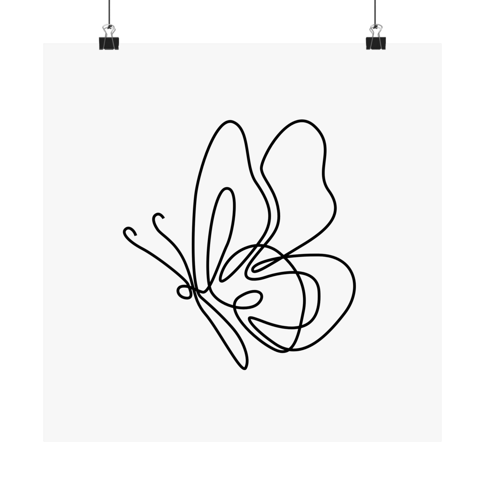 Minimal Line Art Butterfly Poster — Matte Horizontal Wall Art