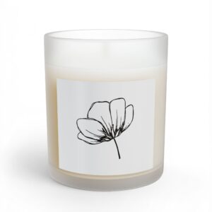 A quietly elegant 11oz soy candle, poured into a reusable clear or frosted glass vessel and hand-assembled in the USA. The minimalist line-drawn flower label and creamy natural wax create a calm, understated presence that settles into morning light or slow evenings. Choose from five carefully curated scents or an unscented option — each burns clean on a 100% cotton wick for 55–70 hours, then the glass can be cleaned and repurposed as a bud vase, pen cup, or shelf accent. It meets ASTM fire safety standards and uses non-toxic, phthalate- and paraben-free ingredients so the scent supports comfort without compromise.