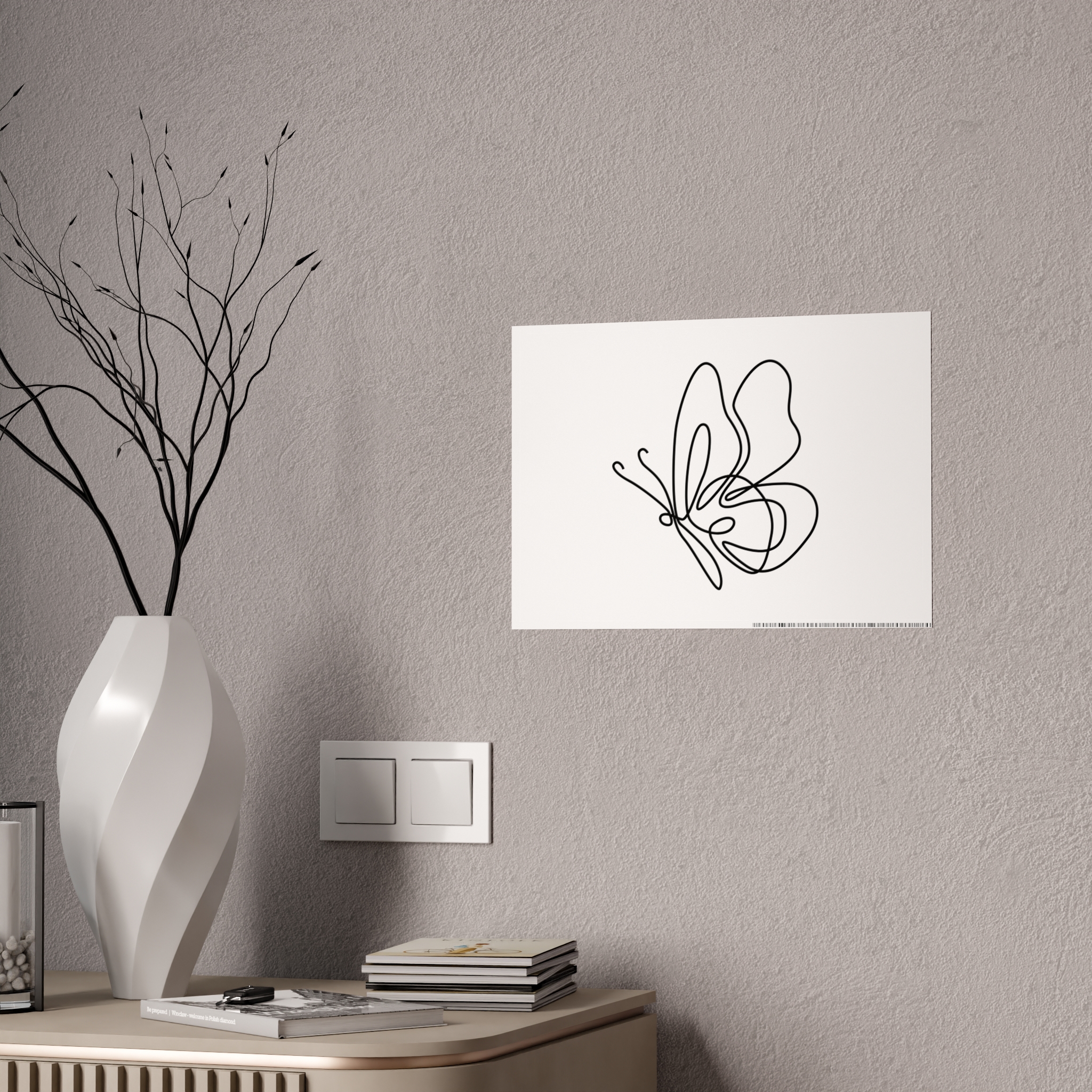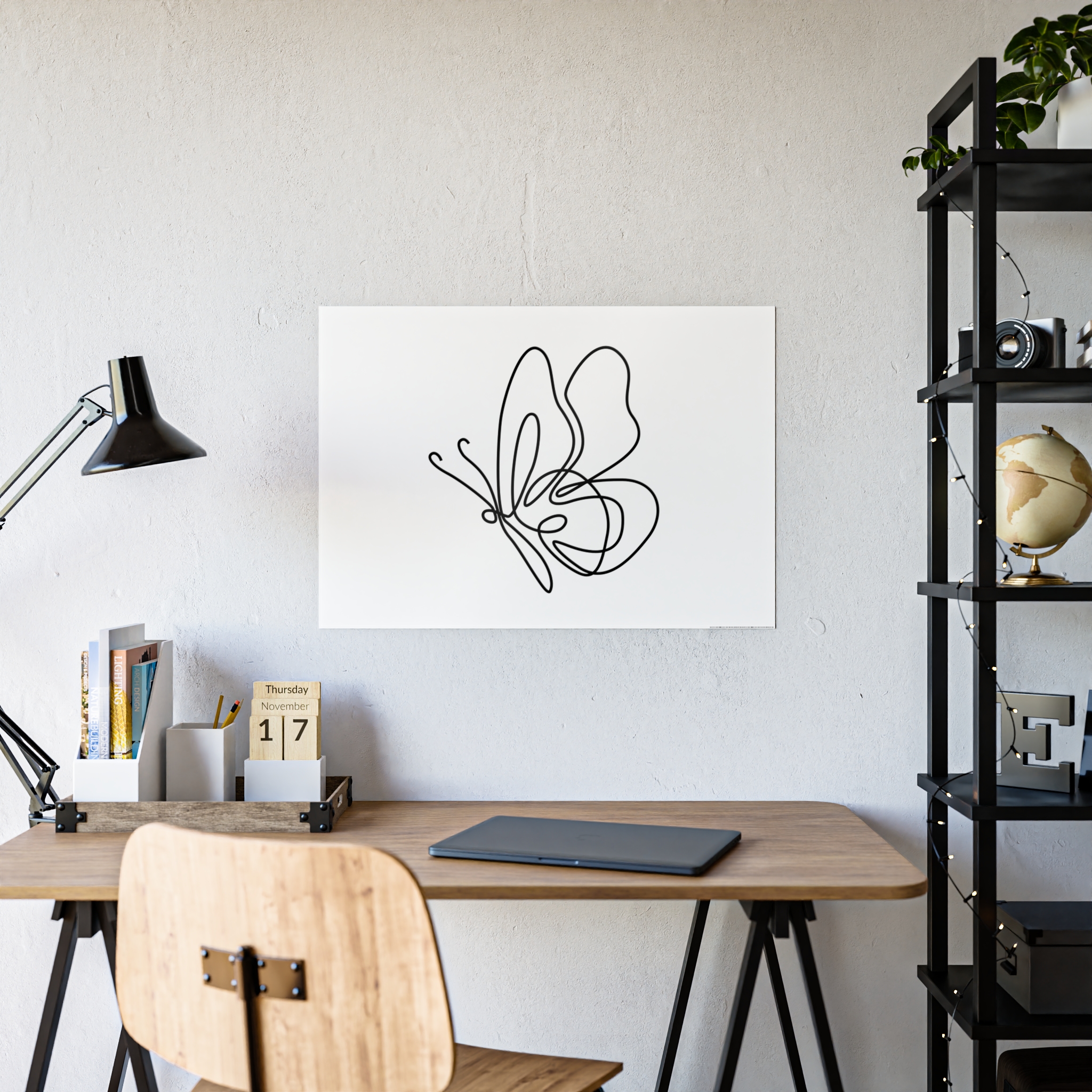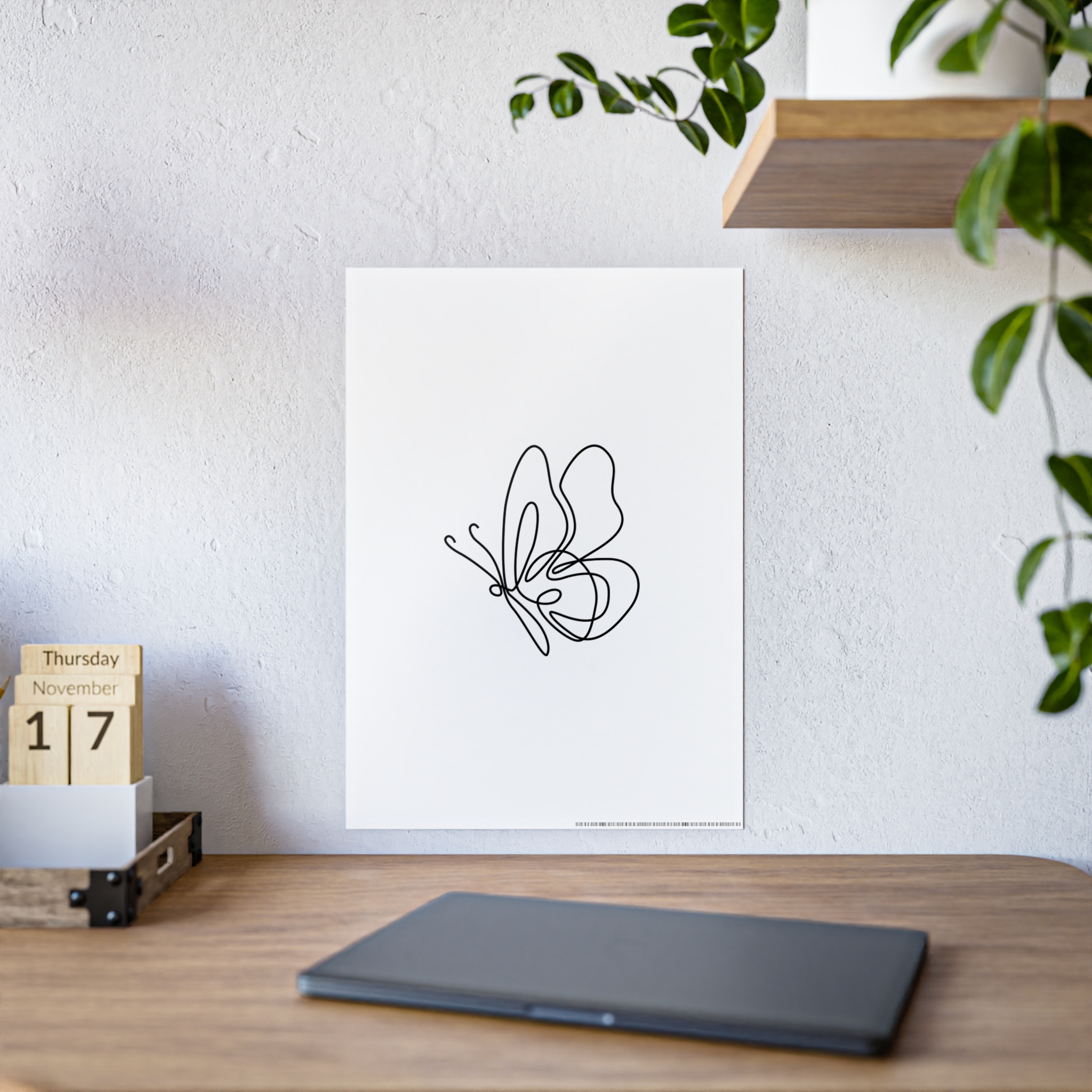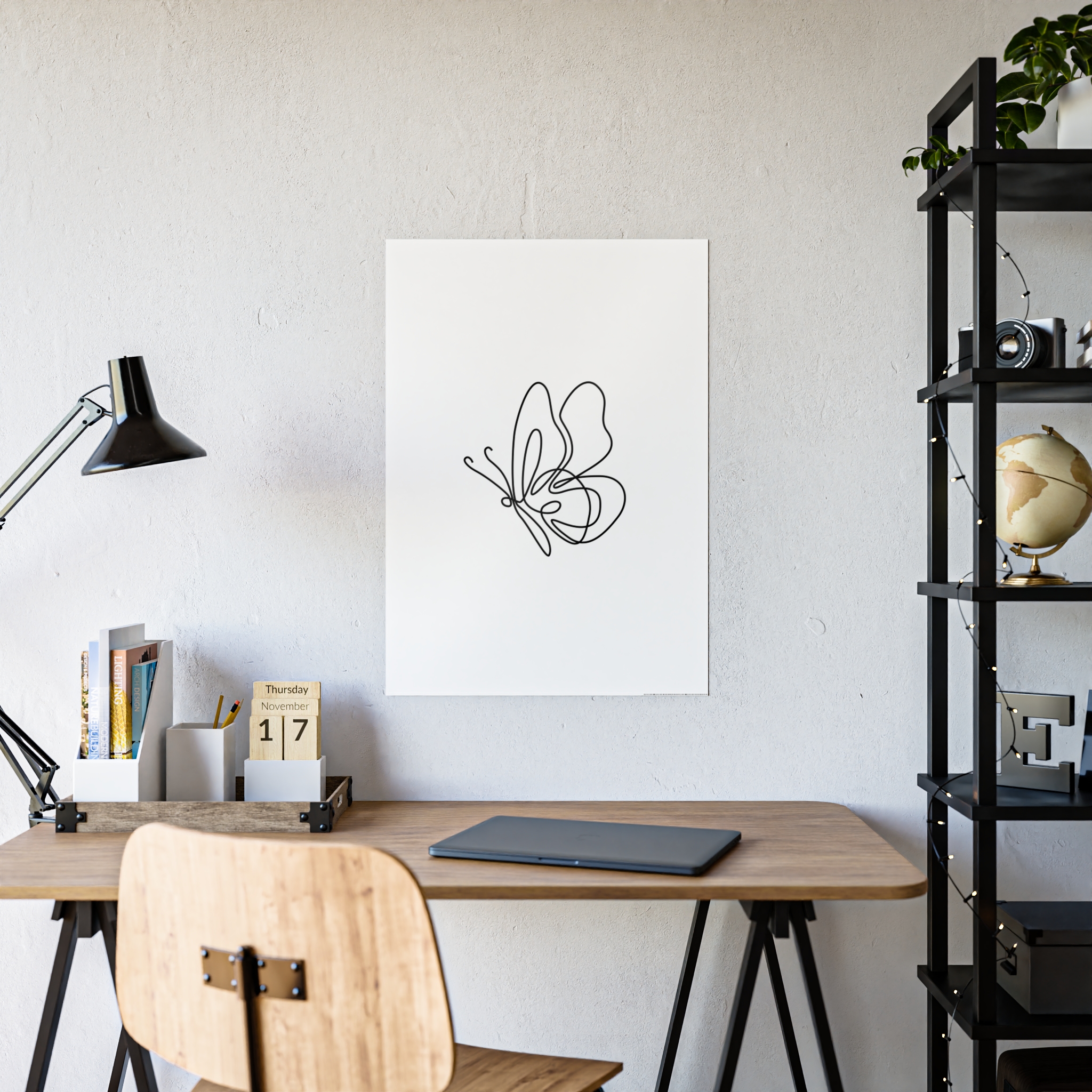 Minimal Line Butterfly Gloss Poster — Modern Monoline Wall Art