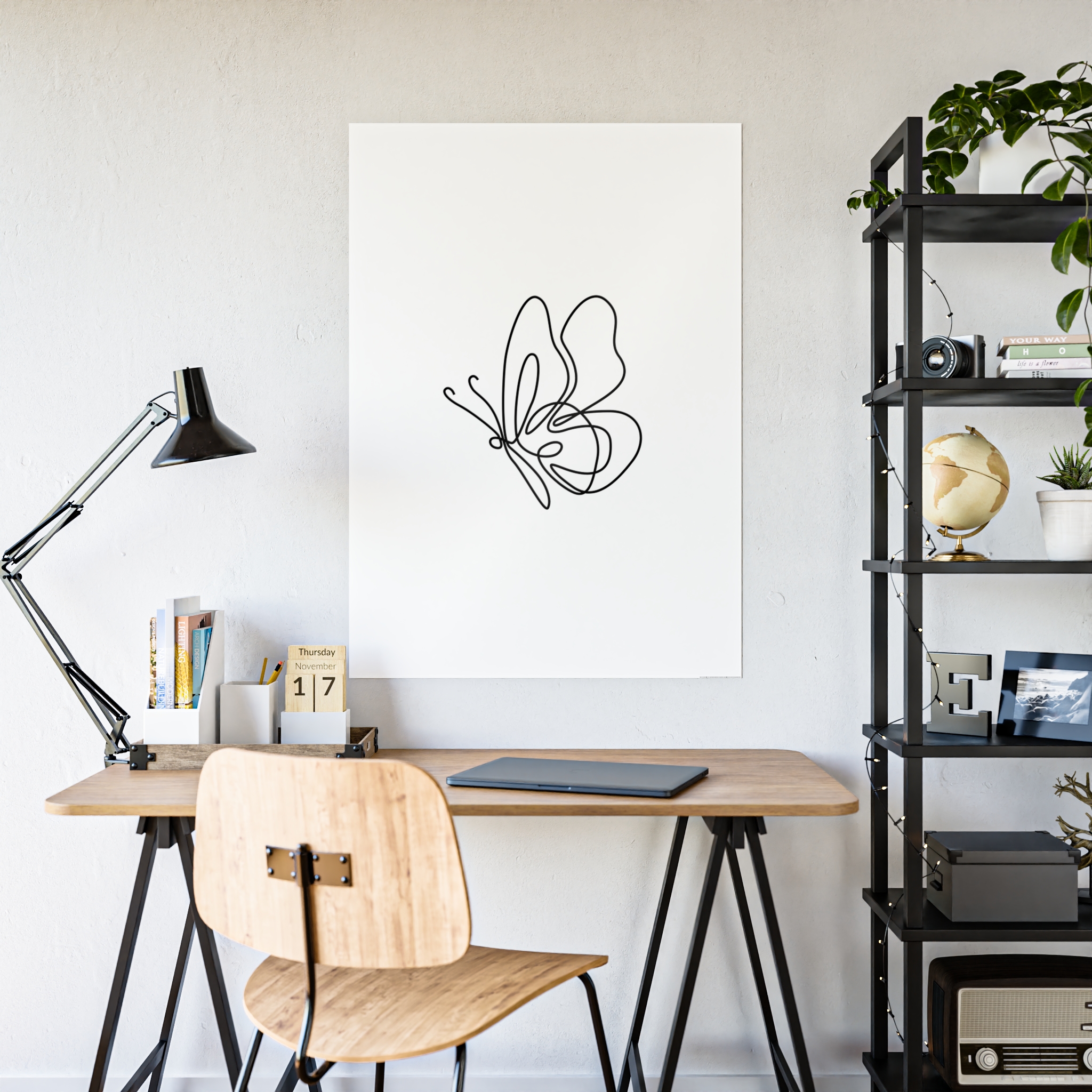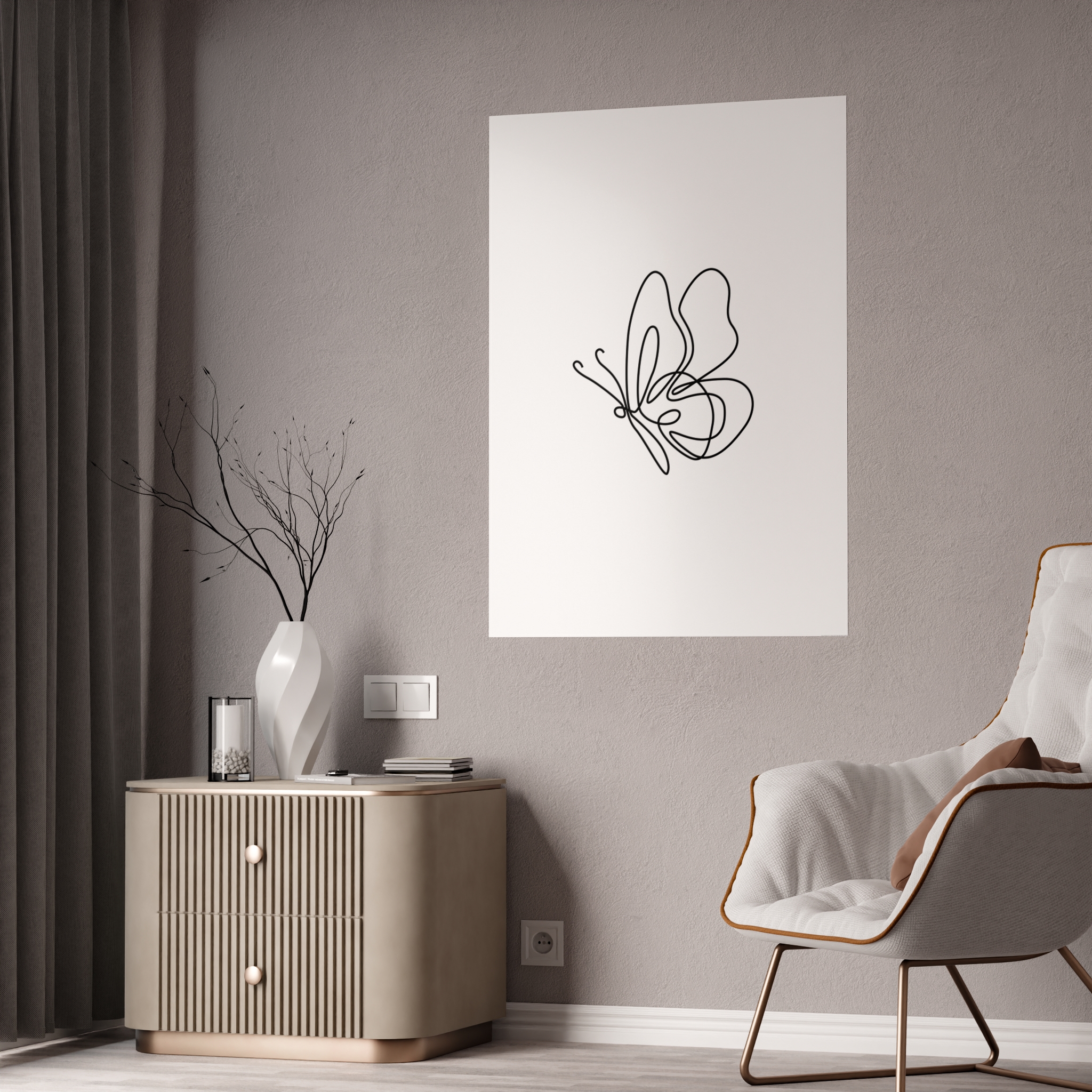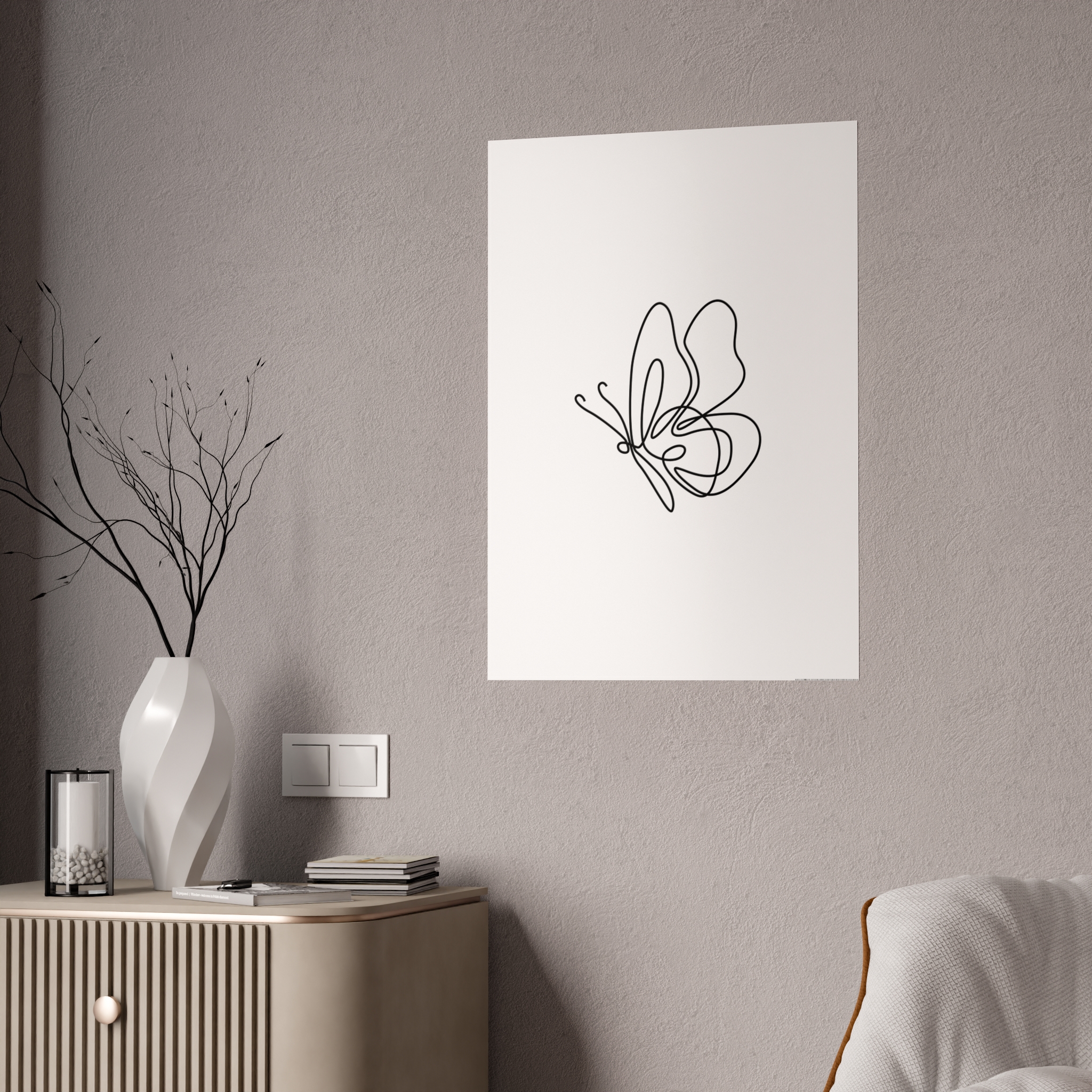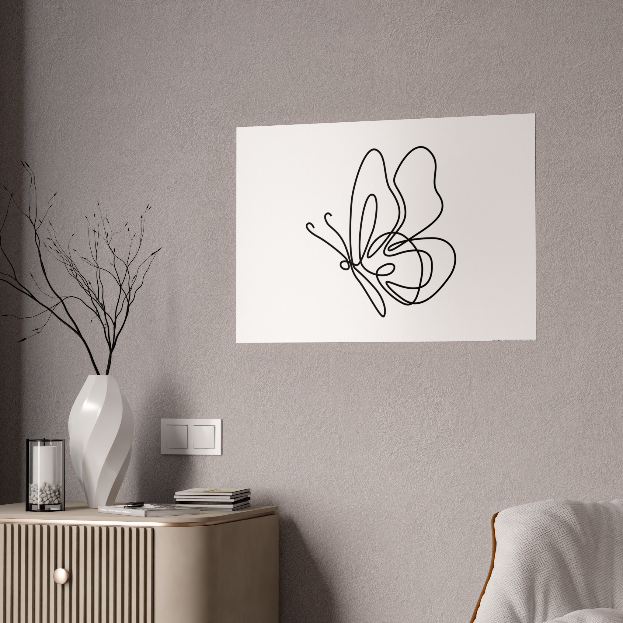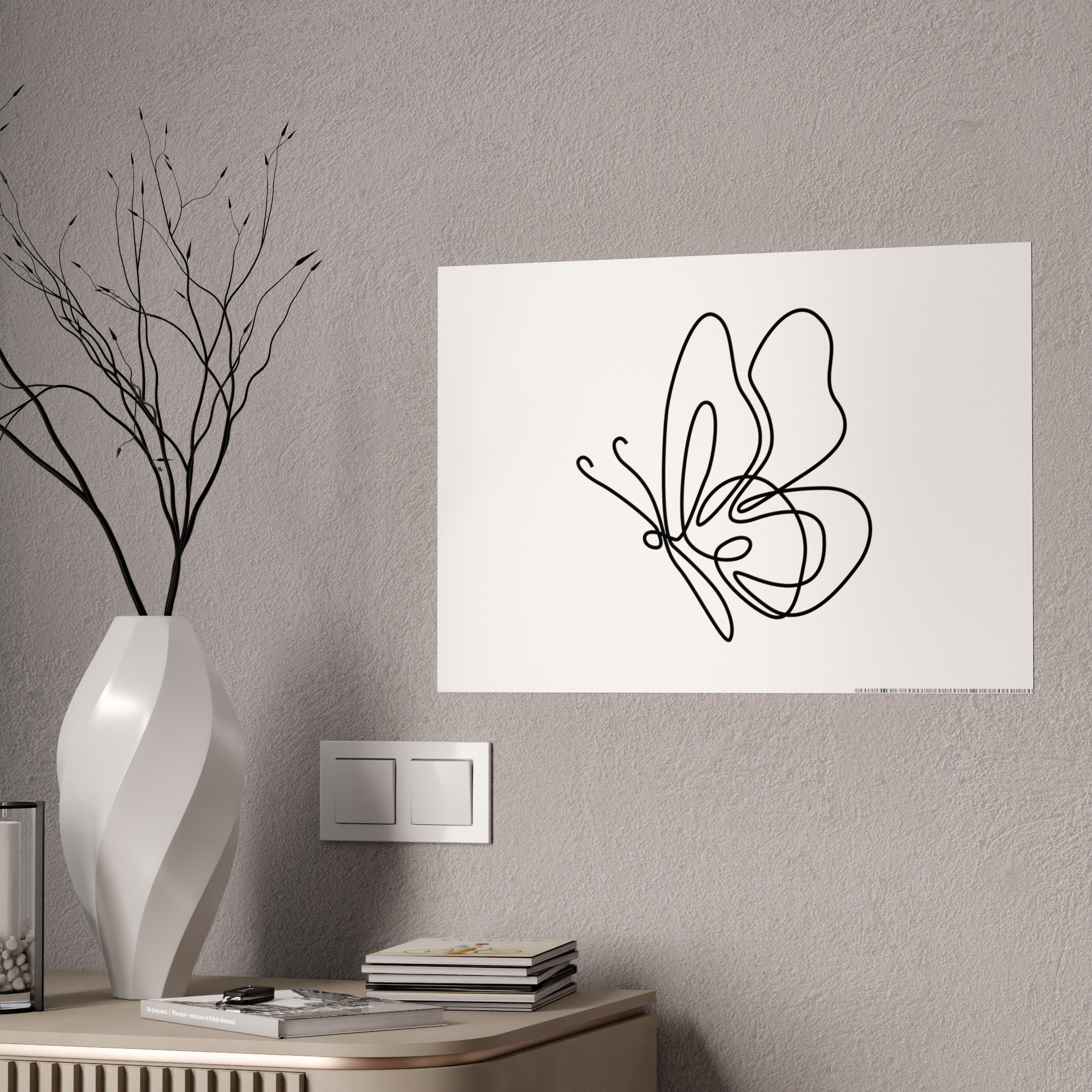 Minimal Line Butterfly Gloss Poster — Modern Monoline Wall Art