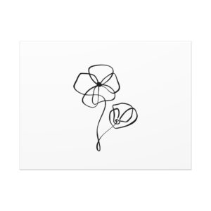 Minimal One-Line Floral Canvas Art Wrap — Modern Black Line Poppy Print