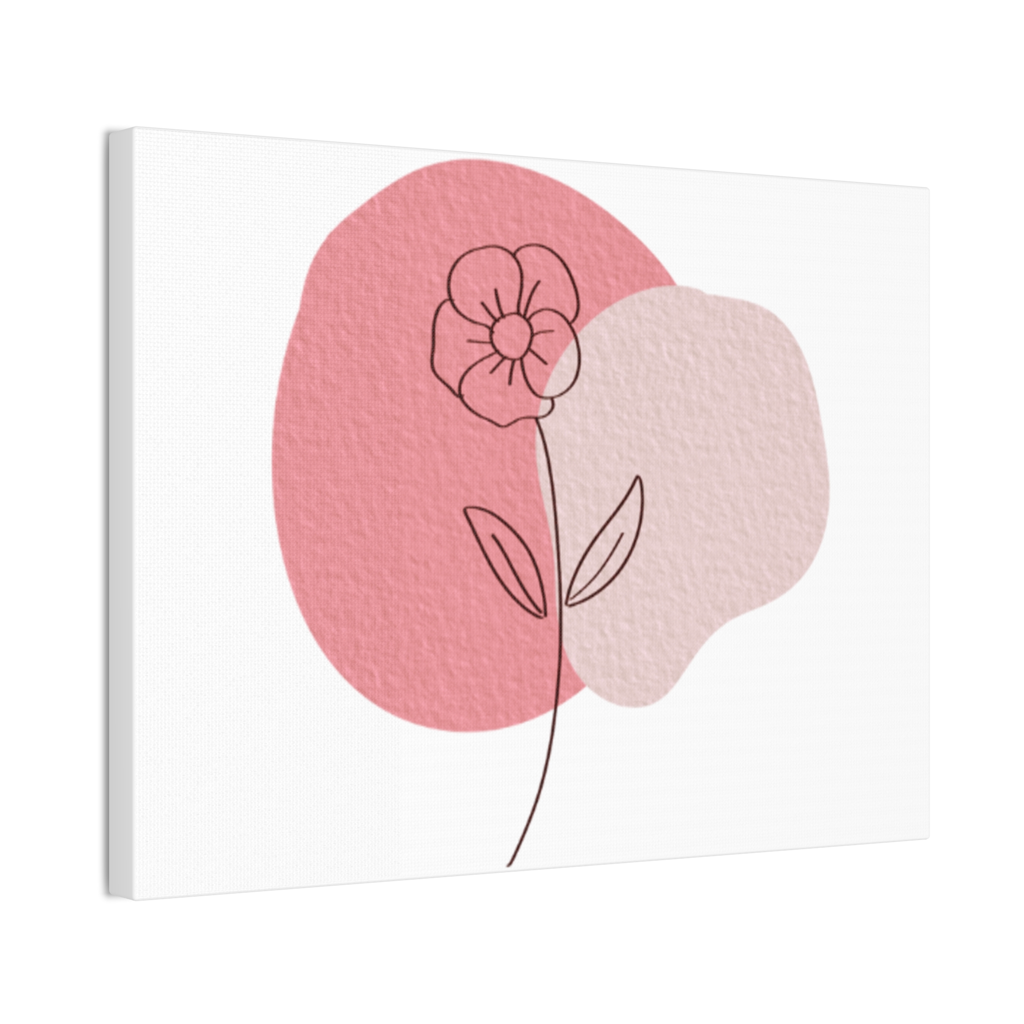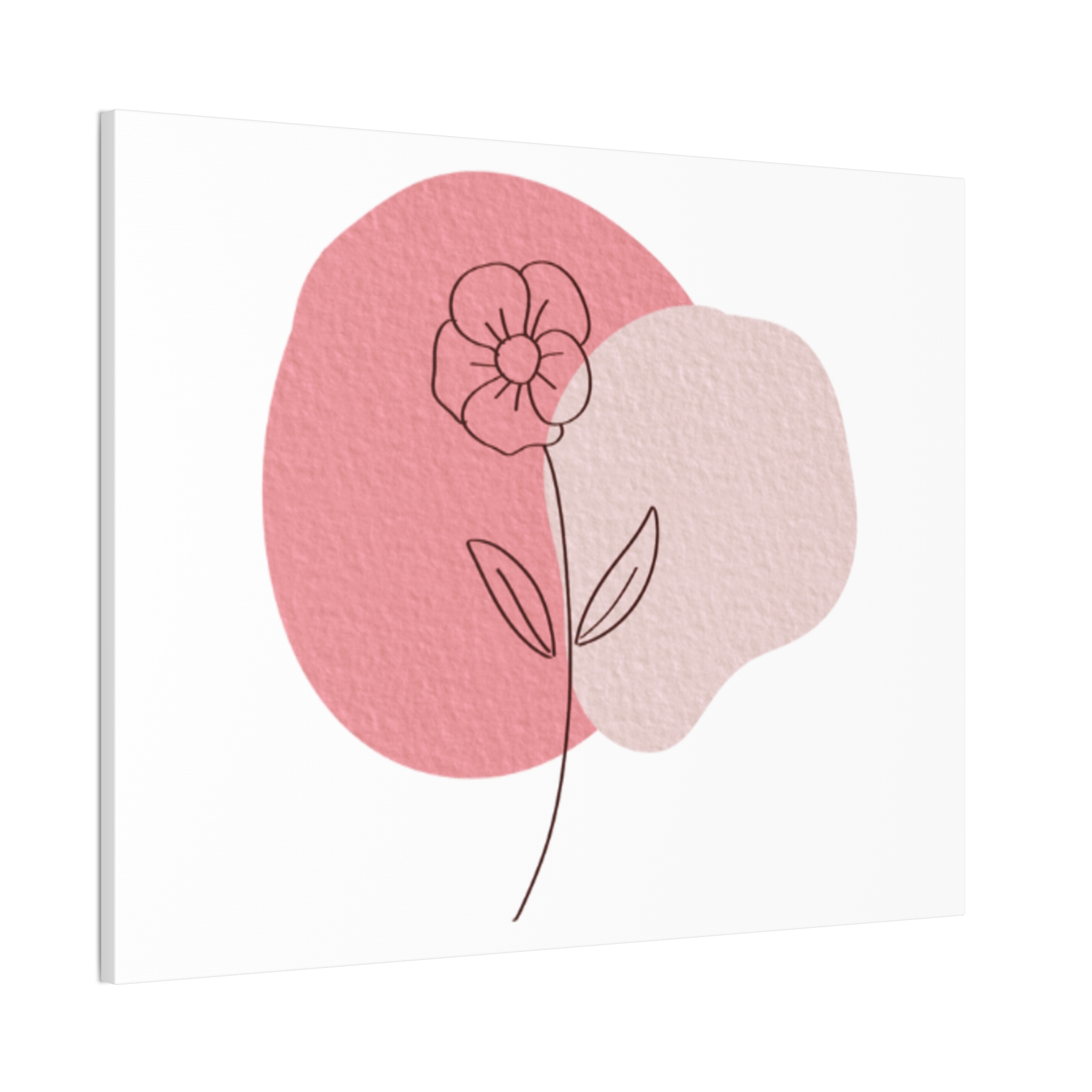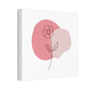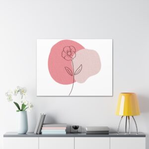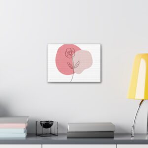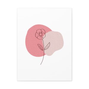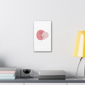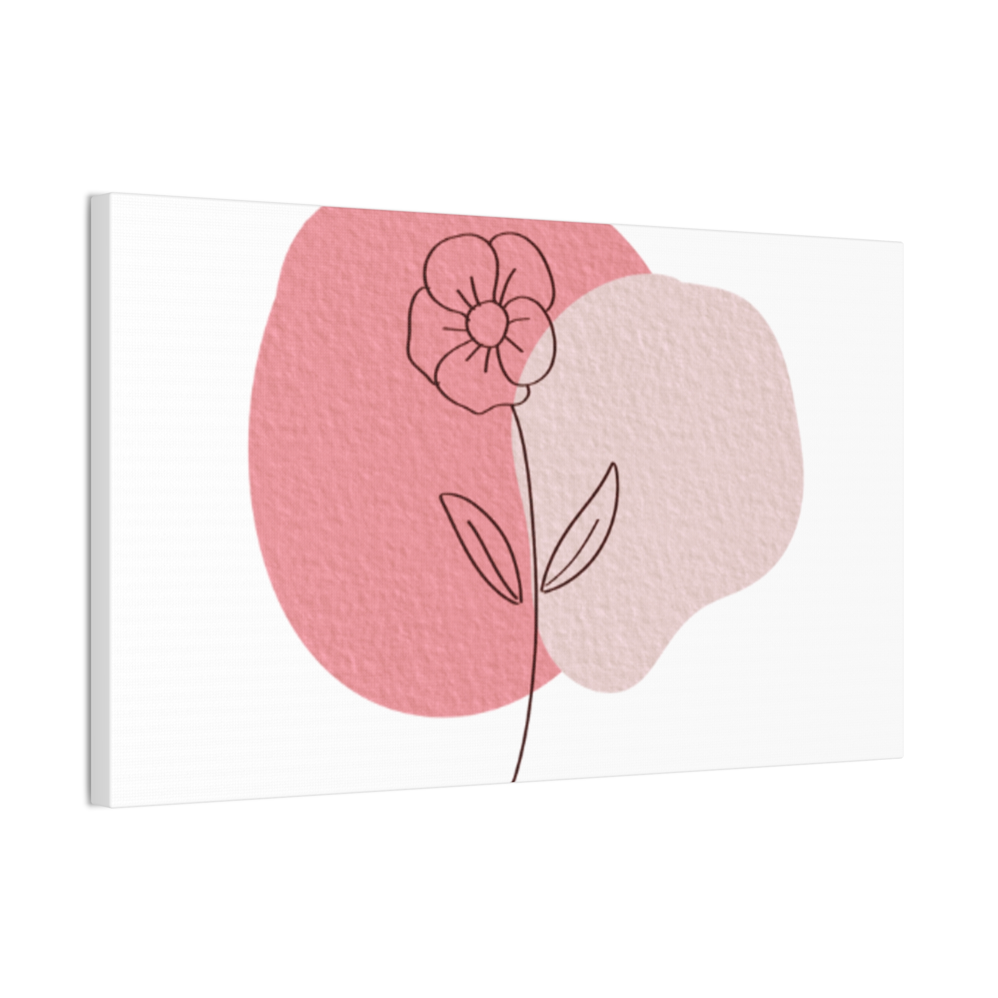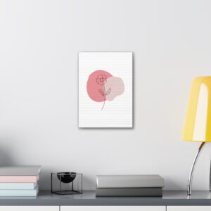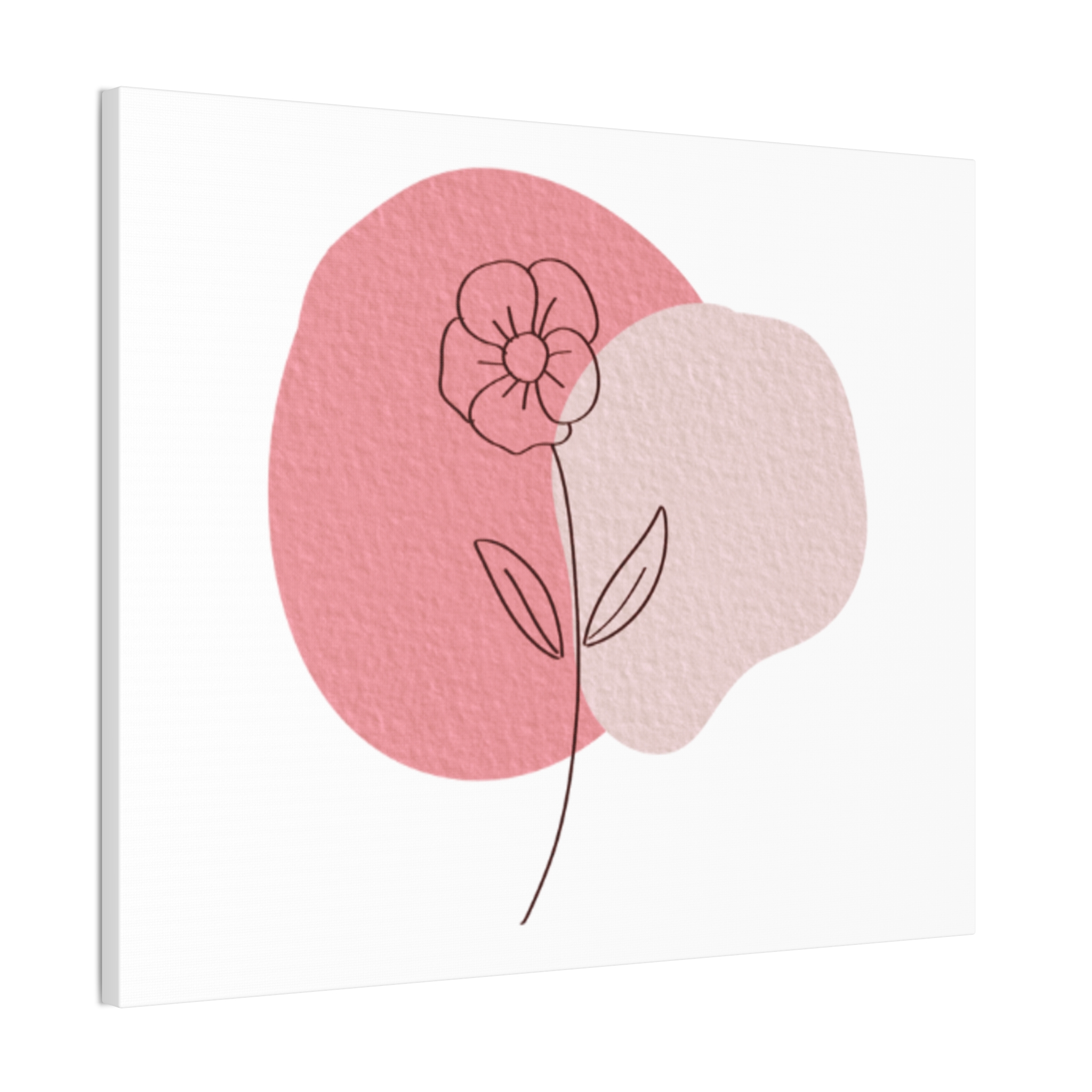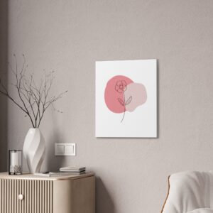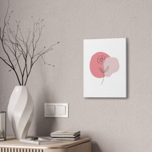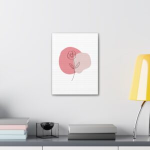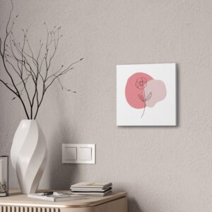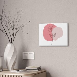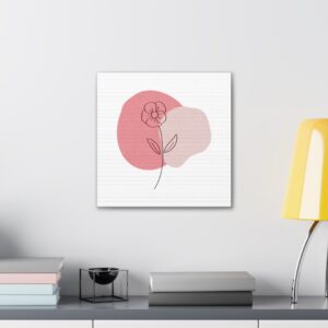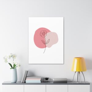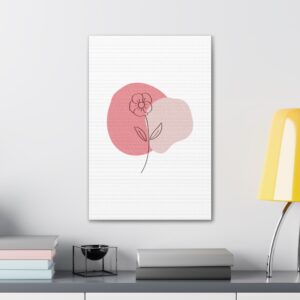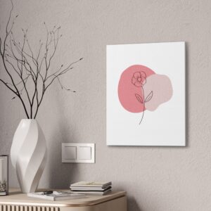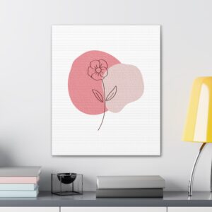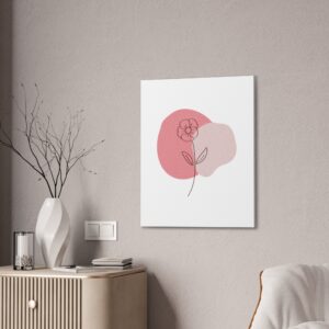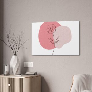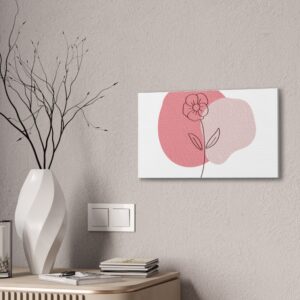 A soft, modern canvas print that brings quiet warmth to a living space. Hand-drawn floral linework sits against two muted blush shapes, printed on textured 100% polyester canvas and stretched over a 0.75″ pinewood frame. The subtle texture and vibrant, true-to-design color give the piece a handcrafted gallery feel — easy to hang and made to complement calm, contemporary interiors. It’s light enough to move between rooms, comes with mounting hardware and a small QR code on the back for care or provenance, and is available in multiple orientations and twenty sizes to suit shelves, entryways, bedrooms, or home offices.