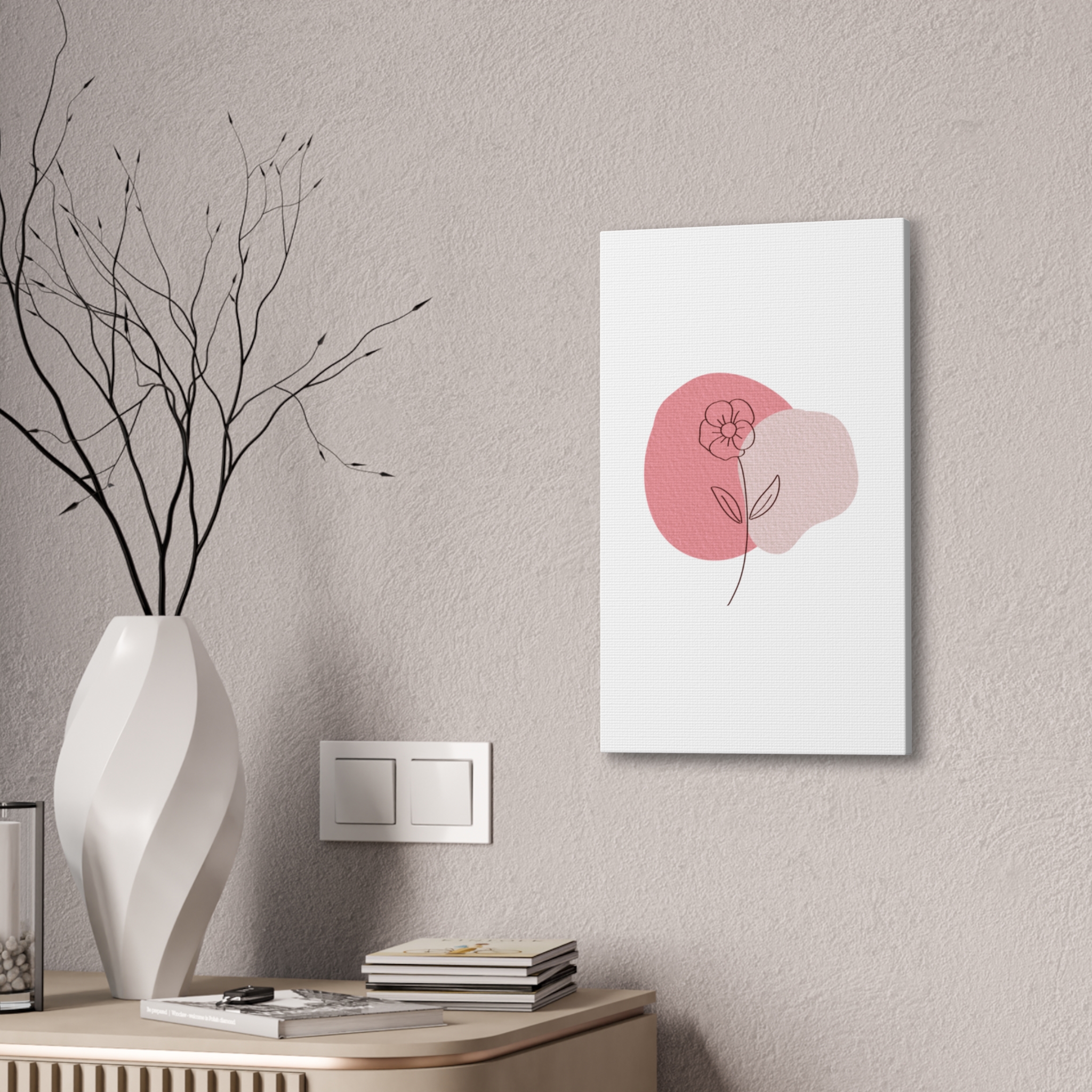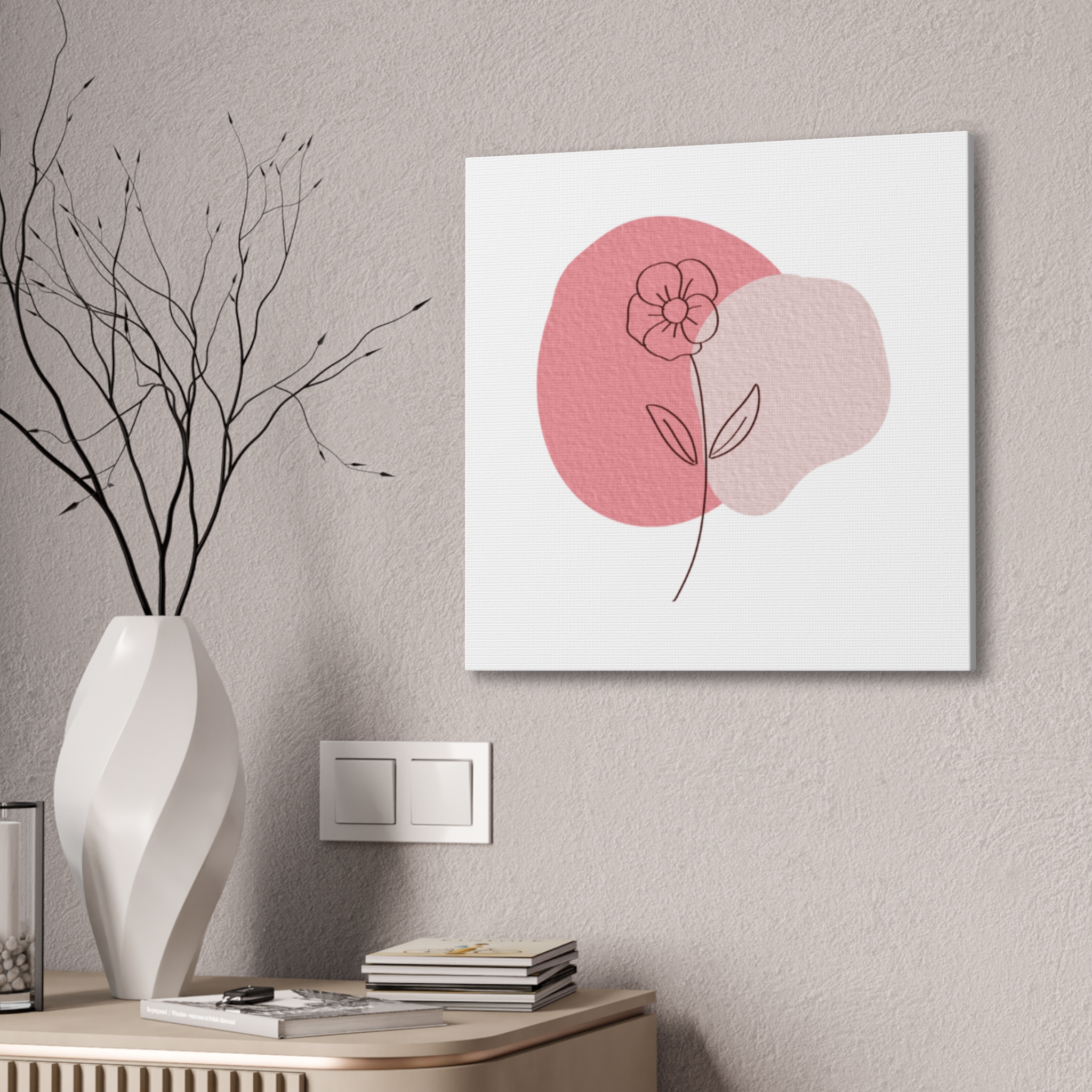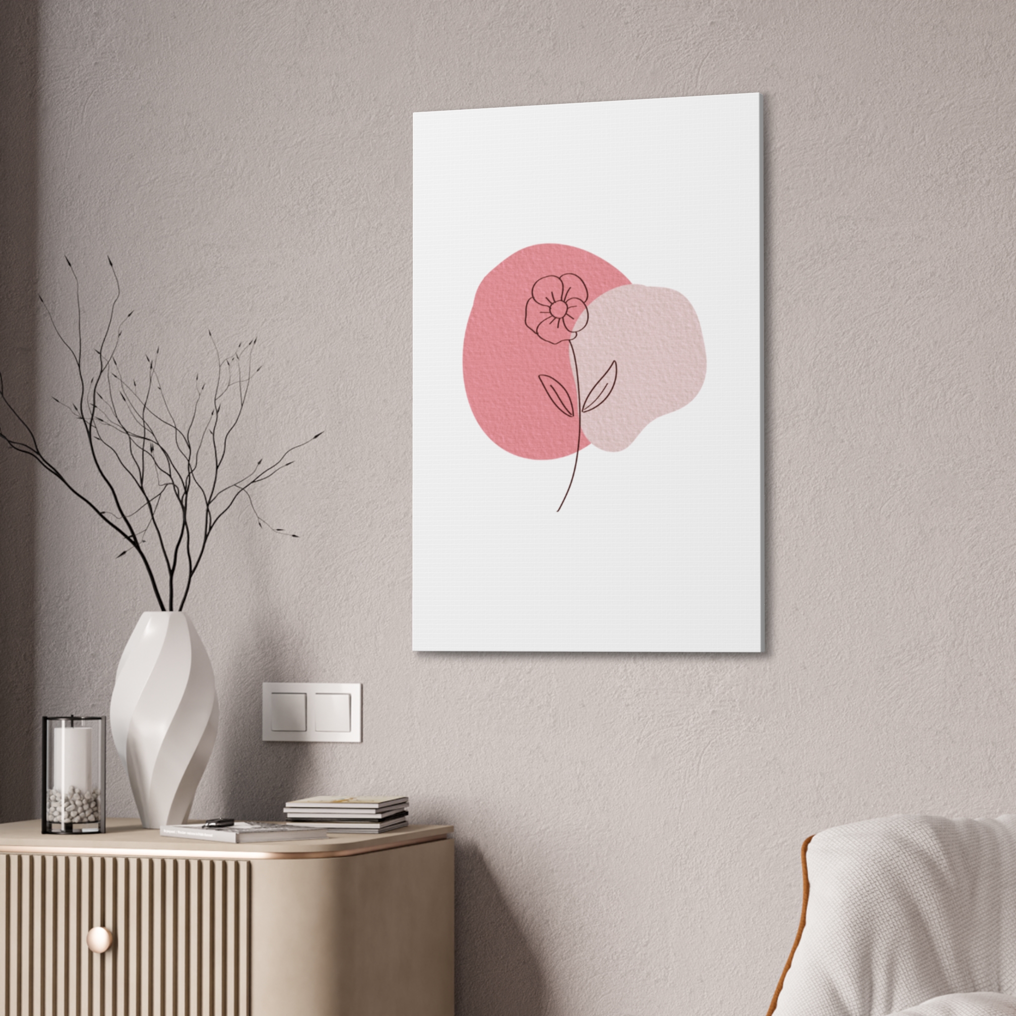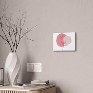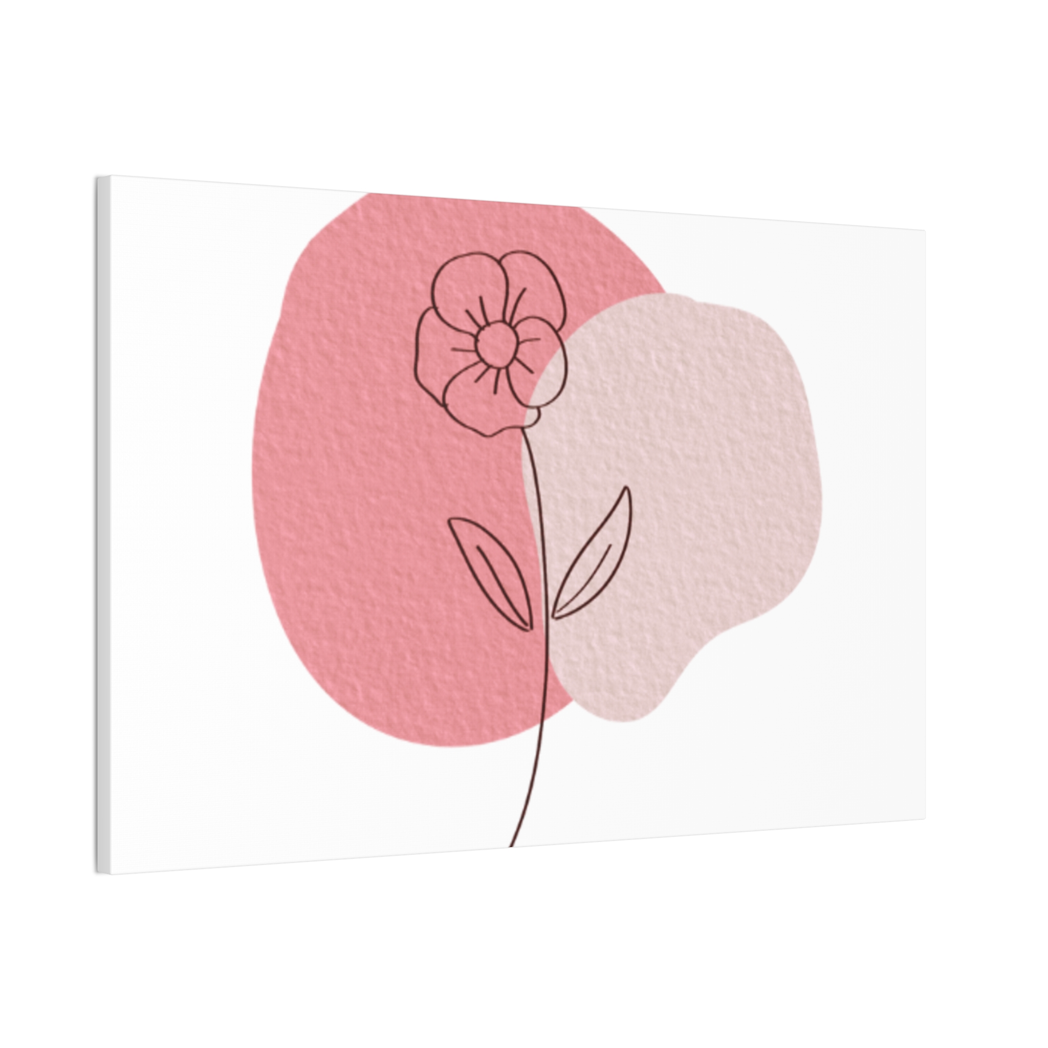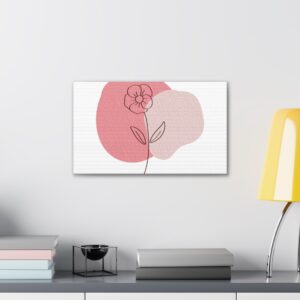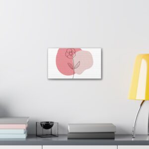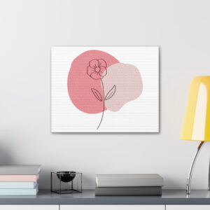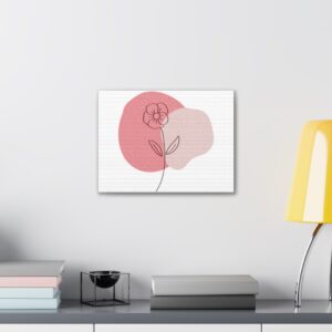 A soft, modern canvas print that brings quiet warmth to a living space. Hand-drawn floral linework sits against two muted blush shapes, printed on textured 100% polyester canvas and stretched over a 0.75″ pinewood frame. The subtle texture and vibrant, true-to-design color give the piece a handcrafted gallery feel — easy to hang and made to complement calm, contemporary interiors. It’s light enough to move between rooms, comes with mounting hardware and a small QR code on the back for care or provenance, and is available in multiple orientations and twenty sizes to suit shelves, entryways, bedrooms, or home offices.