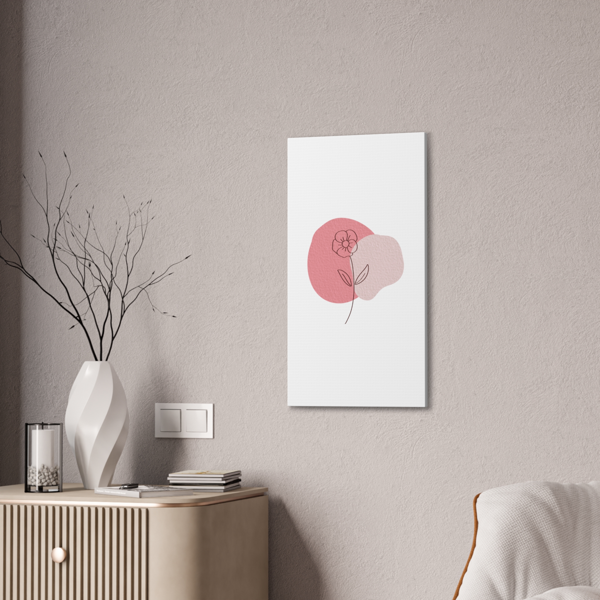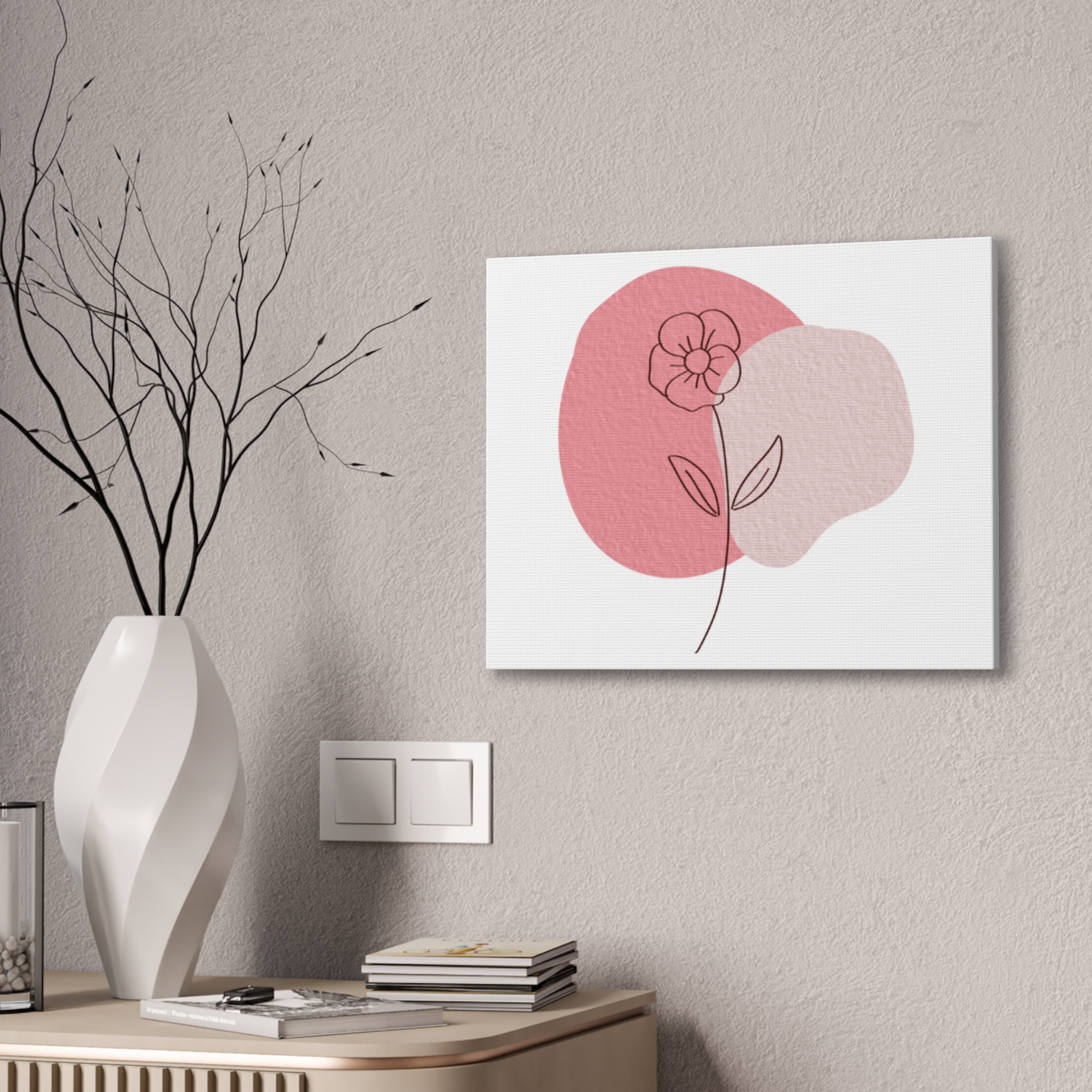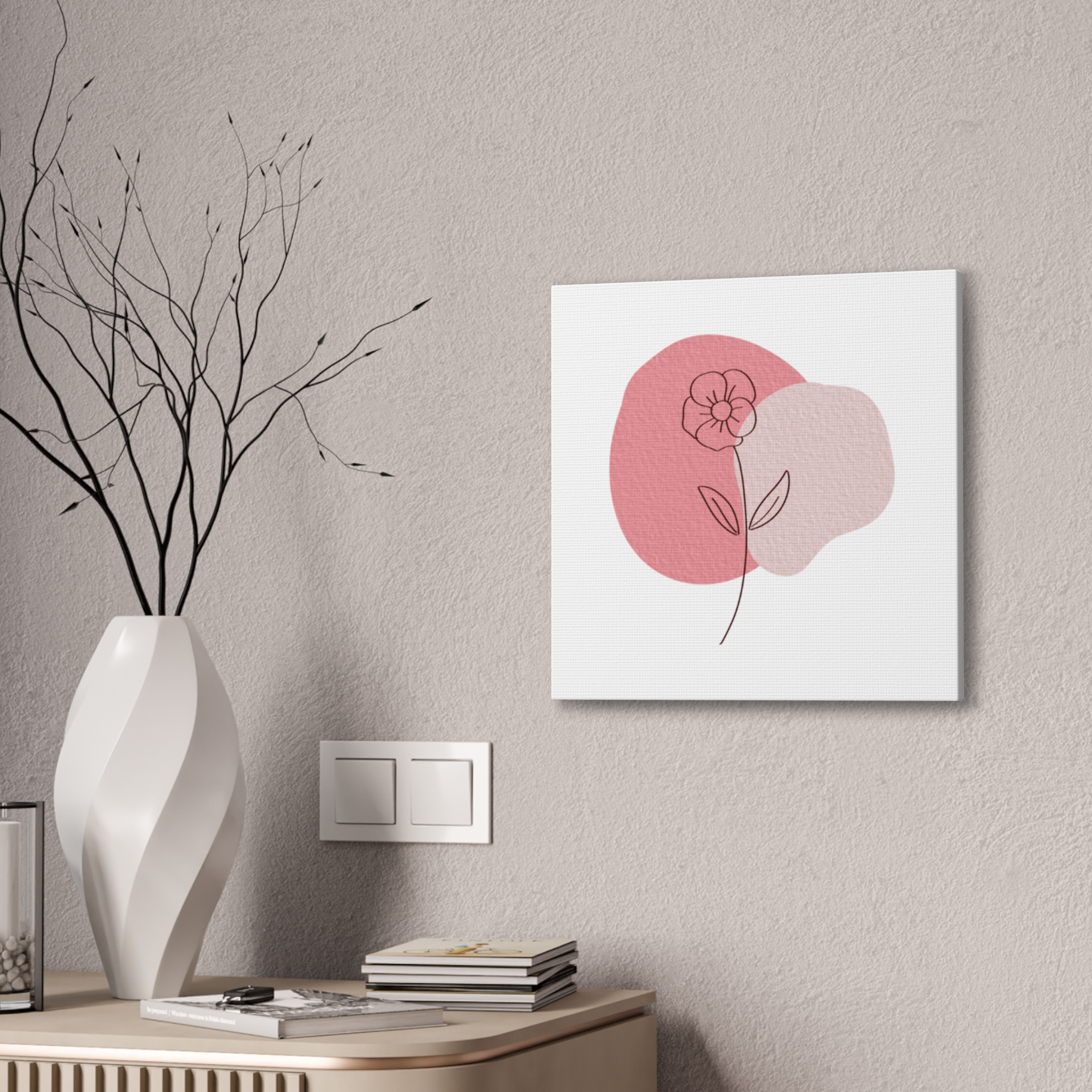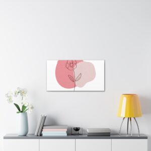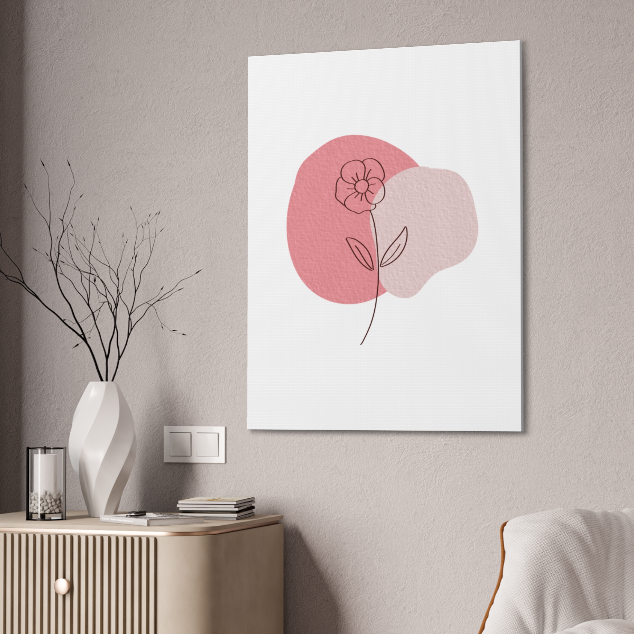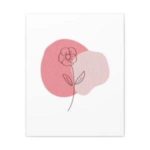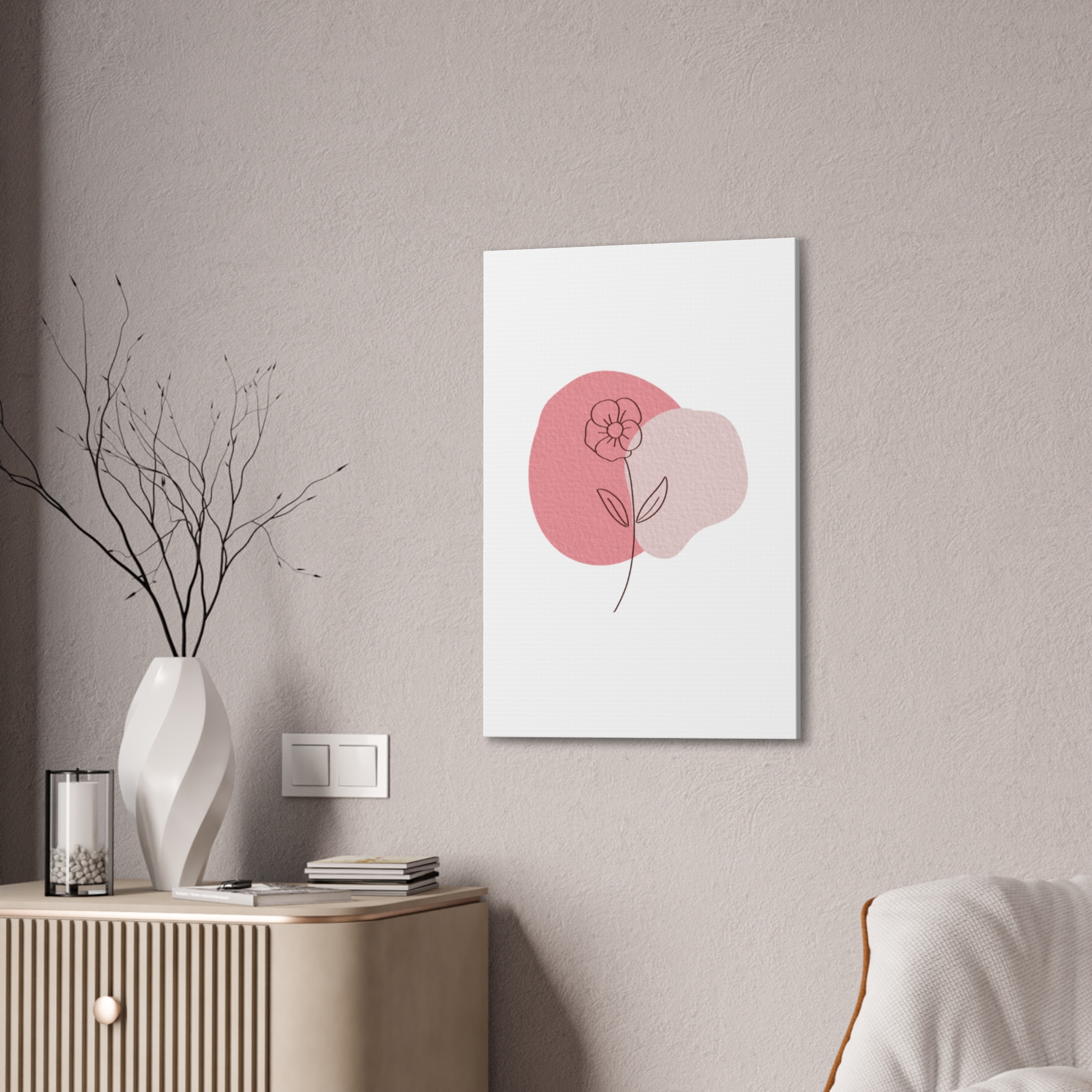 A soft, modern canvas print that brings quiet warmth to a living space. Hand-drawn floral linework sits against two muted blush shapes, printed on textured 100% polyester canvas and stretched over a 0.75″ pinewood frame. The subtle texture and vibrant, true-to-design color give the piece a handcrafted gallery feel — easy to hang and made to complement calm, contemporary interiors. It’s light enough to move between rooms, comes with mounting hardware and a small QR code on the back for care or provenance, and is available in multiple orientations and twenty sizes to suit shelves, entryways, bedrooms, or home offices.