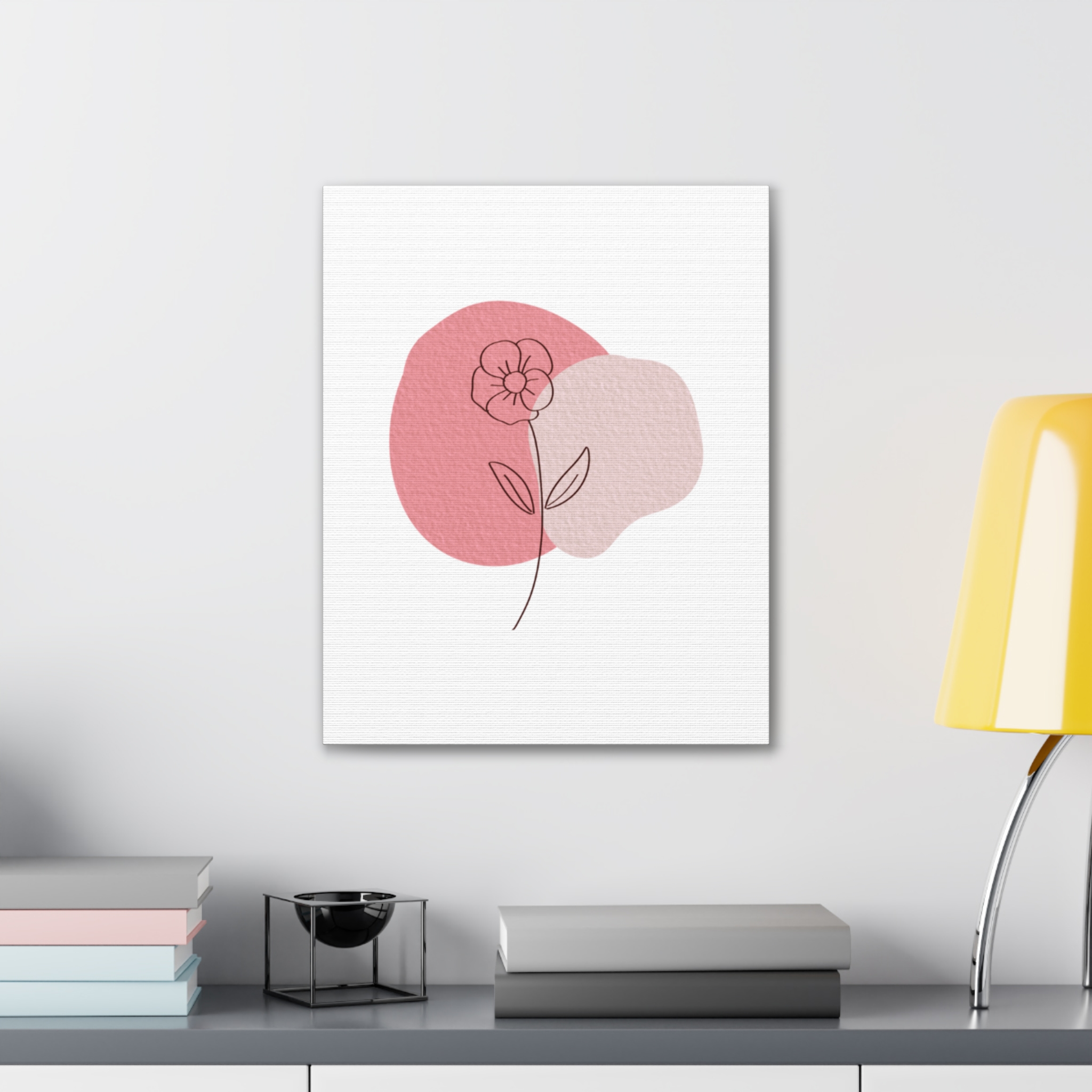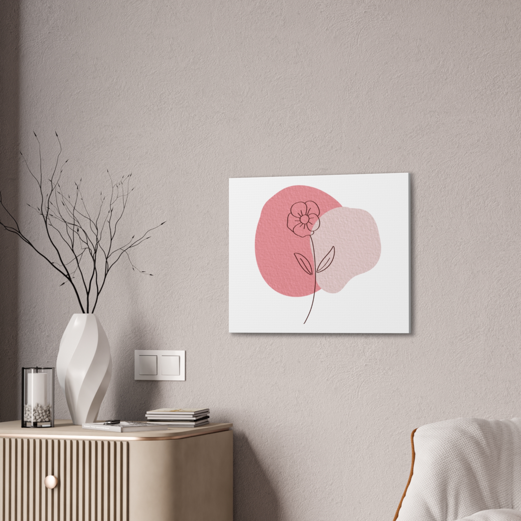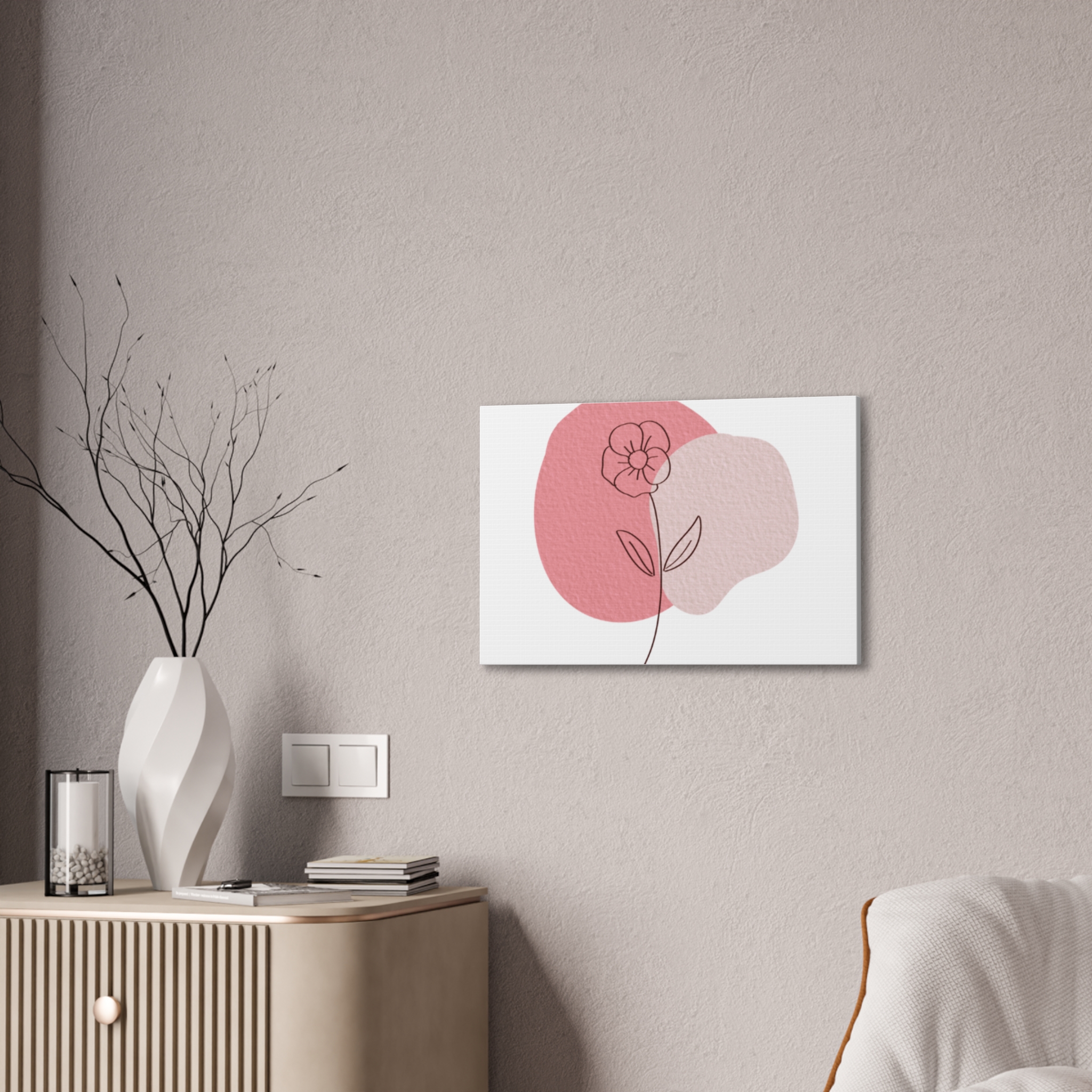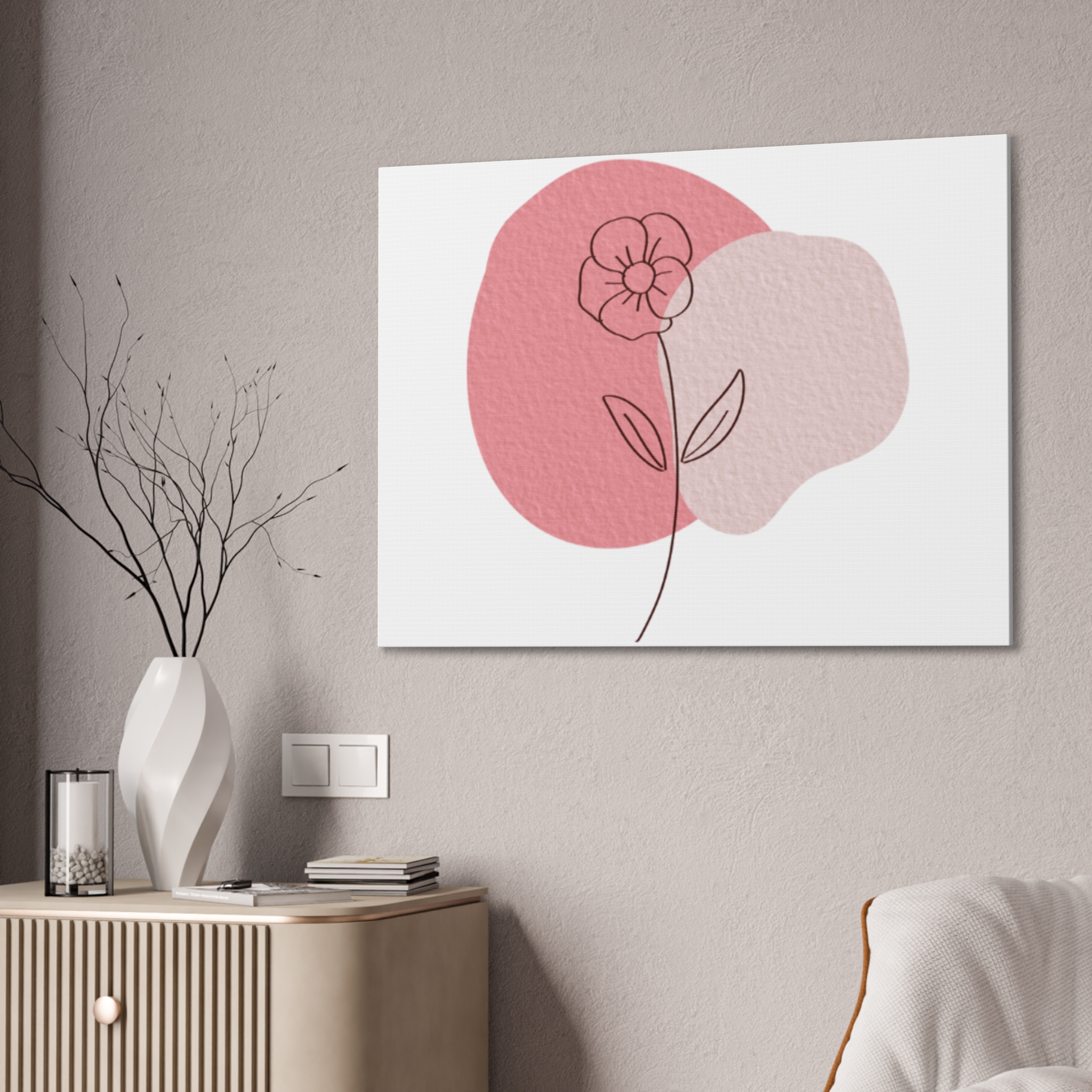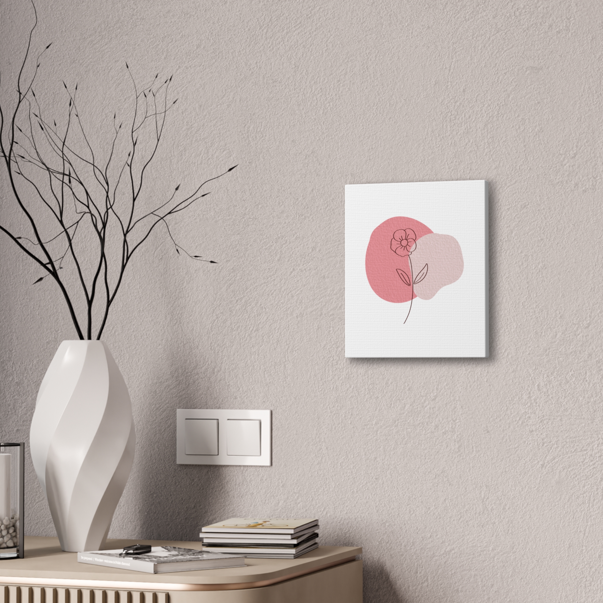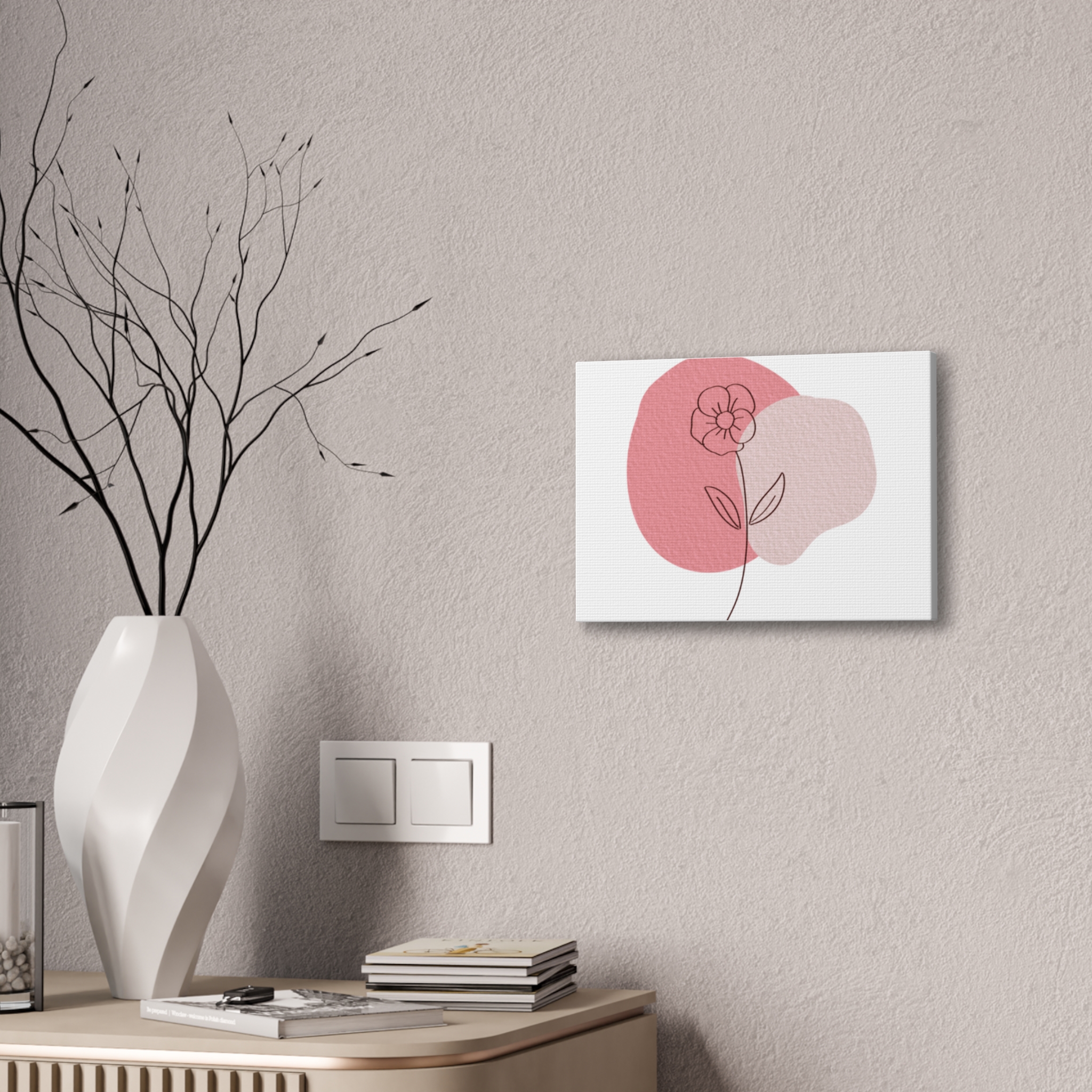 A soft, modern canvas print that brings quiet warmth to a living space. Hand-drawn floral linework sits against two muted blush shapes, printed on textured 100% polyester canvas and stretched over a 0.75″ pinewood frame. The subtle texture and vibrant, true-to-design color give the piece a handcrafted gallery feel — easy to hang and made to complement calm, contemporary interiors. It’s light enough to move between rooms, comes with mounting hardware and a small QR code on the back for care or provenance, and is available in multiple orientations and twenty sizes to suit shelves, entryways, bedrooms, or home offices.