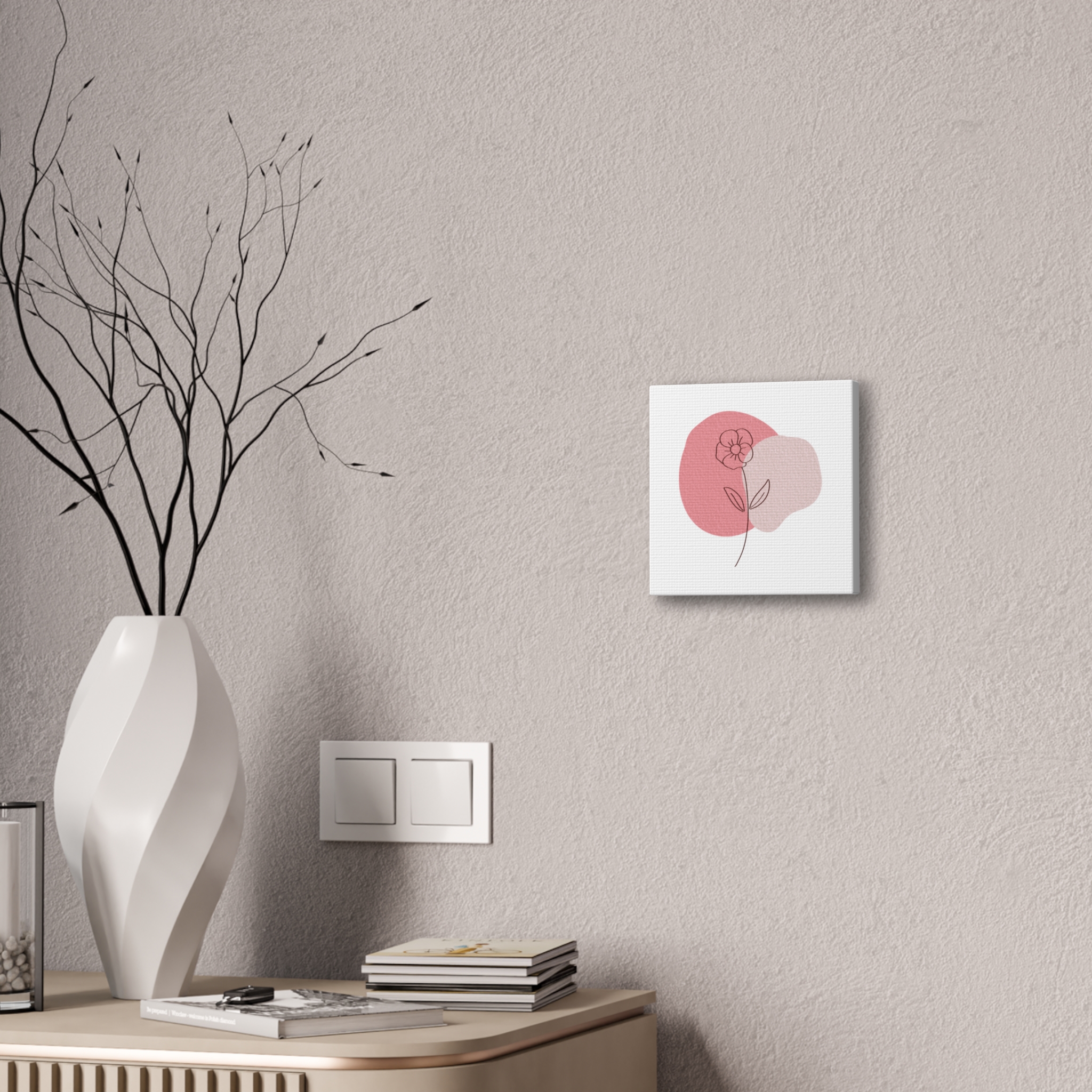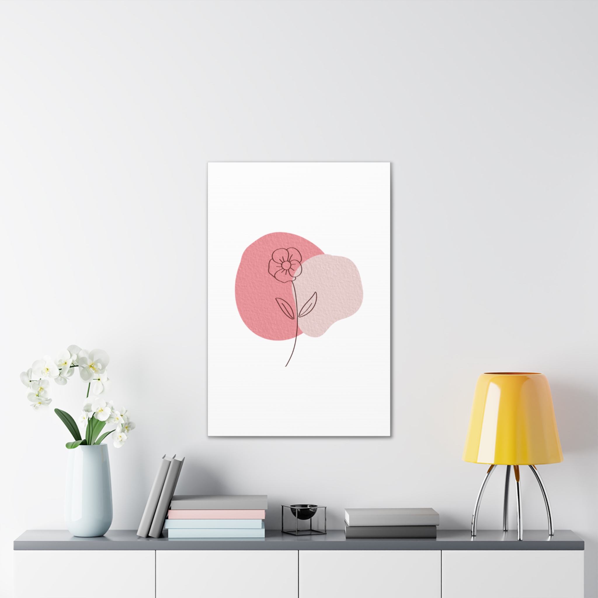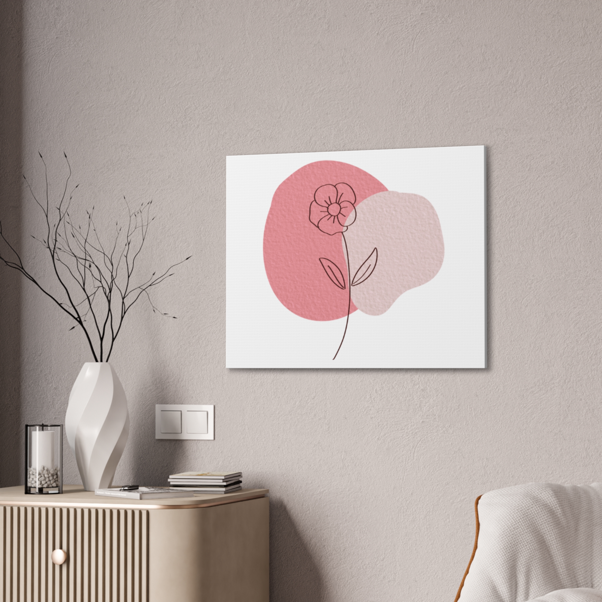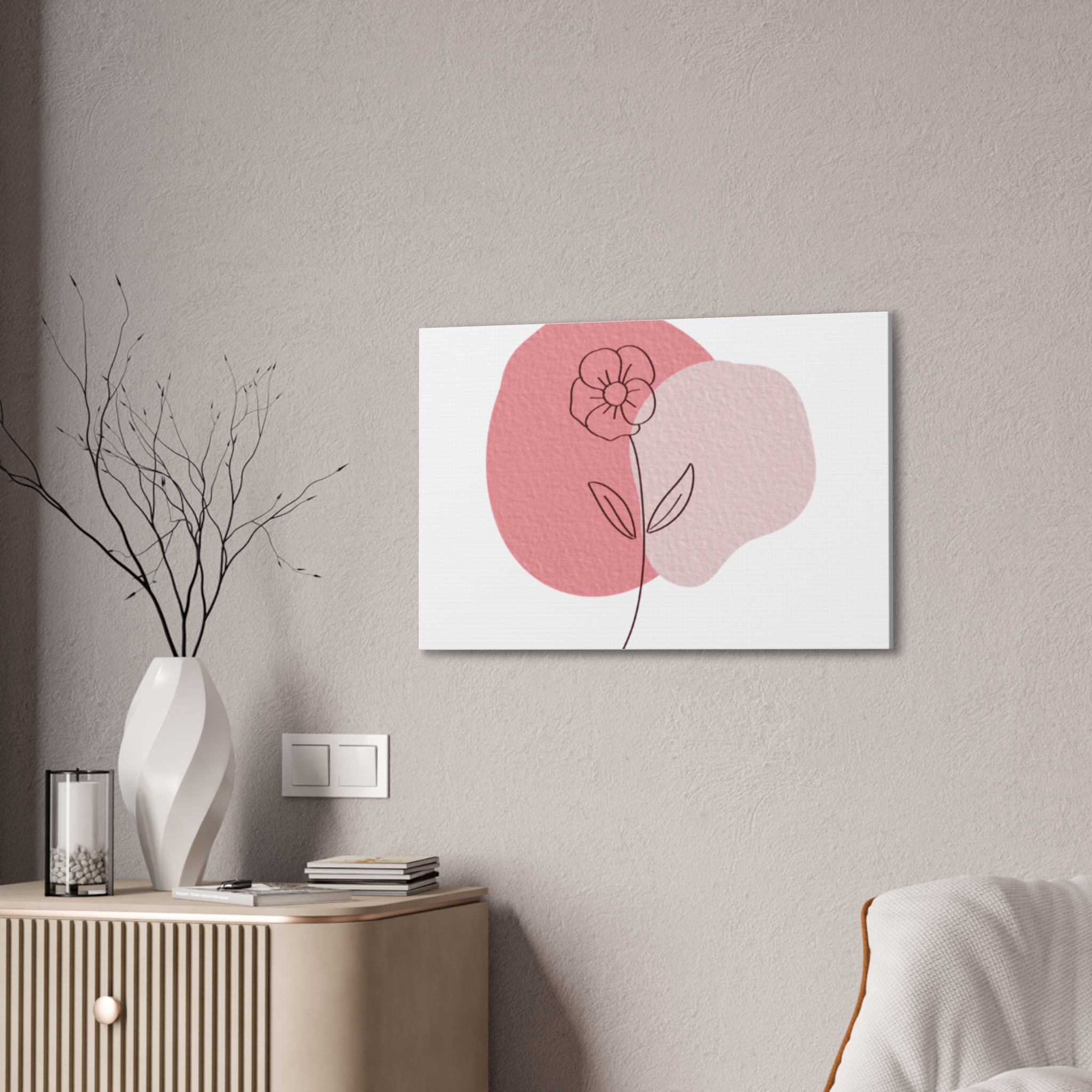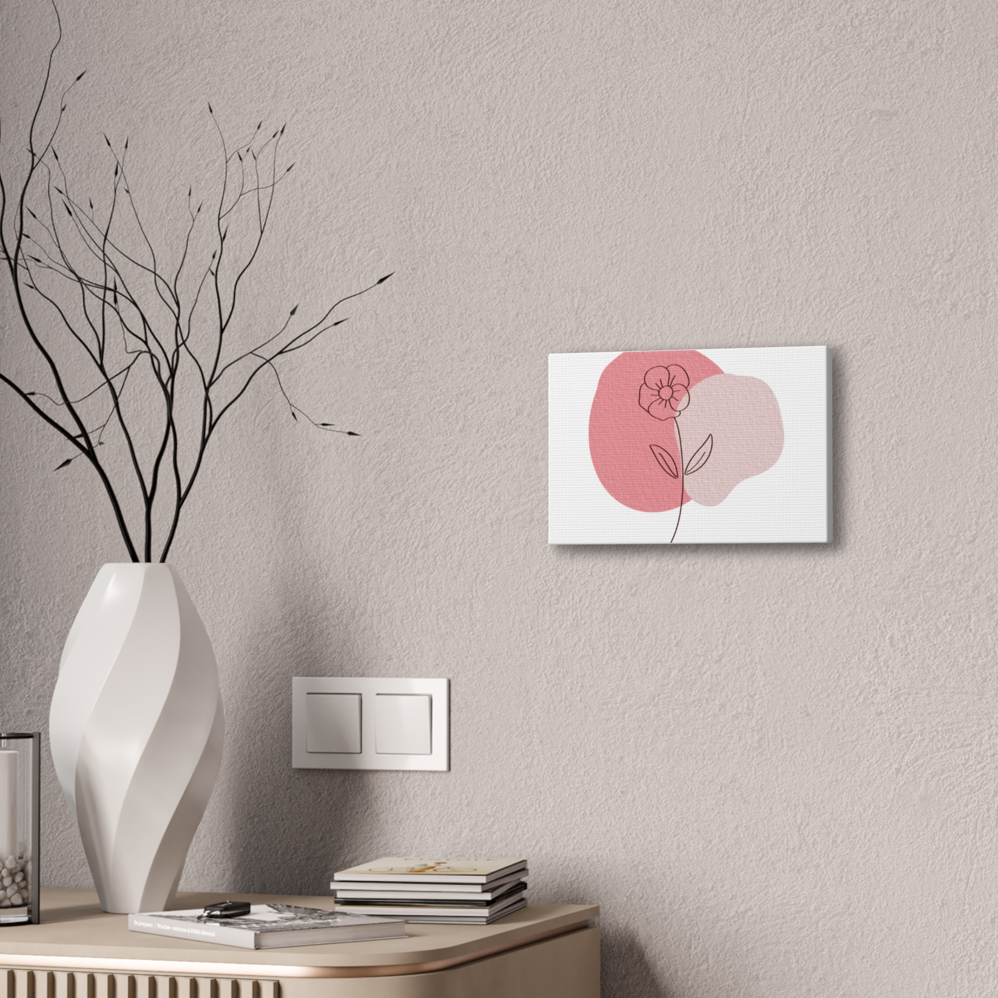 A soft, modern canvas print that brings quiet warmth to a living space. Hand-drawn floral linework sits against two muted blush shapes, printed on textured 100% polyester canvas and stretched over a 0.75″ pinewood frame. The subtle texture and vibrant, true-to-design color give the piece a handcrafted gallery feel — easy to hang and made to complement calm, contemporary interiors. It’s light enough to move between rooms, comes with mounting hardware and a small QR code on the back for care or provenance, and is available in multiple orientations and twenty sizes to suit shelves, entryways, bedrooms, or home offices.