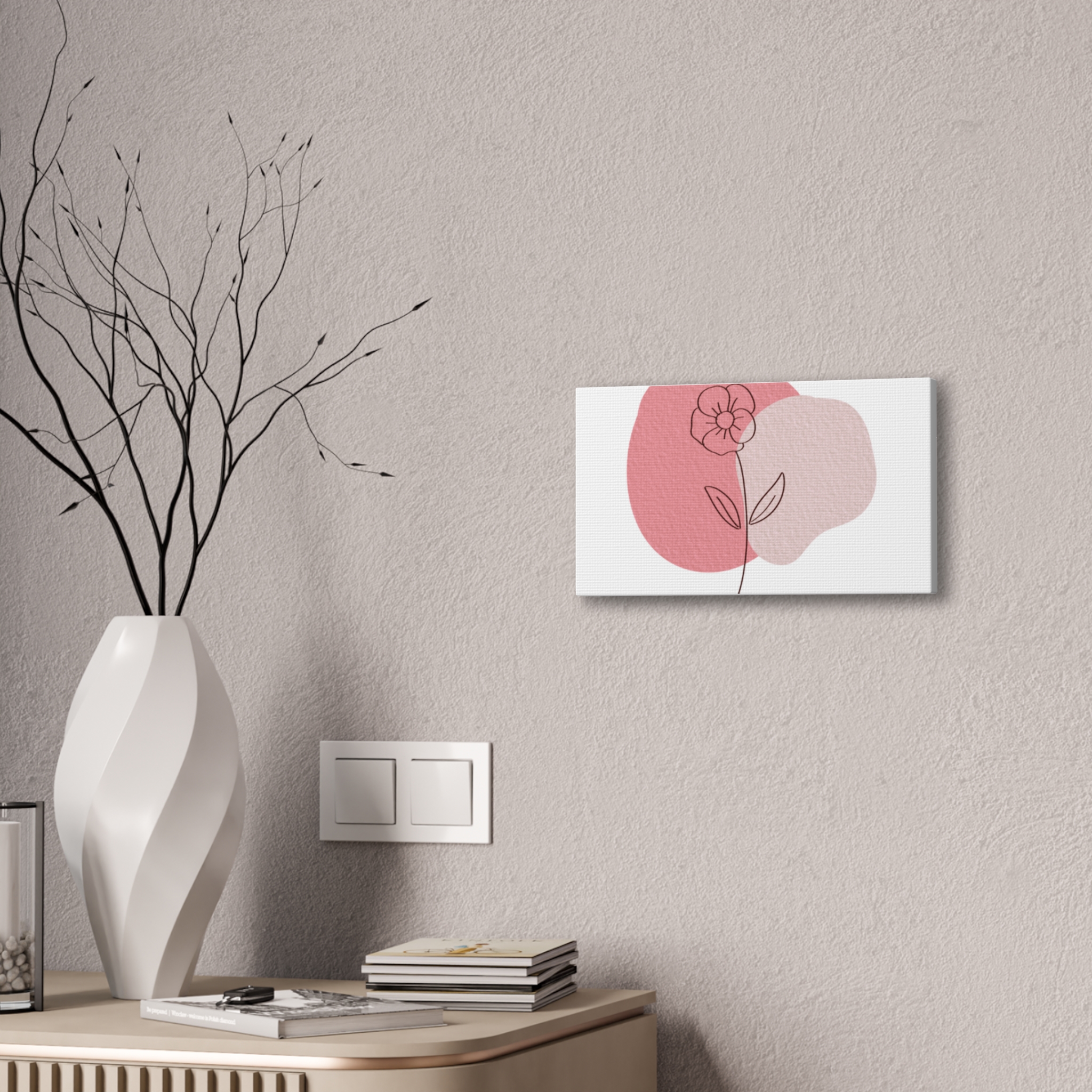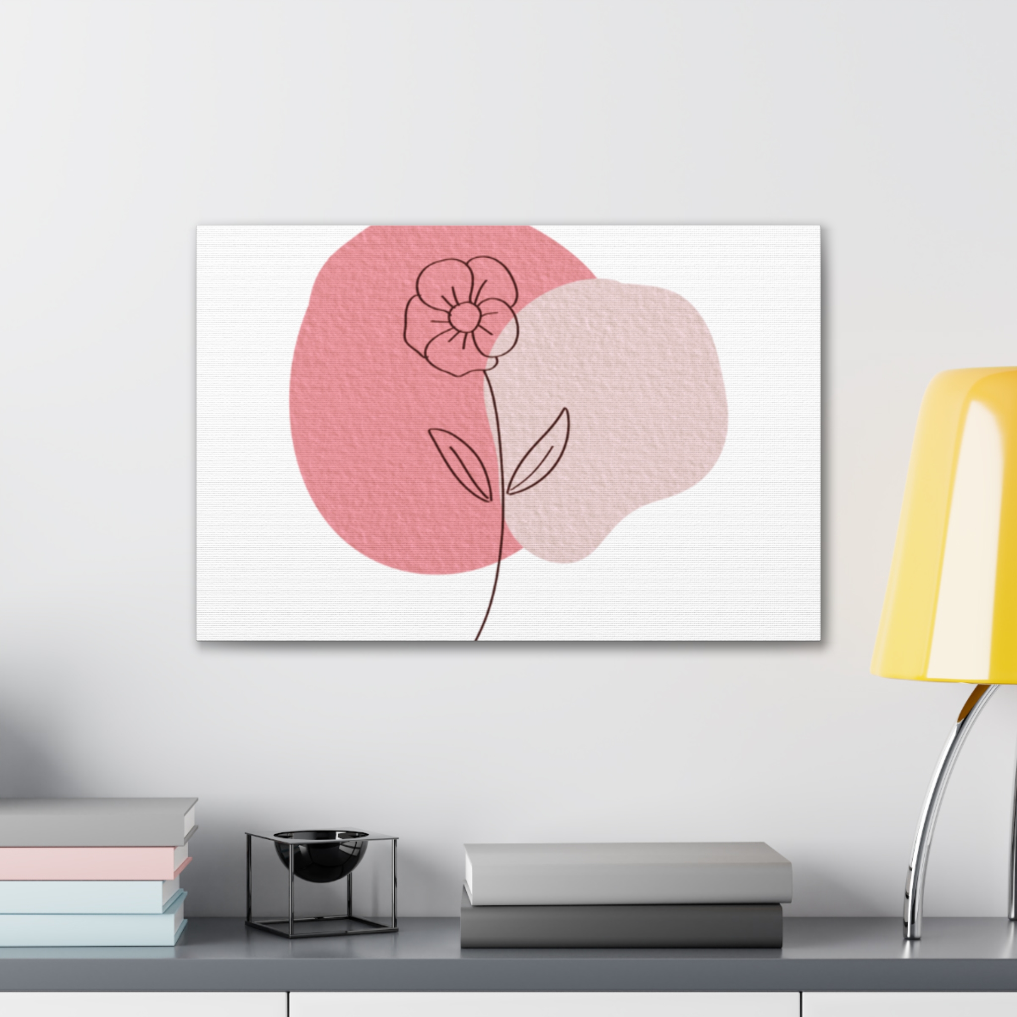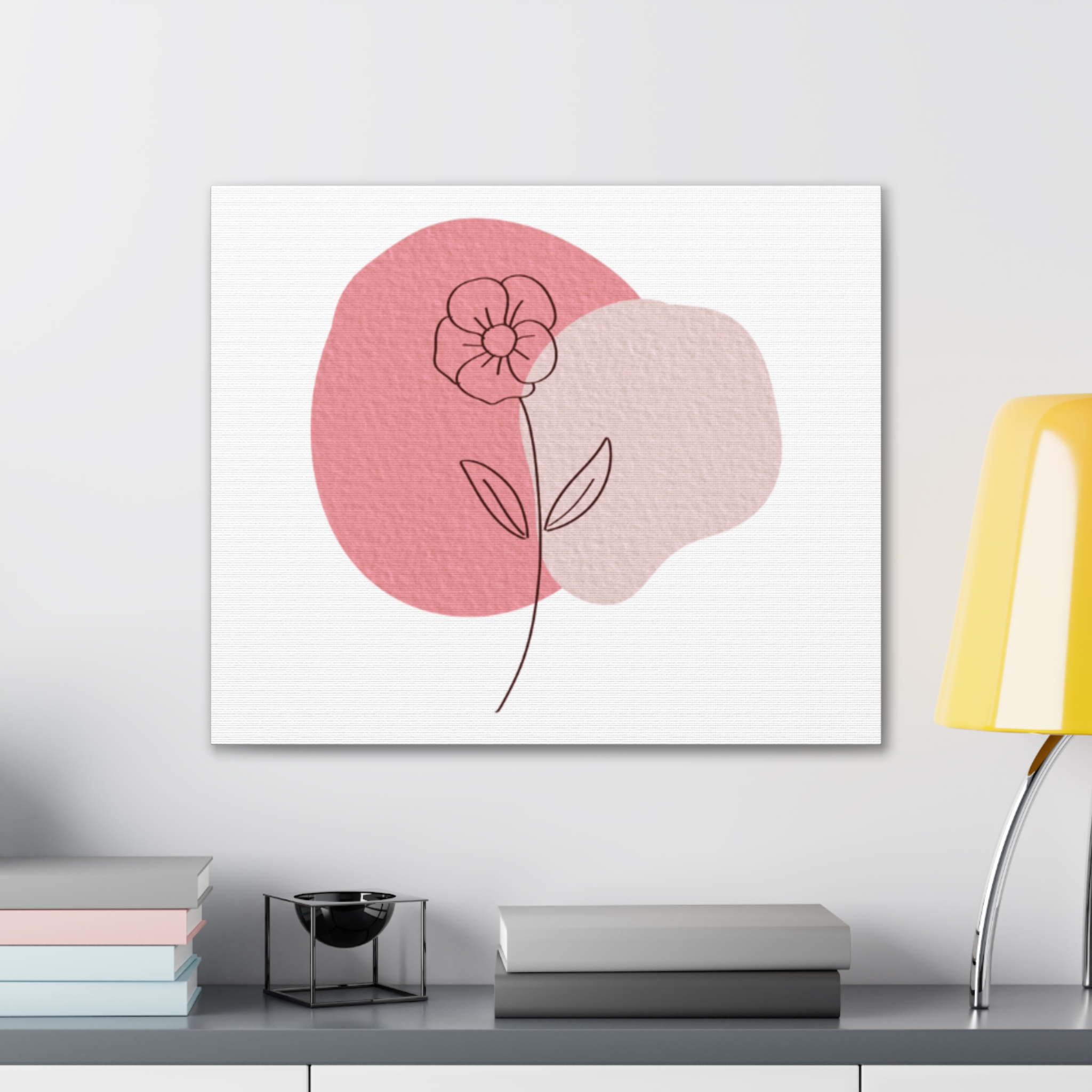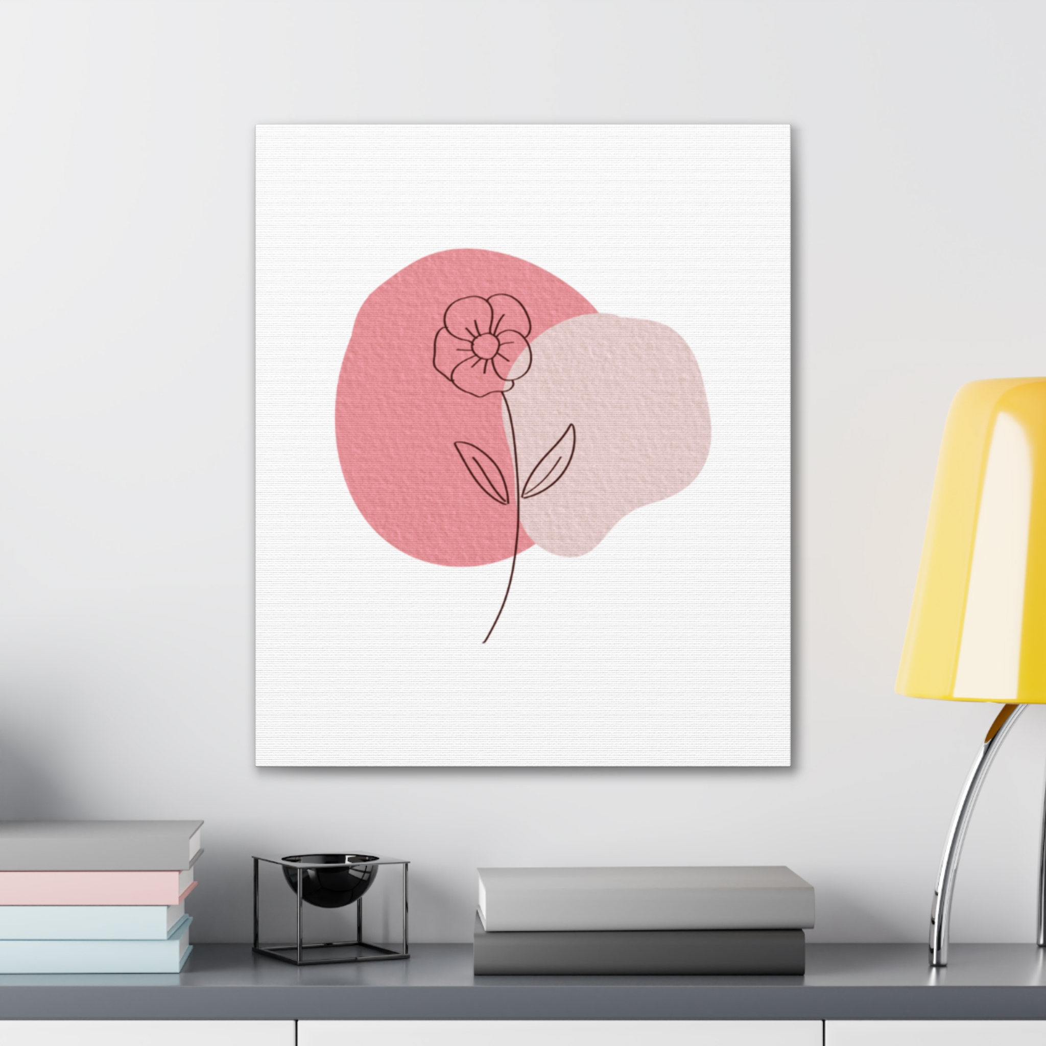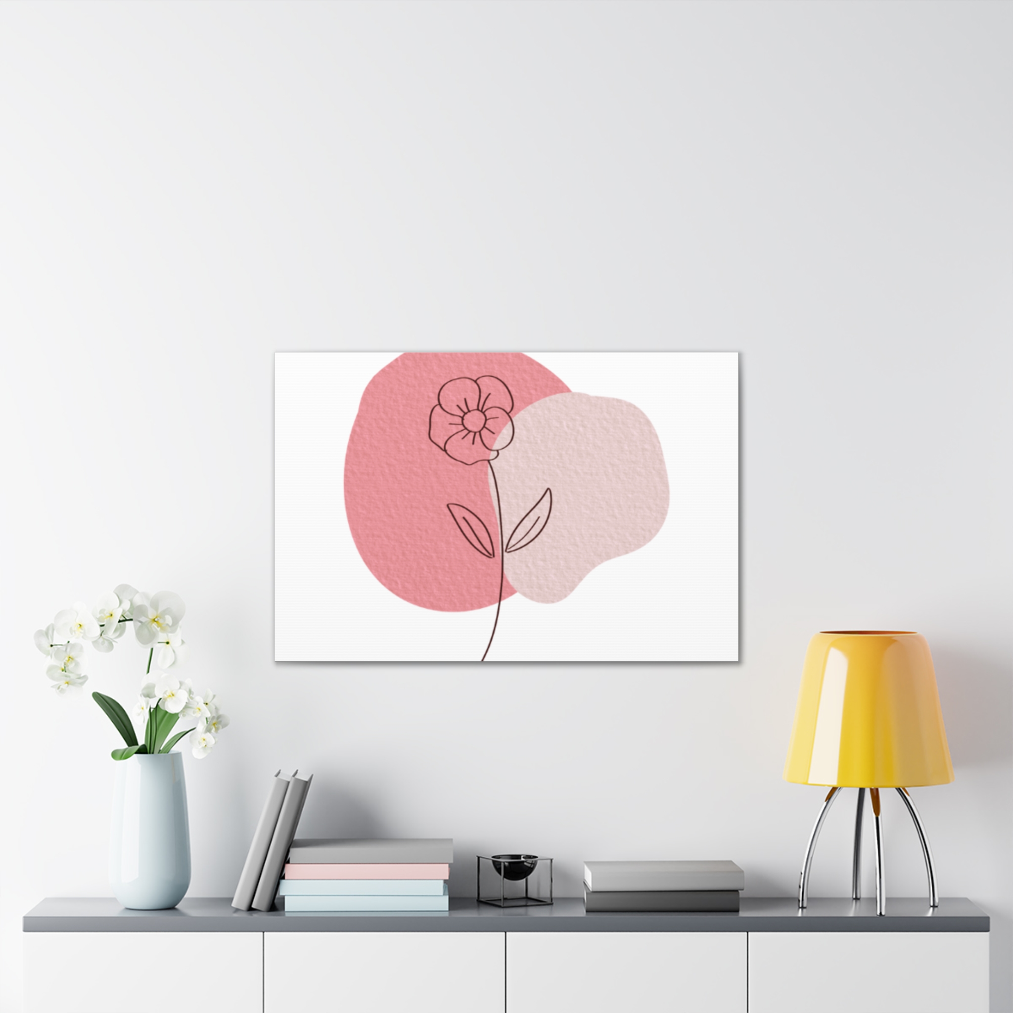 A soft, modern canvas print that brings quiet warmth to a living space. Hand-drawn floral linework sits against two muted blush shapes, printed on textured 100% polyester canvas and stretched over a 0.75″ pinewood frame. The subtle texture and vibrant, true-to-design color give the piece a handcrafted gallery feel — easy to hang and made to complement calm, contemporary interiors. It’s light enough to move between rooms, comes with mounting hardware and a small QR code on the back for care or provenance, and is available in multiple orientations and twenty sizes to suit shelves, entryways, bedrooms, or home offices.