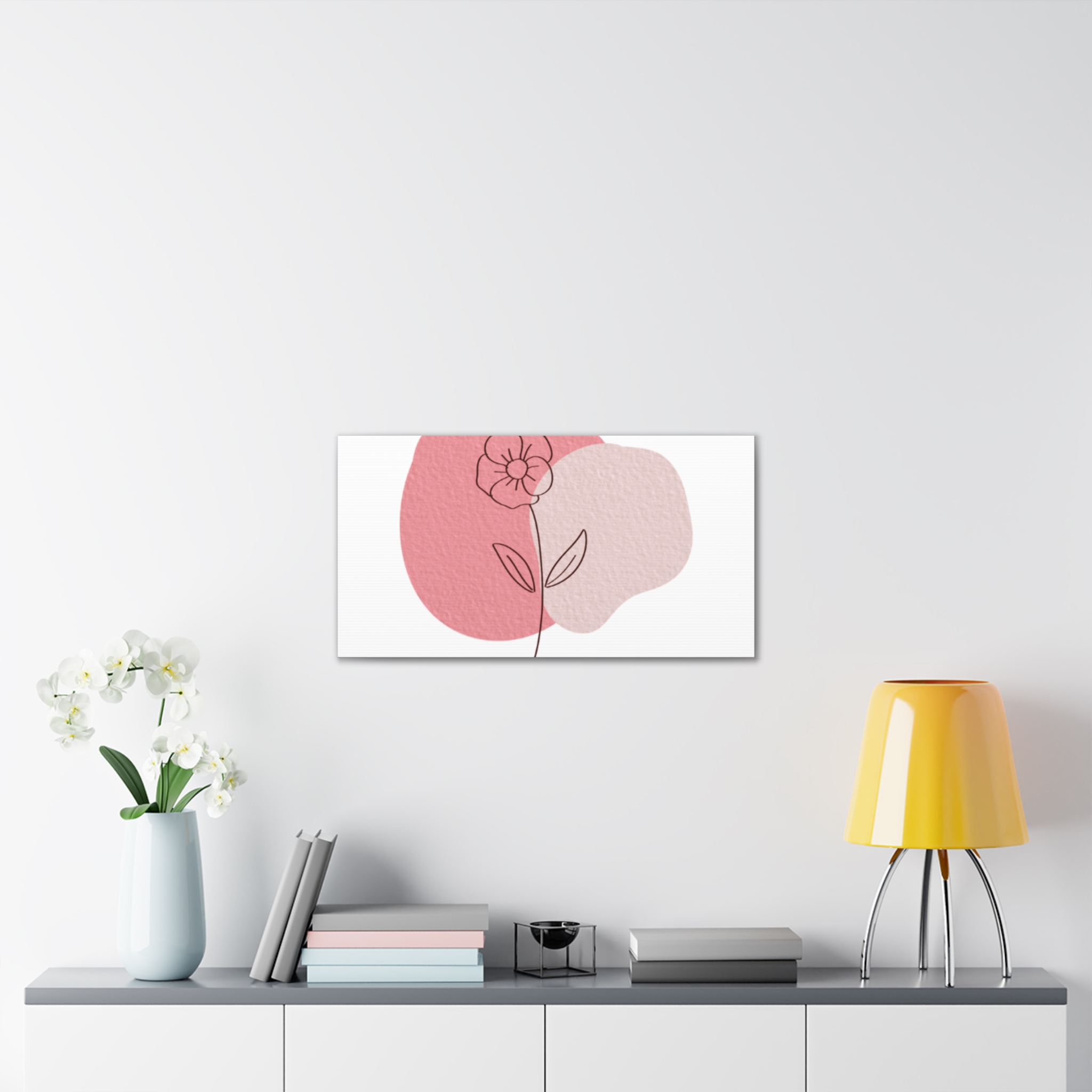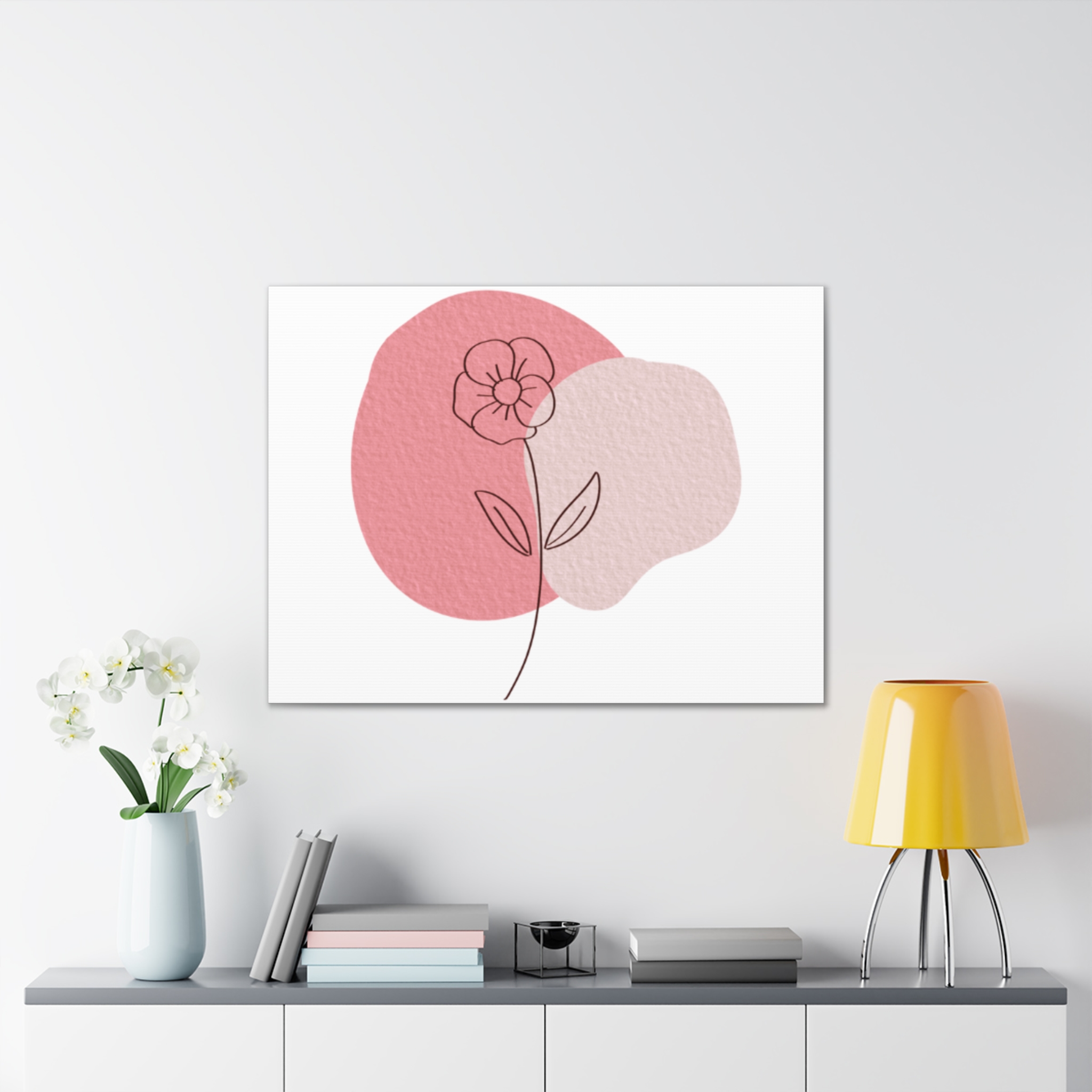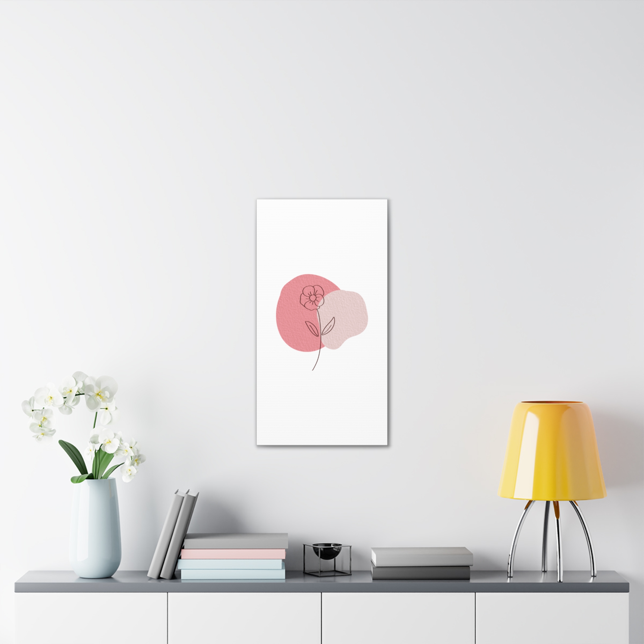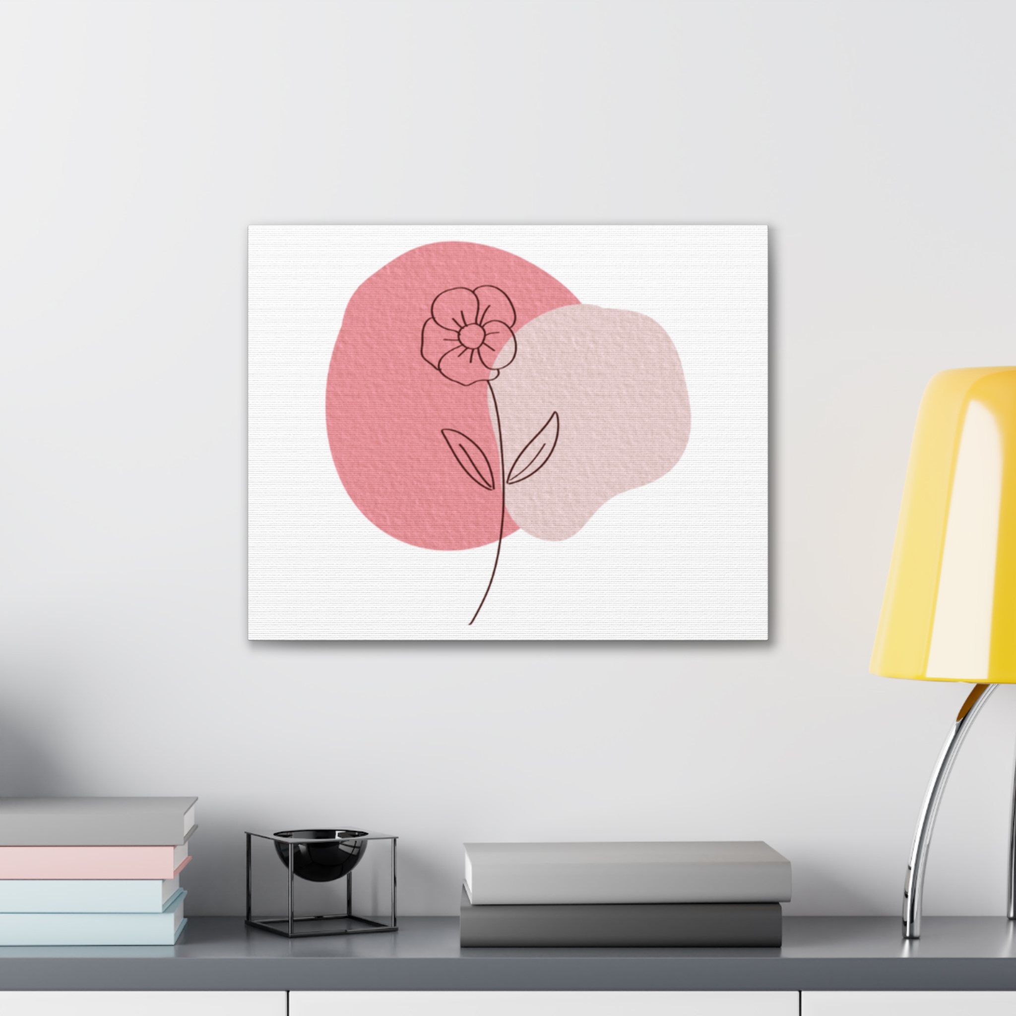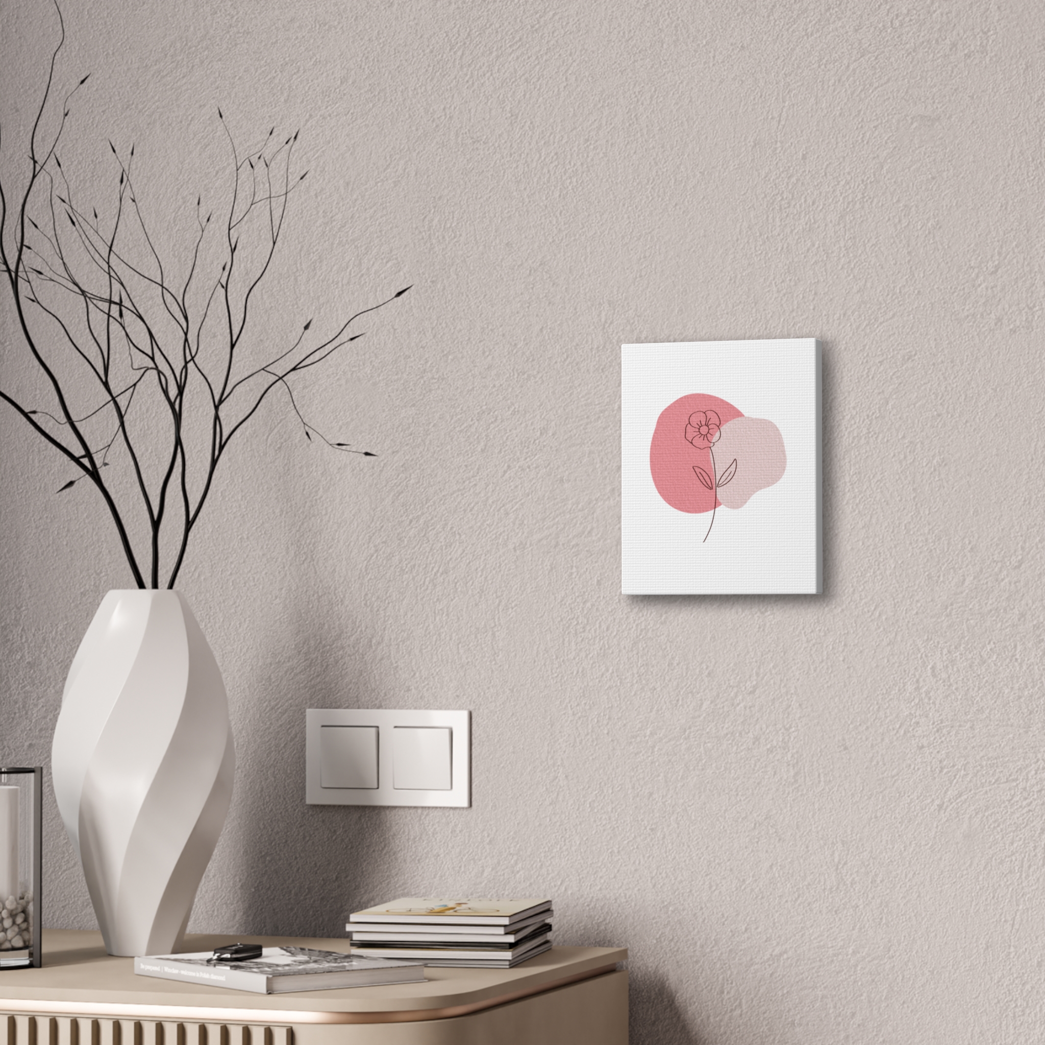 A soft, modern canvas print that brings quiet warmth to a living space. Hand-drawn floral linework sits against two muted blush shapes, printed on textured 100% polyester canvas and stretched over a 0.75″ pinewood frame. The subtle texture and vibrant, true-to-design color give the piece a handcrafted gallery feel — easy to hang and made to complement calm, contemporary interiors. It’s light enough to move between rooms, comes with mounting hardware and a small QR code on the back for care or provenance, and is available in multiple orientations and twenty sizes to suit shelves, entryways, bedrooms, or home offices.
