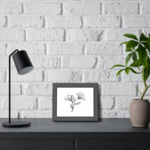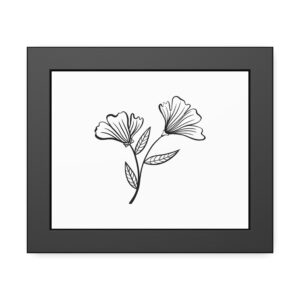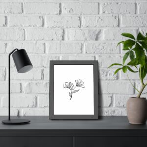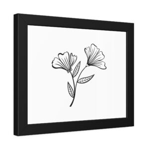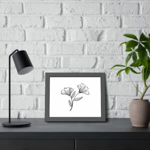 This framed paper poster brings quiet, botanical elegance to your walls. The simple black line-flower sits on a clean white field, letting negative space breathe and the artwork speak. Housed in a matte black pinewood frame with a warm brown paper backing and shatter-proof plexiglass, it reads modern and gently organic — an easy anchor for bedrooms, reading nooks, or gallery-style walls. Choose fine art paper for a textured, watercolor-like feel or semi-gloss for a crisp, bright photo finish. Each frame arrives ready to hang with pre-installed hardware and rubber bumpers that protect your paint and keep the piece perfectly level.