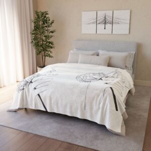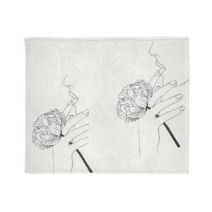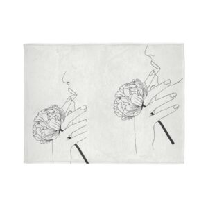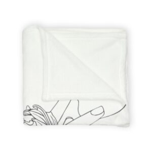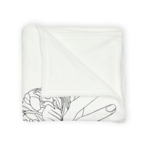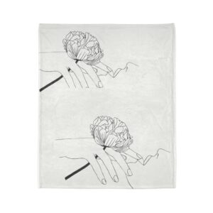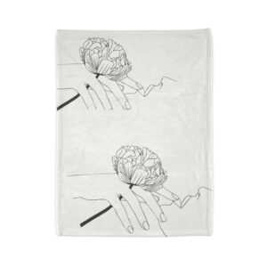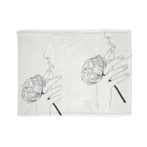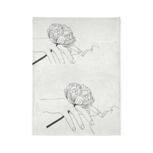 A soft, cozy fleece blanket that feels like a quiet afternoon wrapped in breath and bloom. Thin black lines draw a graceful hand holding a single peony, the simple illustration resting on a clean, airy background. Lightweight but plush, this blanket tucks easily over shoulders during late-night reading, unfolds across a studio couch for an impromptu nap, or layers over bedding when the window is open to cool air. It’s for people who love minimal, artful details and calm moments — those who treasure slow mornings, lingering conversations, and the small rituals that make home feel like a refuge.