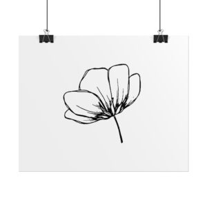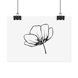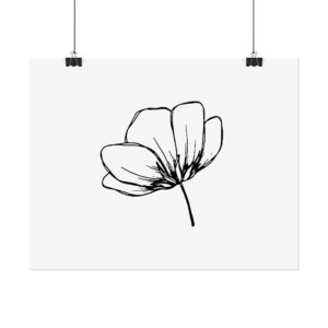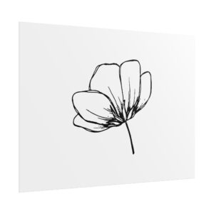 A simple, hand-drawn floral poster that brings quiet, natural beauty to a room. The single-line flower sits on a clean white background, offering a calm, airy presence that pairs easily with minimalist and Scandinavian interiors. Rolled for safe shipping, this art print arrives ready to frame or pin—an understated focal point for a bedroom, workspace, or cozy reading nook. The soft texture and archival options mean the delicate linework keeps its character over time, while the matte and semi-gloss alternatives let you choose how the piece interacts with light.