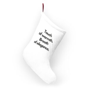 Soft, plush fleece Christmas stocking designed to bring a calm, elegant moment to holiday mornings. The roomy shape holds treats, small gifts, and handwritten notes while the dense polyester fleece keeps everything cozy to the touch. A deep red twill hanging loop adds a classic pop of color against the clean white body. Simple, modern typography on the front reads like a quiet holiday whisper — a subtle statement that complements minimalist or Scandinavian-inspired décor. Lightweight and quick-drying, this stocking stays fluffy year after year and hangs neatly on mantels, stair rails, or hooks.