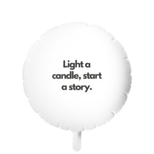 A simple, elegant mylar balloon that speaks softly and warmly. Printed in crisp, high-resolution type on a white-and-silver coated surface, the message “Light a candle, start a story.” invites quiet ritual and intimate gatherings. Float it over a candlelit table, tie it to a hostess’ chair, or let it bob beside a favorite reading nook. The waterproof inks and durable mylar mean the design stays vibrant whether the party is indoors or on a drizzly evening. Because it’s helium-ready and fully reusable, this balloon can be filled, deflated, and brought back for another small celebration — a little beacon for moments when you want to slow down and create atmosphere.