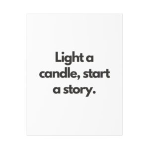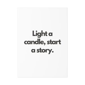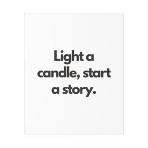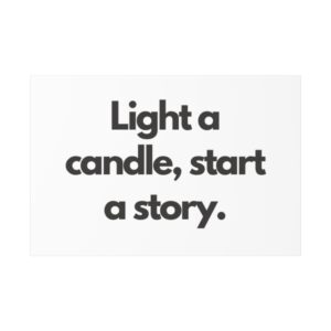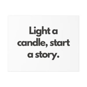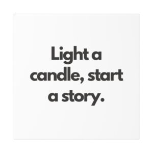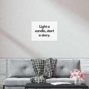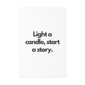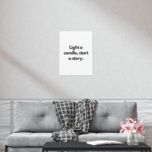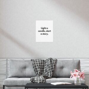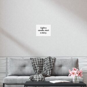 A clean, uncoated poster that brings a quiet, literary calm to a room. The bold, minimalist type on matte white paper reads like a personal prompt: light a candle, start a story. Hung above a reading nook, sofa, or bedside table, it invites slow evenings, pages turned by soft lamplight, and moments of deliberate stillness. The uncoated surface gives the print a tactile, paper-like feel that complements neutral, Scandinavian, or cozy cottage interiors. Choose a horizontal, vertical, or square orientation to fit your wall — the simple design scales beautifully across sizes and layouts.