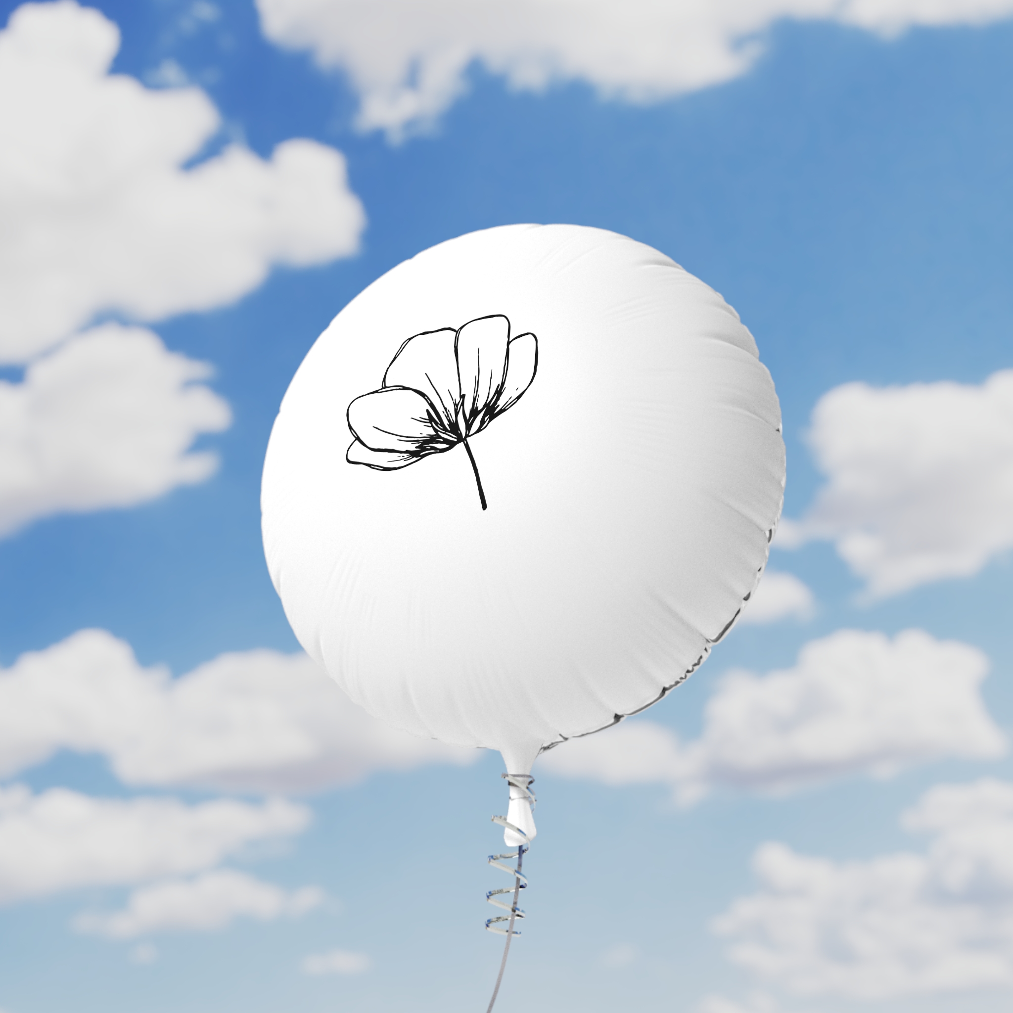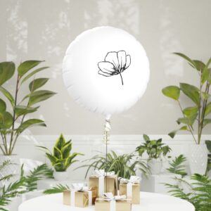 A delicate mylar balloon with a single-line floral sketch — quiet, elegant, and ready to float into any celebration. The simple black blossom on a white-silver coated surface reads as modern stationery brought to life. Inflate with helium and let it hover above a gift table, or attach to a bouquet of blooms for a refined, airy accent. It holds up outdoors thanks to waterproof inks and a high-resolution coating that keeps the linework crisp. When the party ends, deflate gently and store it for the next moment you want a subtle, sophisticated touch.