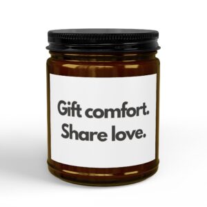 Warm light, quiet corners, and a slow inhale of something familiar. These hand-poured soy candles bring home a calm—whether it’s the soft sugar-and-spice warmth of Comfort Spice, the bright pop of Pink Grapefruit, or the clean forest hush of Fresh Balsam. Each jar is made from 100% natural soy wax and finished with a cotton wick, amber or clear glass, and a matte black lid. The label’s simple message — Gift comfort. Share love. — fits into everyday rituals: lighting one while journaling, setting a mellow atmosphere for a small dinner, or packing a tiny, thoughtful present for a friend recovering at home. Burn times are long enough to carry a season: about 50–60 hours from the 9oz, or 25–30 hours from the 4oz. These candles are non-toxic and reusable; when the wax is gone, the glass becomes a vase, storage jar, or desktop catchall. Choose your scent, choose your vessel, and let a familiar fragrance gently shape the room.