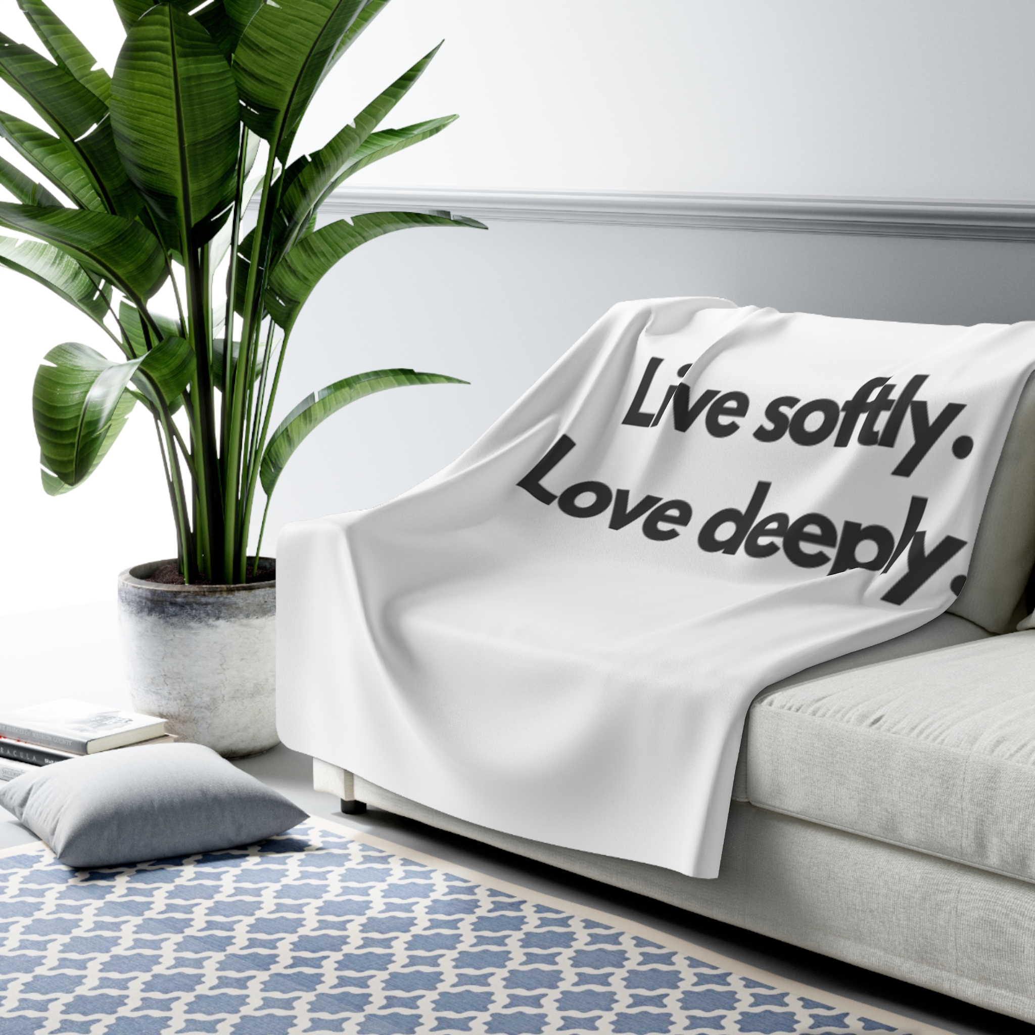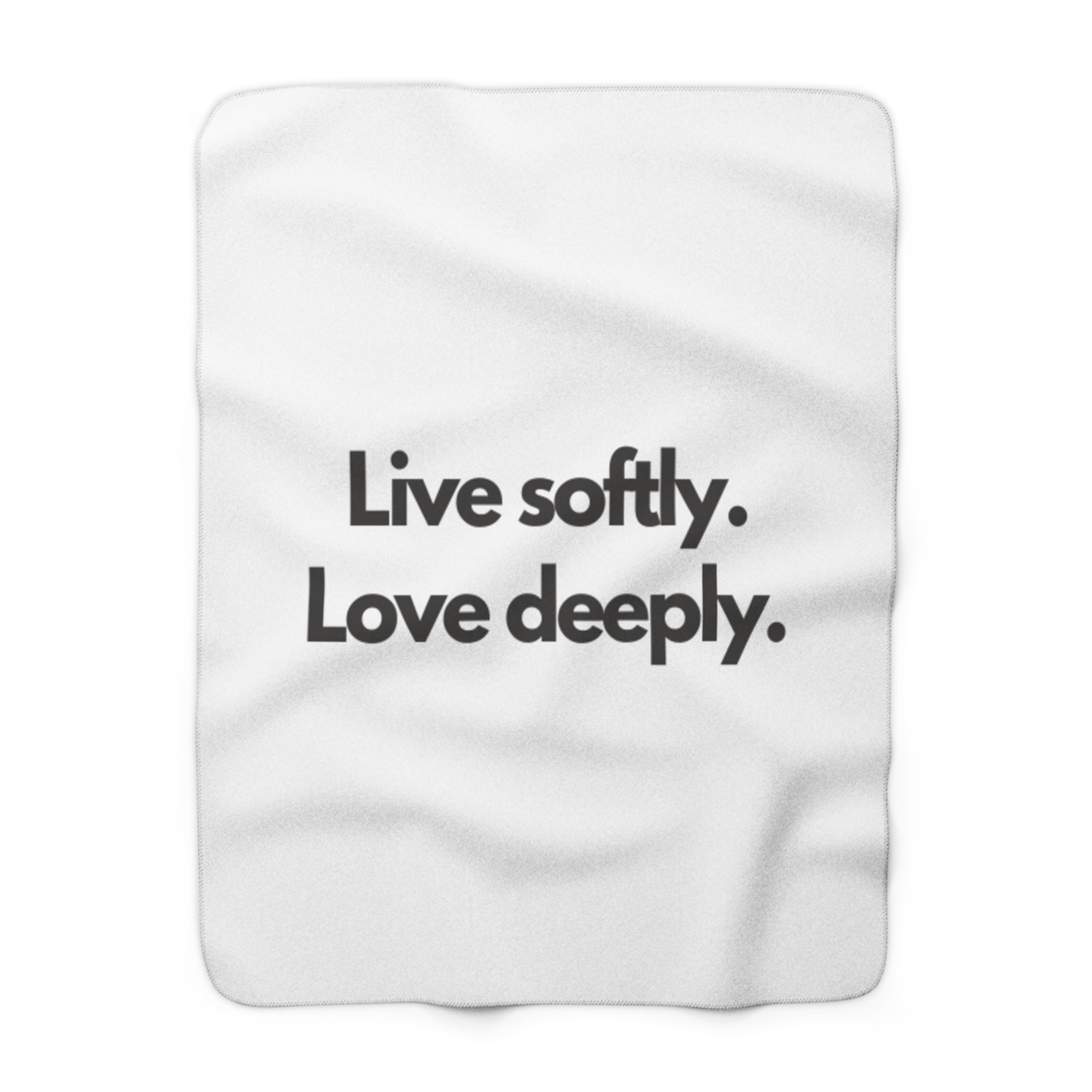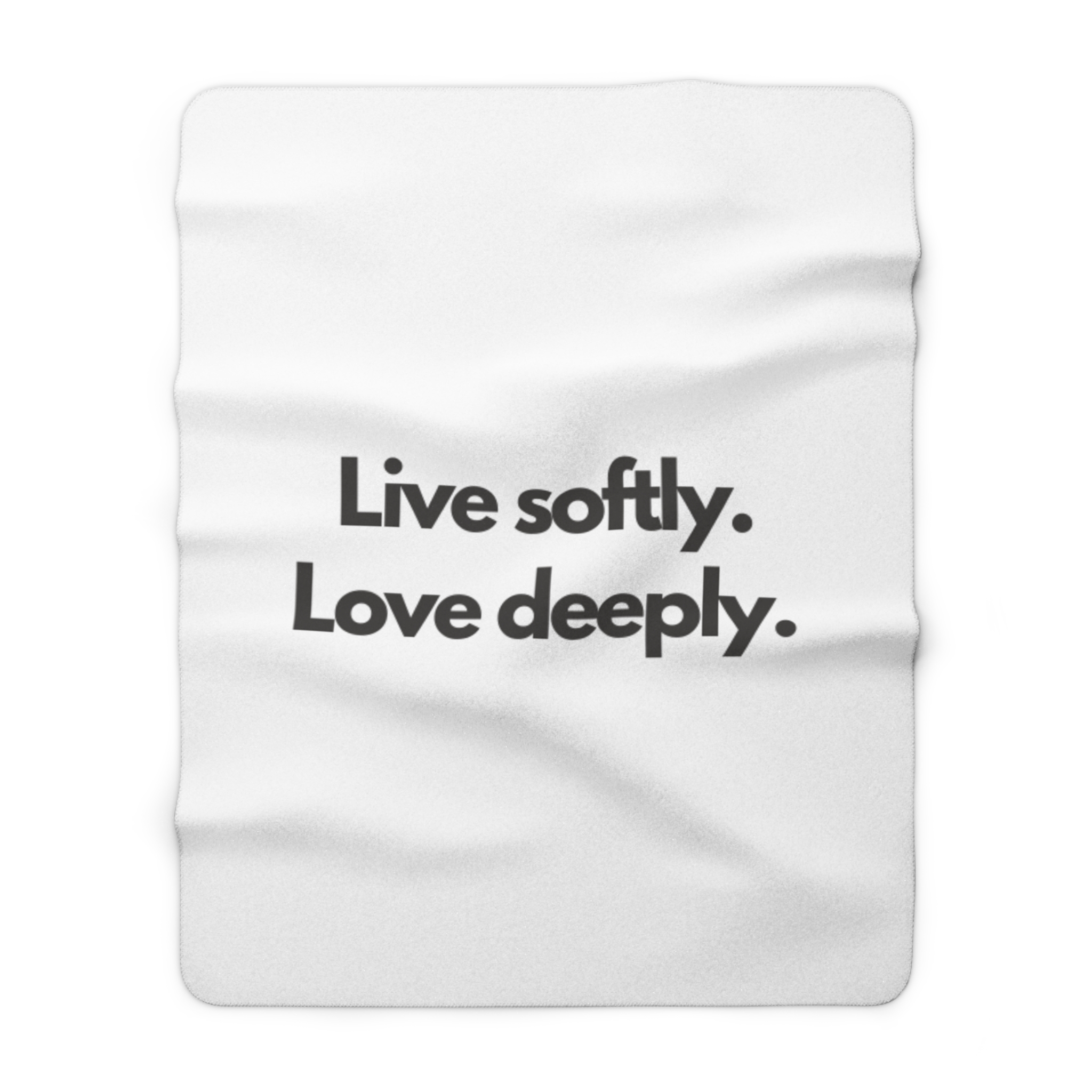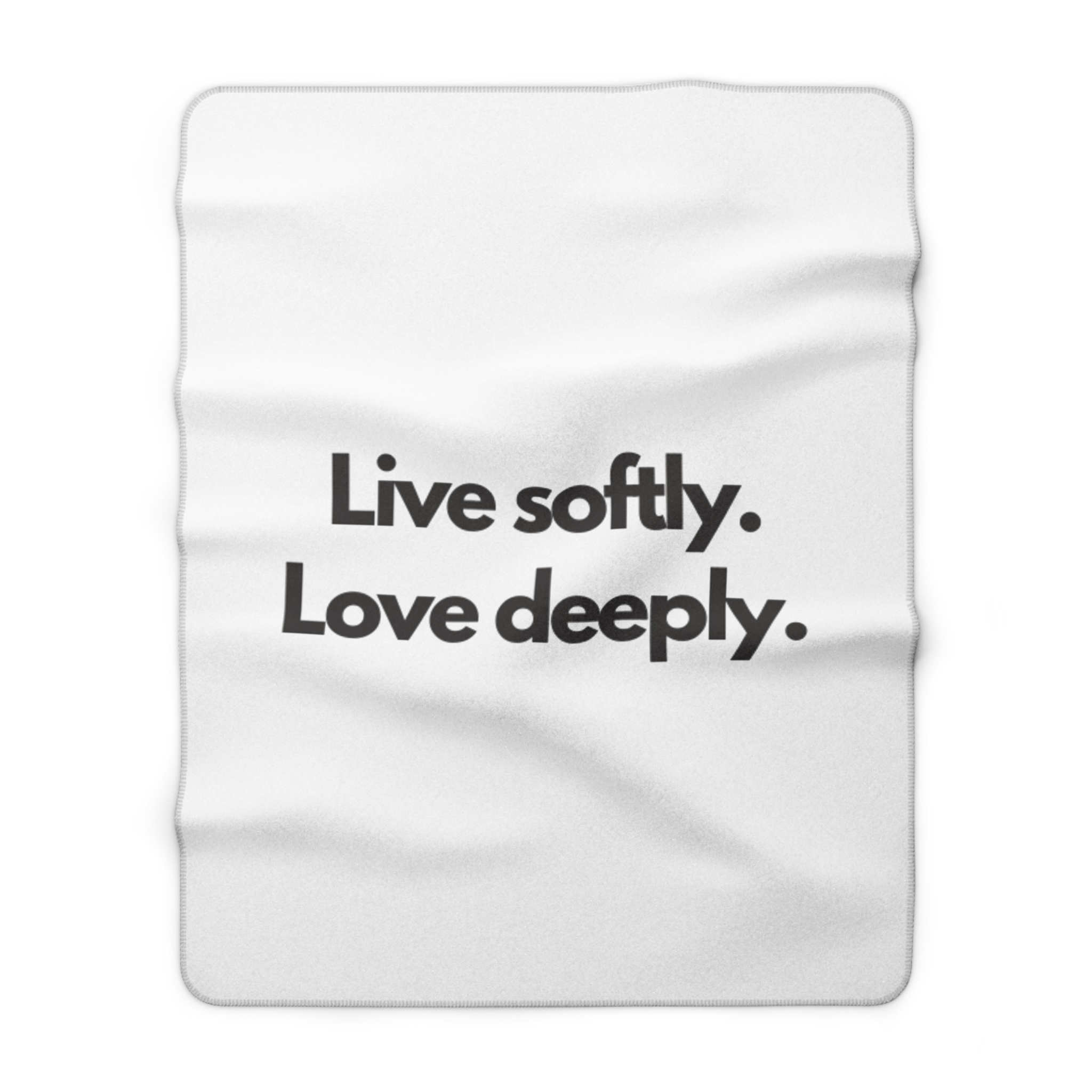 Whisper-soft and quietly confident, this sherpa fleece blanket wraps you in a gentle hush. The matte white face carries a minimalist message—”Live softly. Love deeply.”—in clean, bold type that reads like a private reminder. Turn it over and sink into a plush, velvety sherpa pile that holds warmth without weight. It’s the kind of blanket you reach for on slow mornings with tea, during late-night reading sessions, or to layer at the foot of a bed when the air turns sharp. For someone who values calm, intention, and tactile comfort, this blanket becomes part of the daily ritual—an invitation to slow down and practice tenderness.