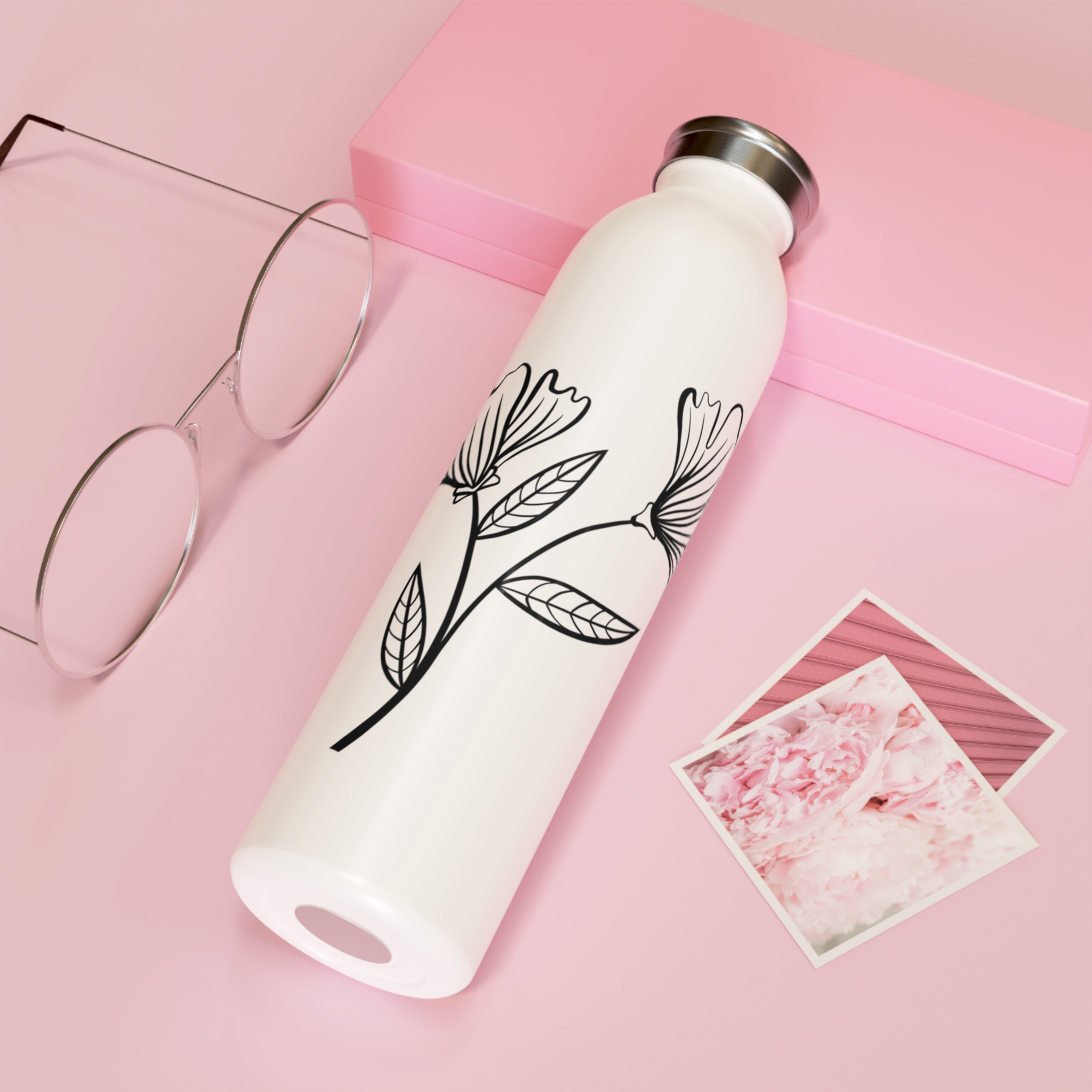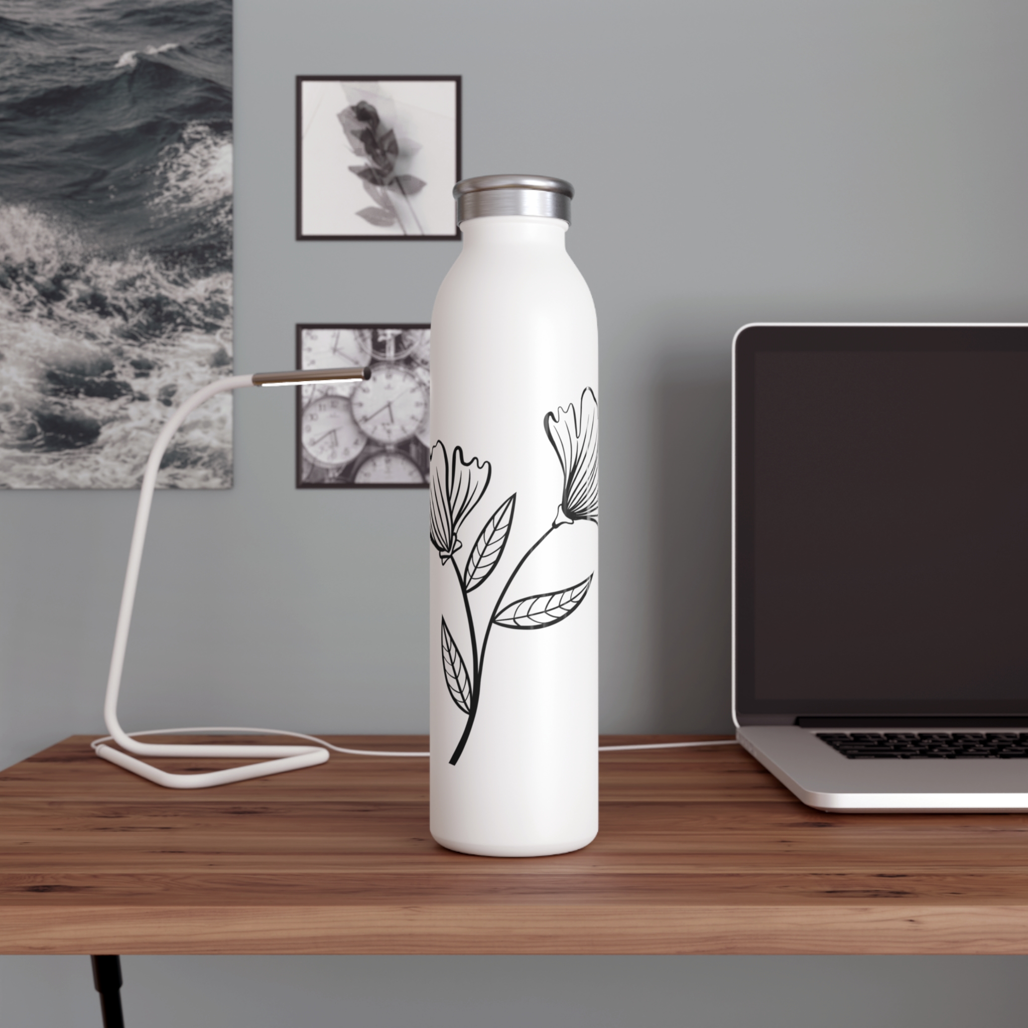 Slim Water Bottle — Minimal Black Floral Stainless Steel Bottle