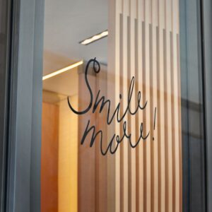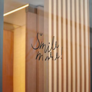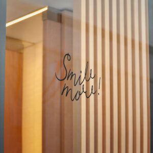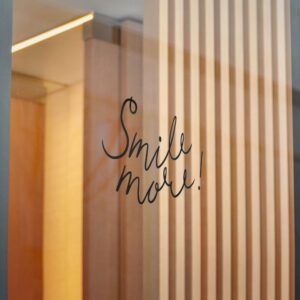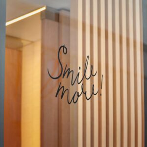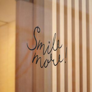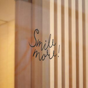 These die-cut DTF stickers carry a simple, hand-lettered “Smile more!” message on clear transparent film — subtle, resilient, and built to last. The matte UV laminate keeps the ink safe from sunlight and weather while the water-resistant vinyl and strong permanent adhesive hold fast to smooth, non-porous surfaces like glass, metal, or finished plastic. Lightweight and understated, they add a little human encouragement to mirrors, windows, laptops, or phone cases. Choose from multiple sizes and convenient bundle counts so you can place one where you need a small nudge or share them around as thoughtful, everyday reminders.