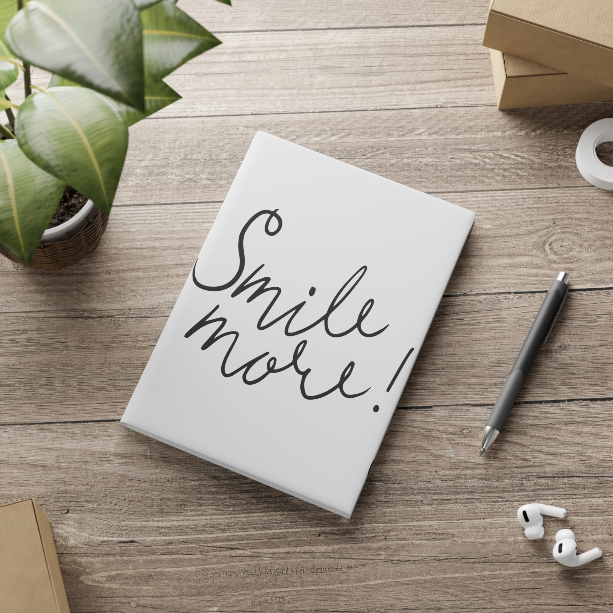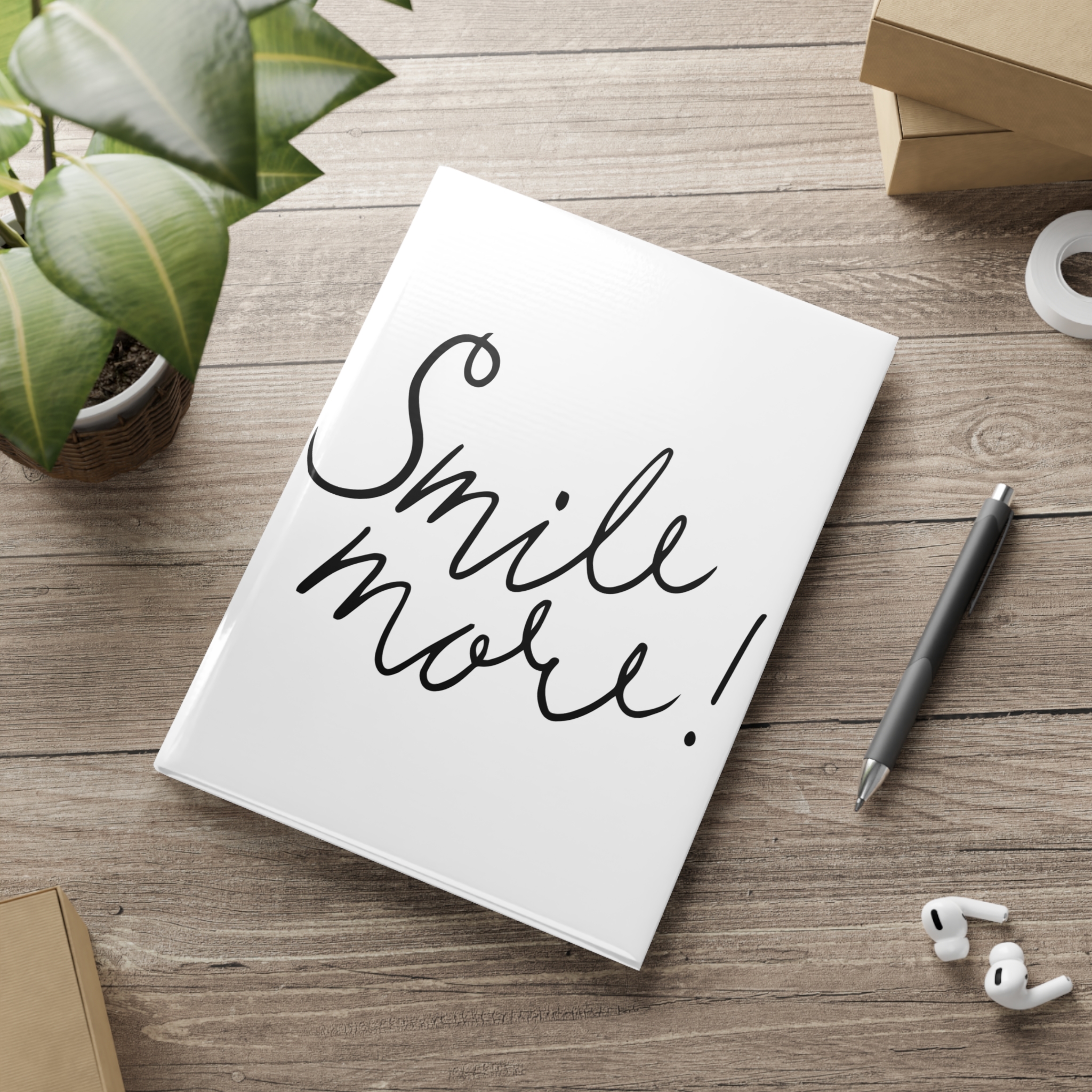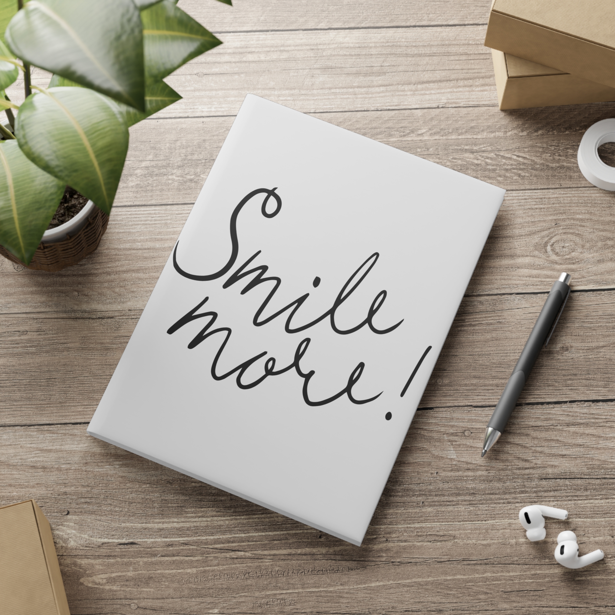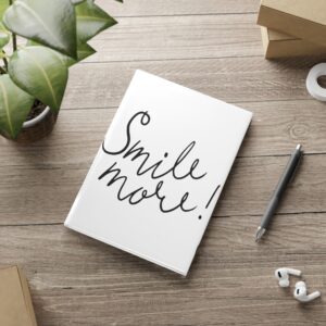 A soft, puffy-cover notebook that feels friendly the moment you pick it up. The clean white cover art—handwritten “Smile more!” on the front and three sketched hearts on the back—creates a gentle, uplifting space for thoughts, lists, sketches, or daily pages. The glossy or matte puffy cover cushions the hand and resists wear while casewrap binding keeps the spine neat and the book easy to open. Inside, 128 pages (64 sheets) of 80 gsm paper give a smooth, dependable surface whether you choose blank, dotted, or ruled layouts. Available in A5, B5, and A4 so you can carry it everywhere from coffee shop tables to work desks. This notebook belongs on the bedside stack, in a tote with pens, or on the kitchen counter where little notes and bigger dreams meet.