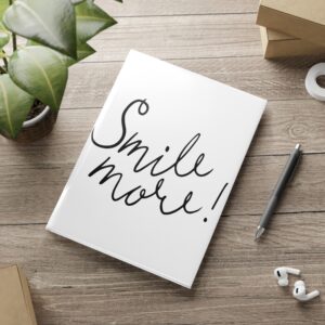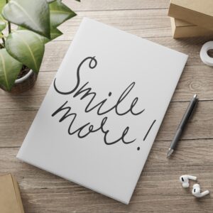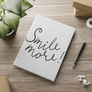 Smile More! Hardcover Notebook — Puffy Cover Journal with Handwritten Script & Heart Doodles