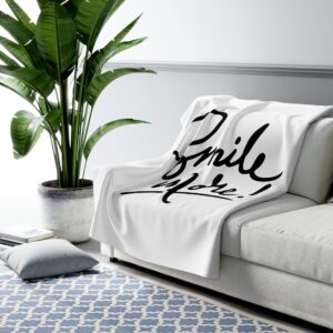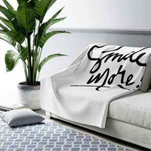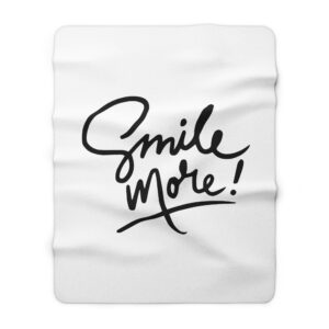 Wrap yourself in a quiet, uplifting moment with this sherpa fleece blanket. The clean white face features a bold, hand-lettered “Smile More!” that reads like a friendly note left by someone who cares. Flip it over to find a cloud-soft sherpa underside that invites you to sink in—warmth without weight. Use it on chilly mornings while brewing coffee, on the couch during a slow movie night, or tucked around shoulders after a long day outside. It lives in simple, everyday rituals and brings a gentle reminder to breathe and laugh.