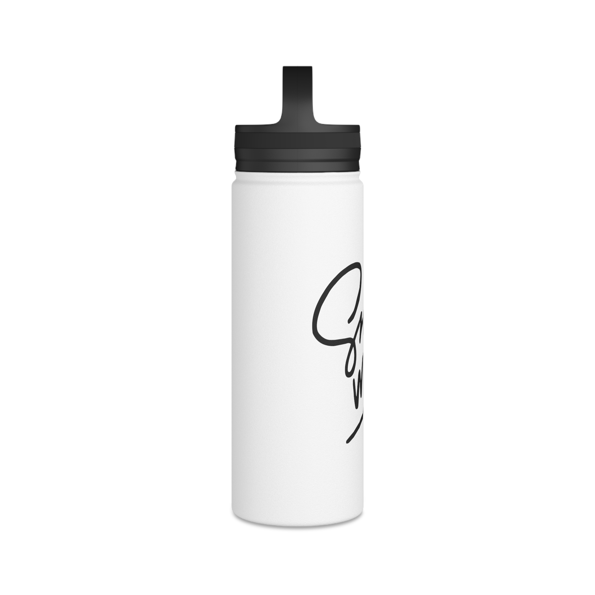 A sleek stainless steel bottle with a comfortable handle lid and a matte, full-color face that carries bold, hand-lettered art. Its double-wall insulation keeps cold drinks chilled for up to 24 hours and warm beverages cozy for up to 12. Lightweight but durable, this bottle slips into a bag or hooks on a strap for daily commutes, studio sessions, or long walks. The vibrant print resists fading, while the BPA-free construction and twist-on lid make it safe and simple to use. Available in three sizes to match your routines — from quick outings to all-day adventures.