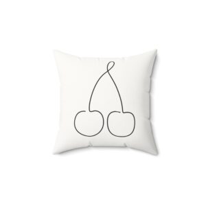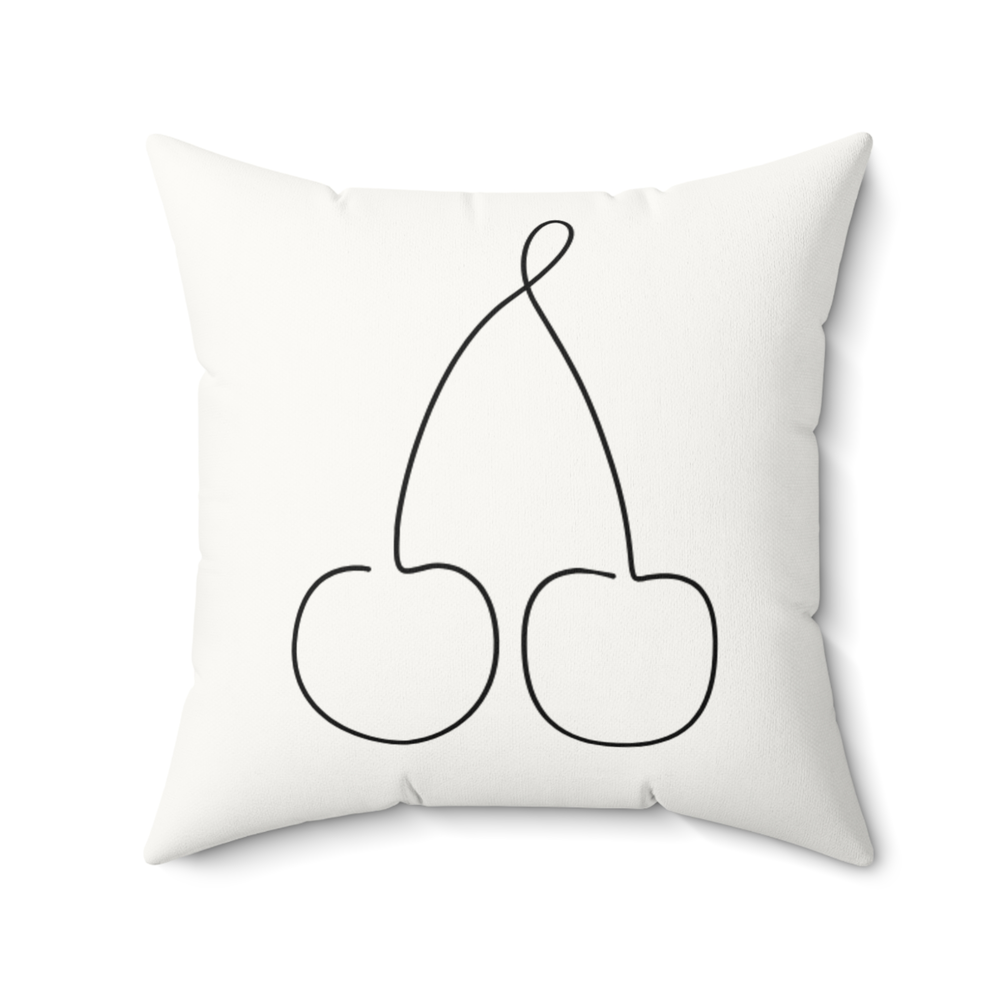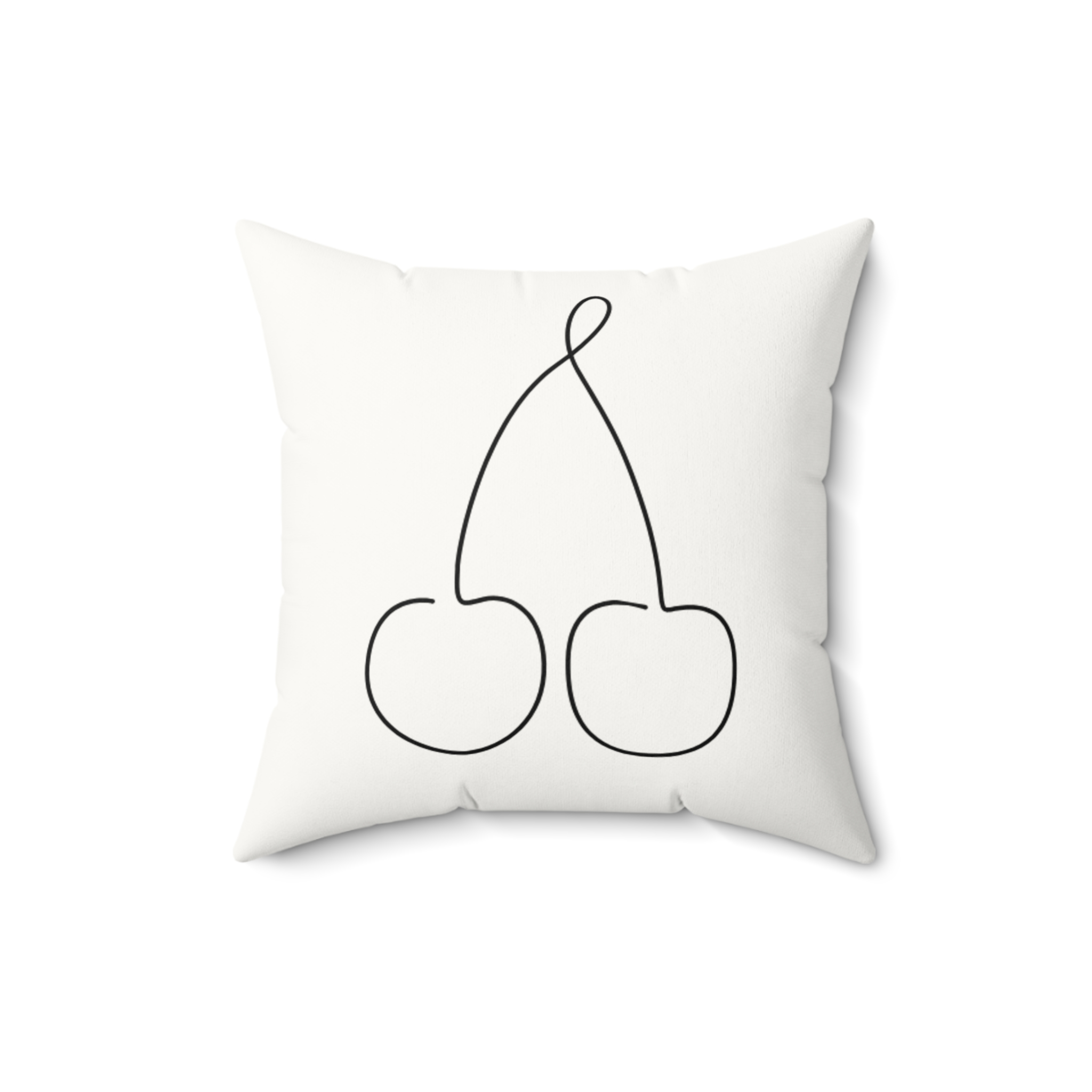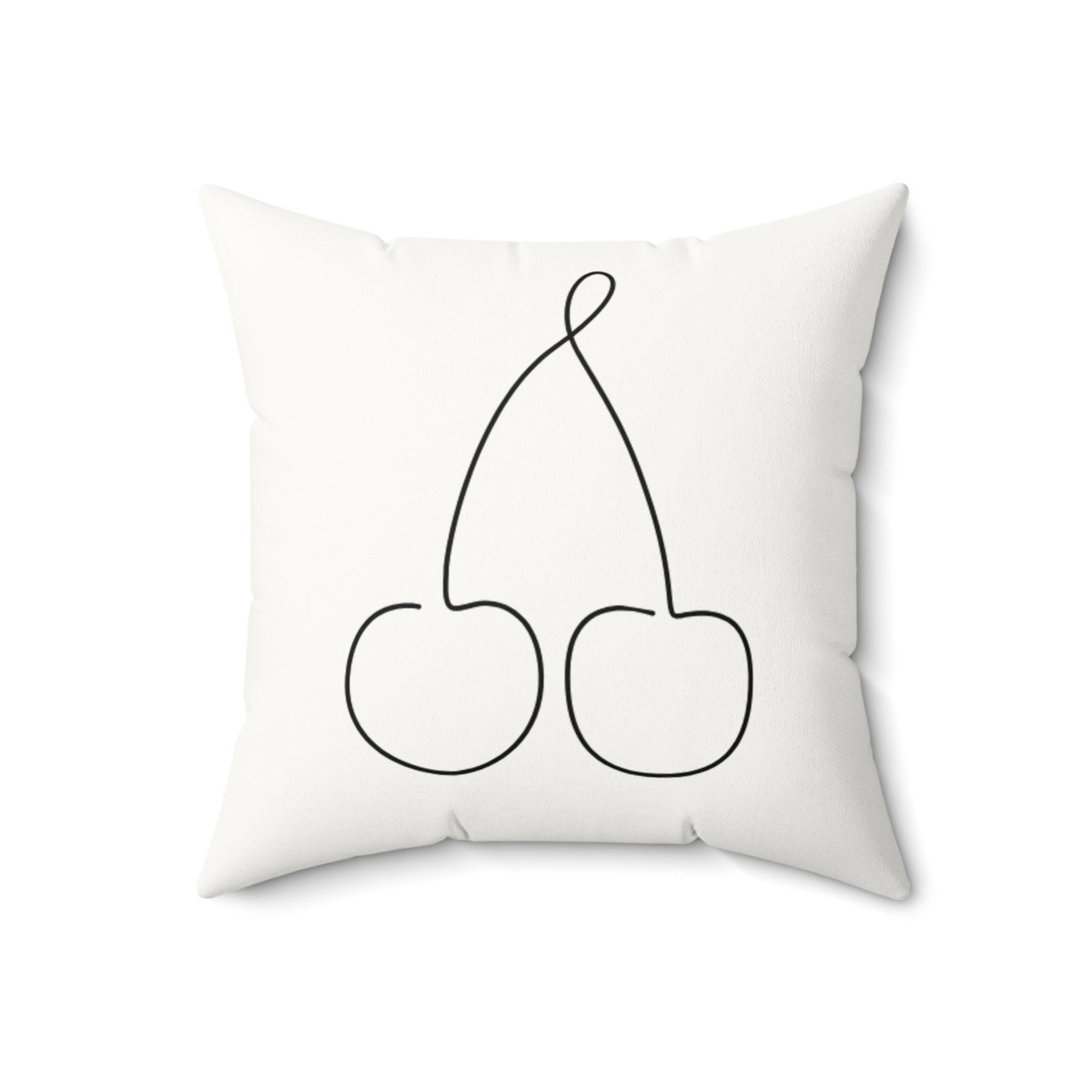 Square Pillow — Minimal ‘Live softly. Love deeply.’ & Line Art Cherries Decorative Throw Pillow