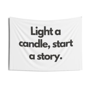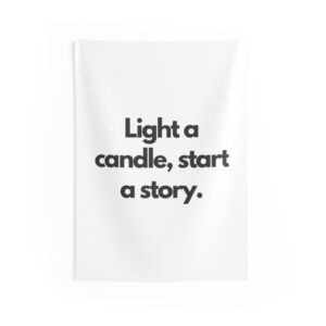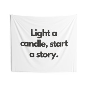 A quiet invitation for cozy nights and mindful corners. This lightweight indoor wall tapestry features the simple, bold phrase “Light a candle, start a story.” printed on a soft white polyester ground. It hangs smooth and unfussy — a gentle prompt to slow down, light something warm, and open a book or conversation. Draped above a reading nook, taped to a dorm wall, or layered over a sofa, the tapestry brings a calm, modern touch and a little ritual to everyday spaces. The clean typography and neutral palette let it blend with vintage finds, Scandinavian minimalism, or boho layers, while the durable, hemmed edges keep the piece looking tidy for years.