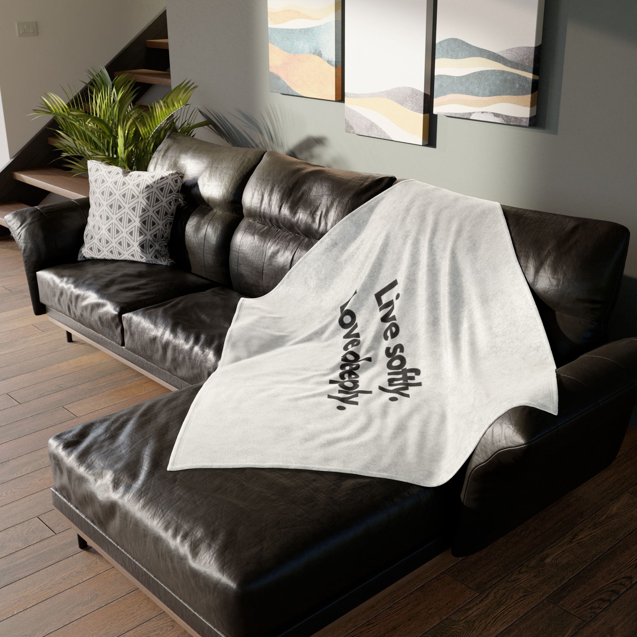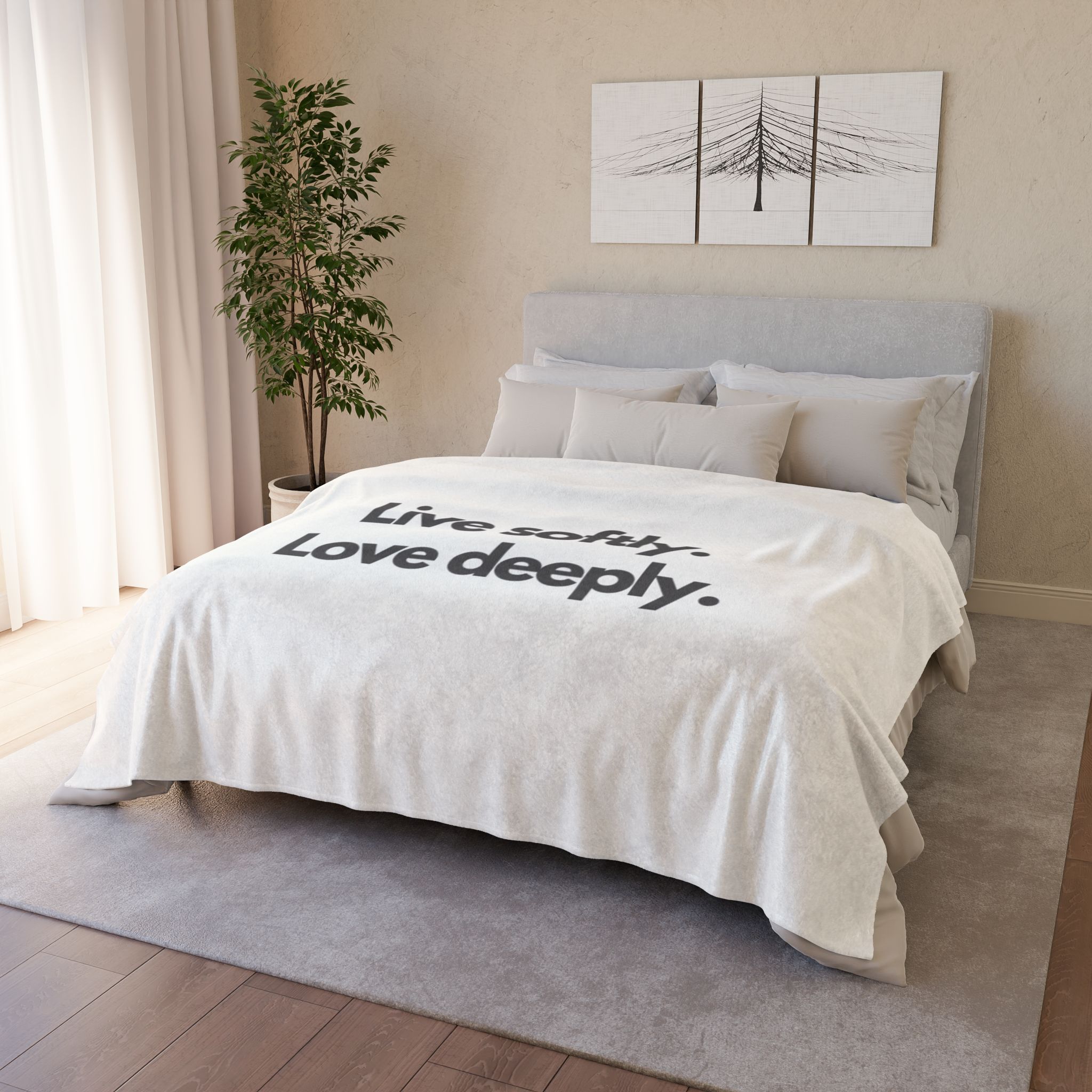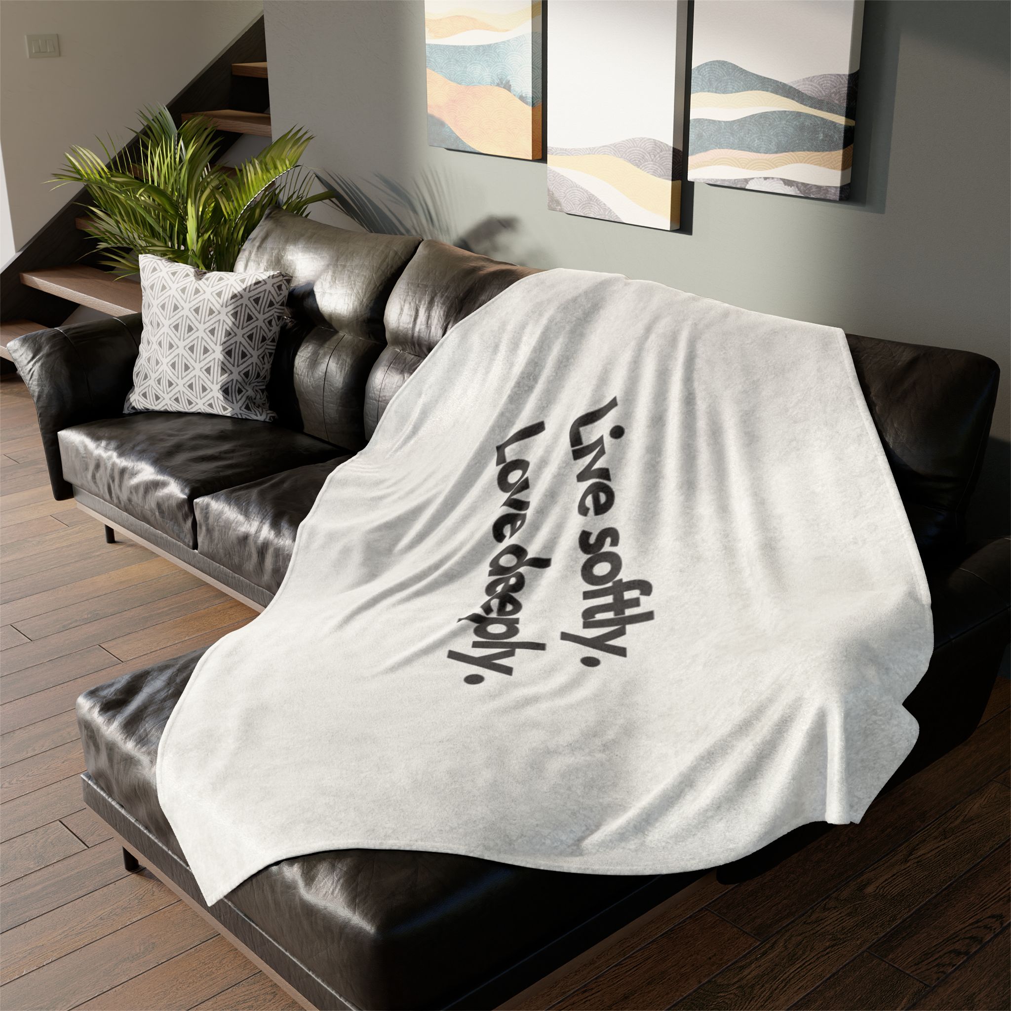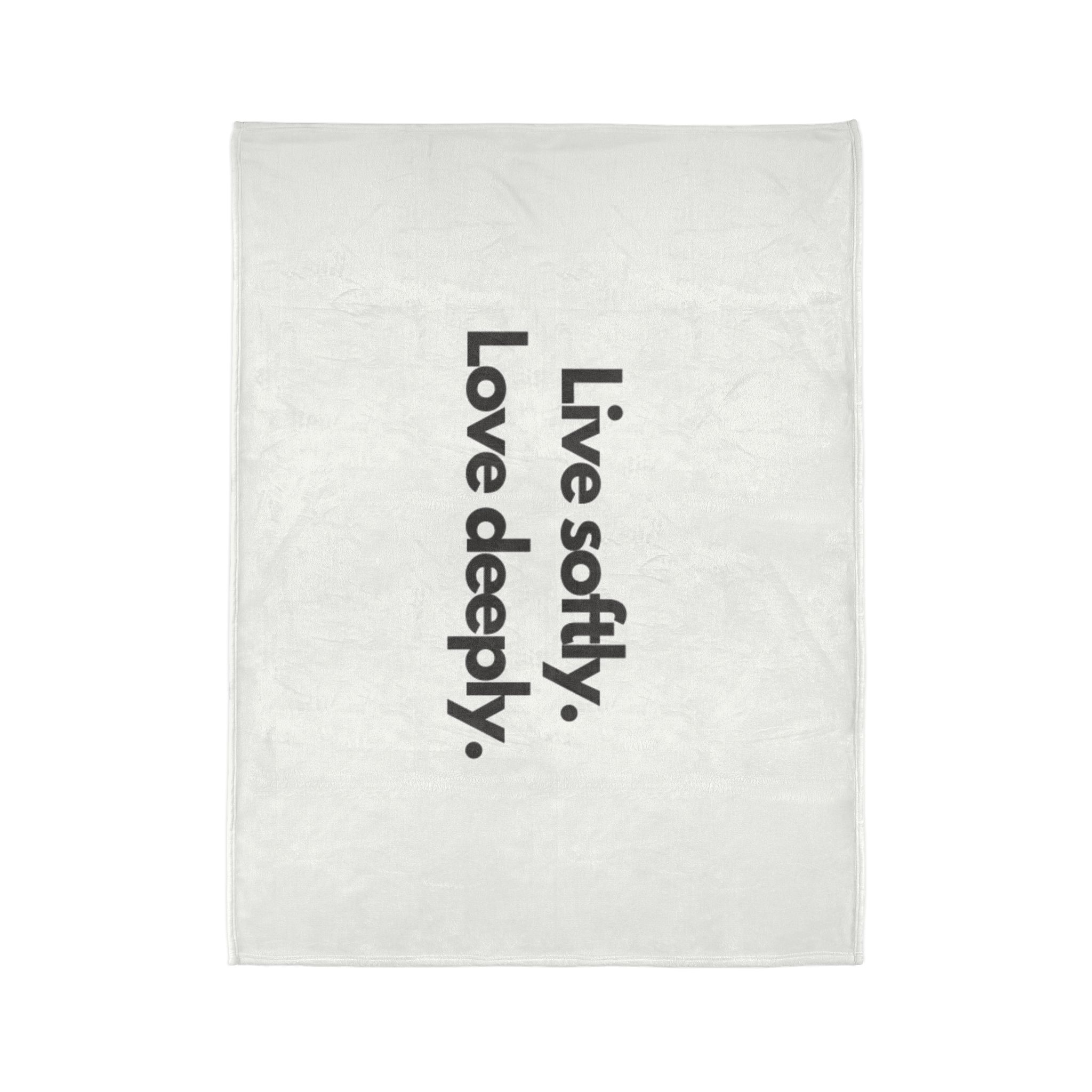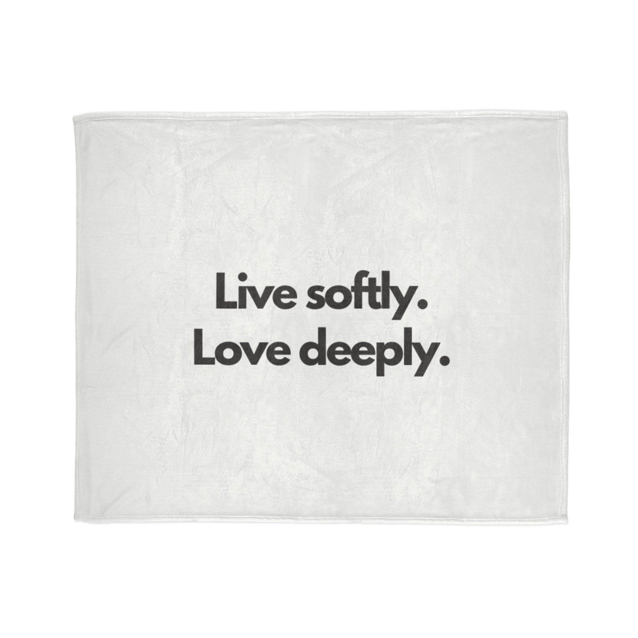 Throw Blanket — “Live Softly. Love Deeply.” Cozy Inspirational Polyester Throw