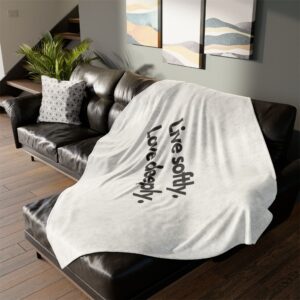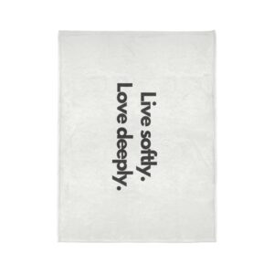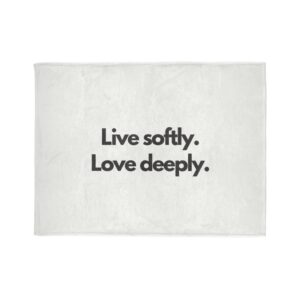 A lightweight, luxuriously soft polyester fleece blanket printed with a simple, calming message: “Live softly. Love deeply.” The thick 300gsm fabric feels plush against skin while remaining easy to care for and quick-drying. Clean hemmed edges and one-sided, high-definition printing keep the lettering crisp and bold on a soft white background. This blanket slips into quiet moments—curled on the couch with a warm drink, wrapped around shoulders during slow morning routines, or folded at the foot of a bed as a gentle reminder to slow down. The understated typography and neutral palette blend with minimalist, cozy, and modern interiors, speaking quietly to anyone who values calm, intimacy, and readable design in their everyday spaces.