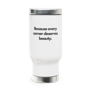 Travel Mug — “Because Every Corner Deserves Beauty.” Insulated 14oz Stainless Steel with Handle