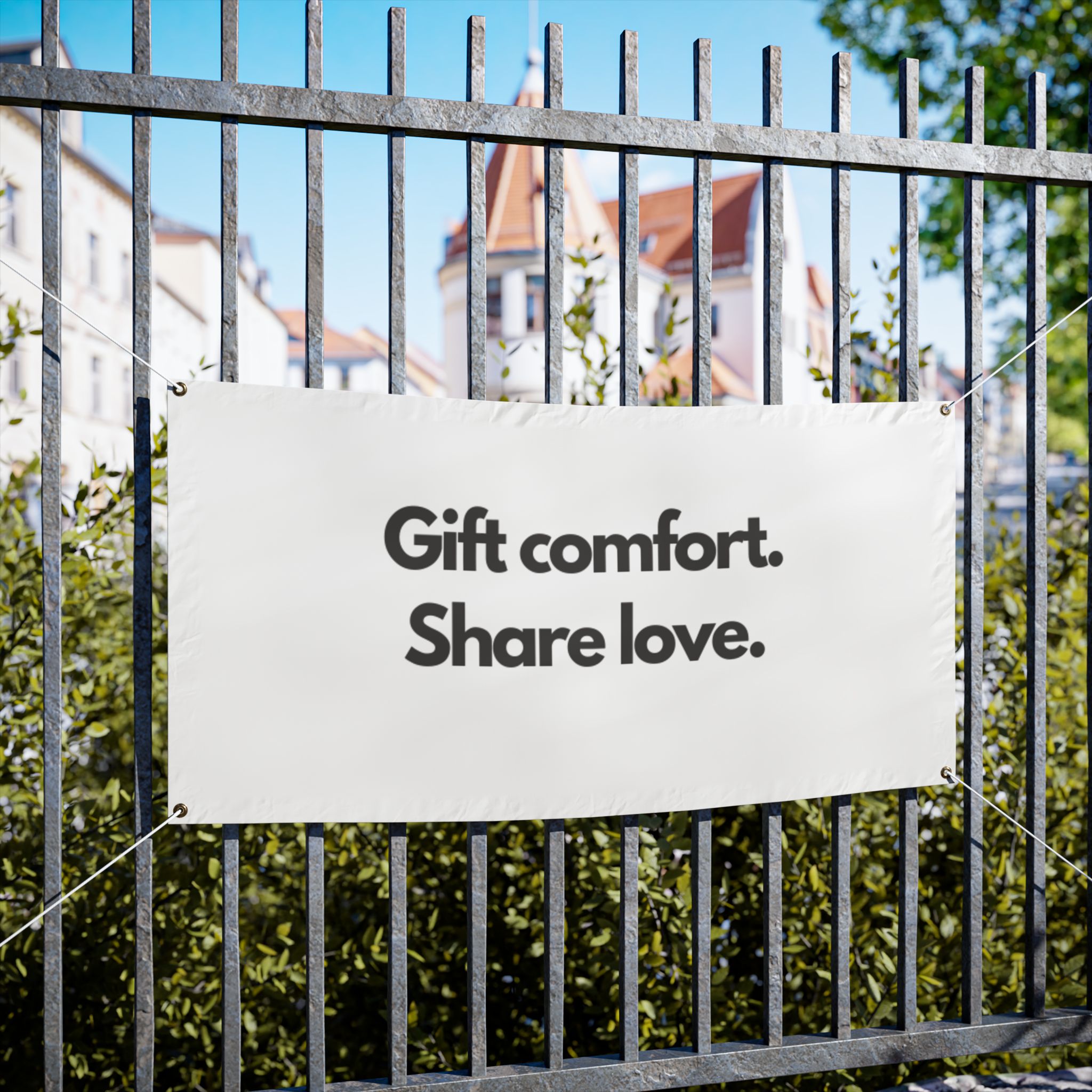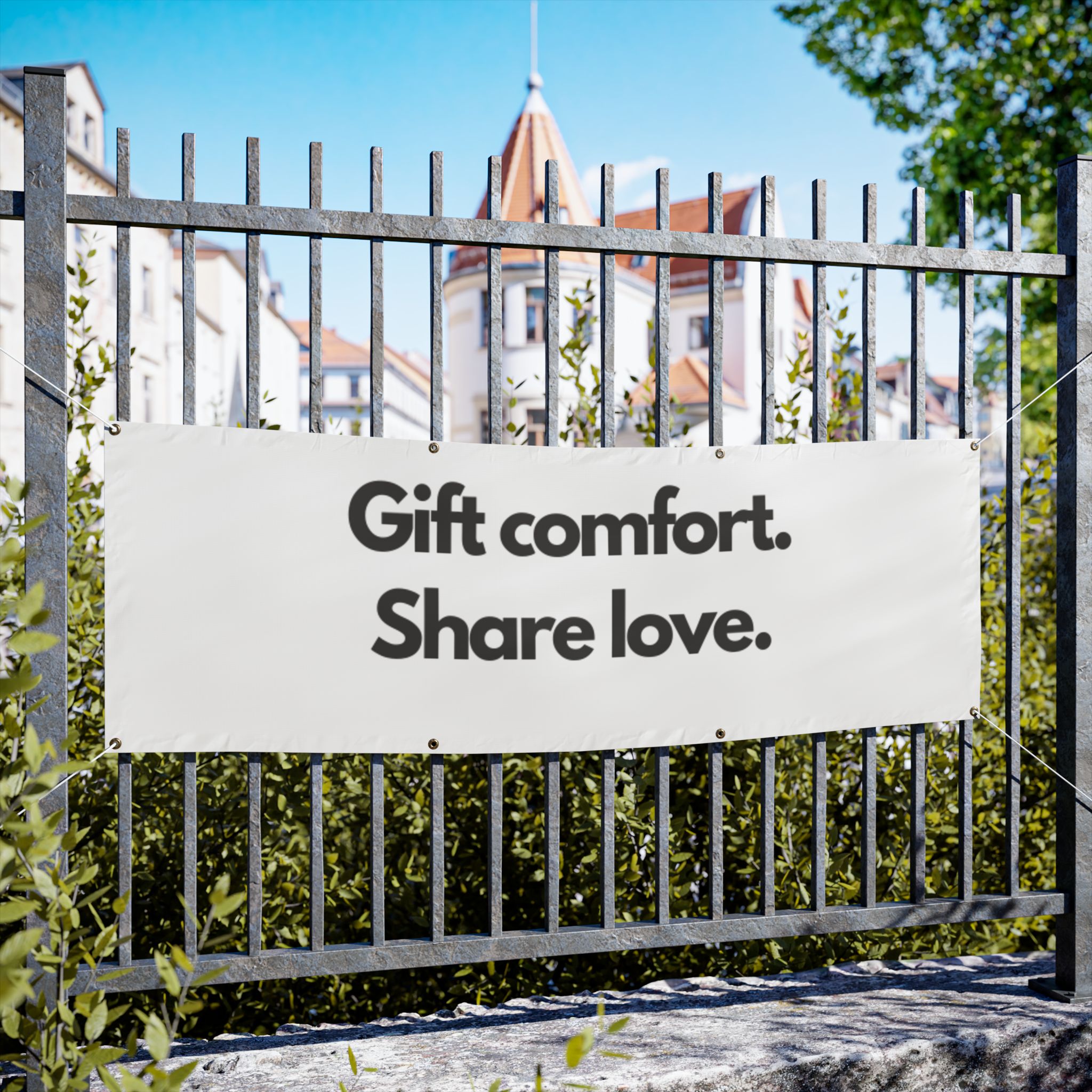 Vinyl Banner — “Gift comfort. Share love.” Outdoor Event & Holiday Message Sign