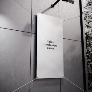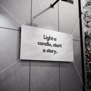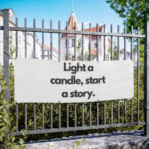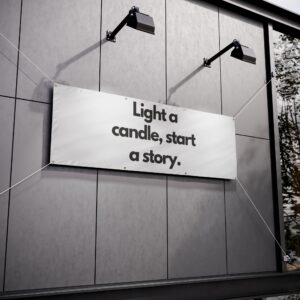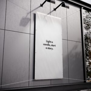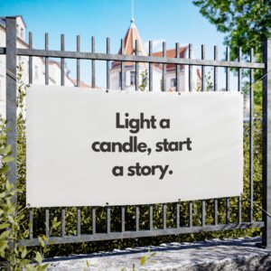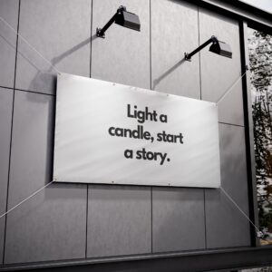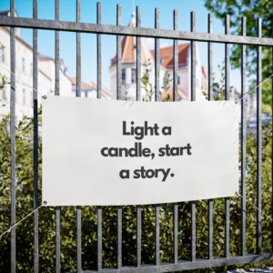 Vinyl Banner — “Light a candle, start a story.” Inspirational Outdoor Sign