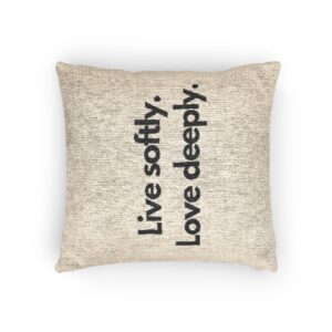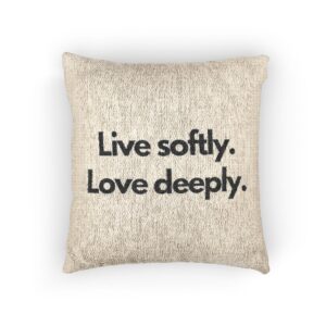 Woven Pillow — “Live softly. Love deeply.” Neutral Decorative Throw Pillow